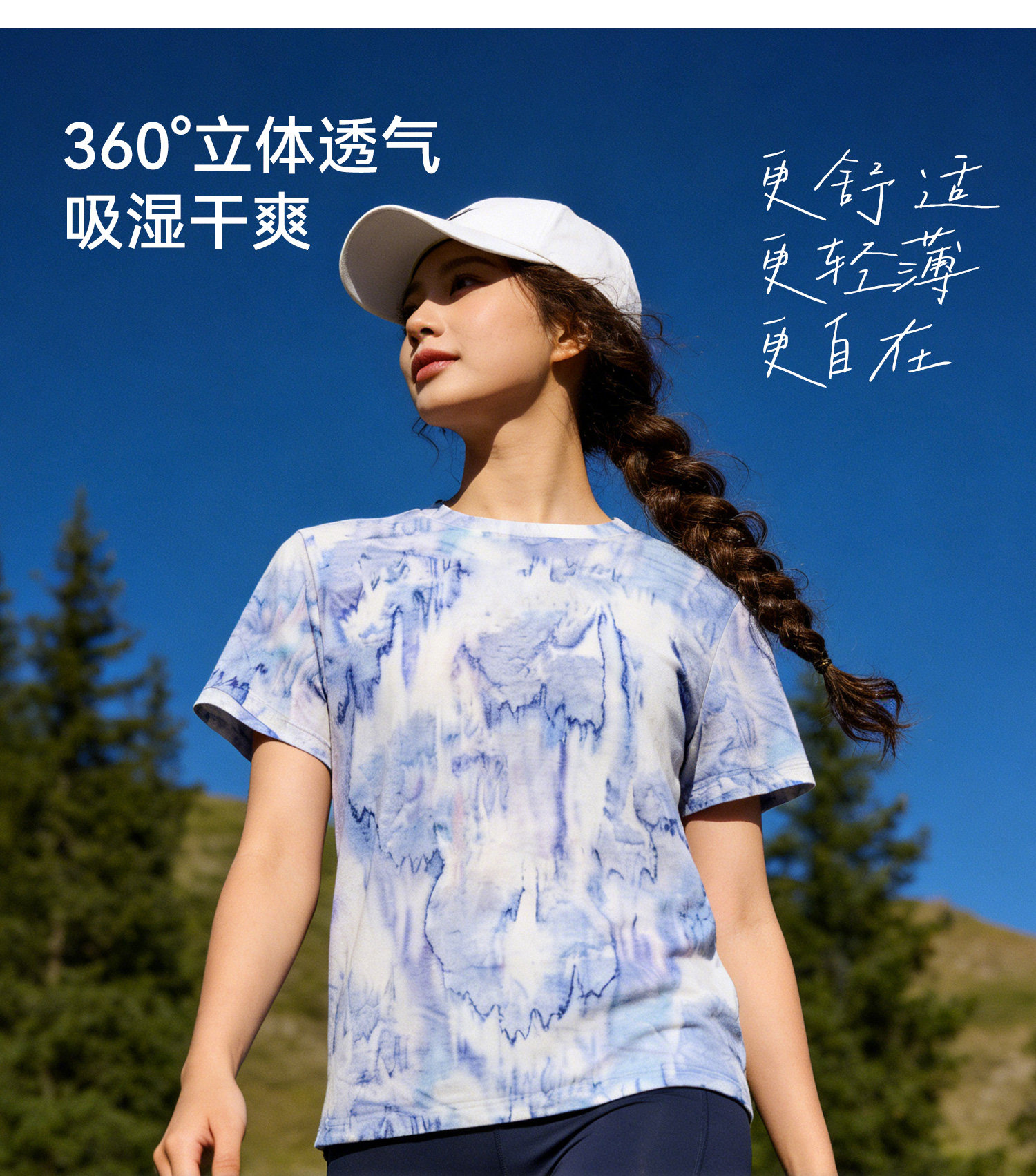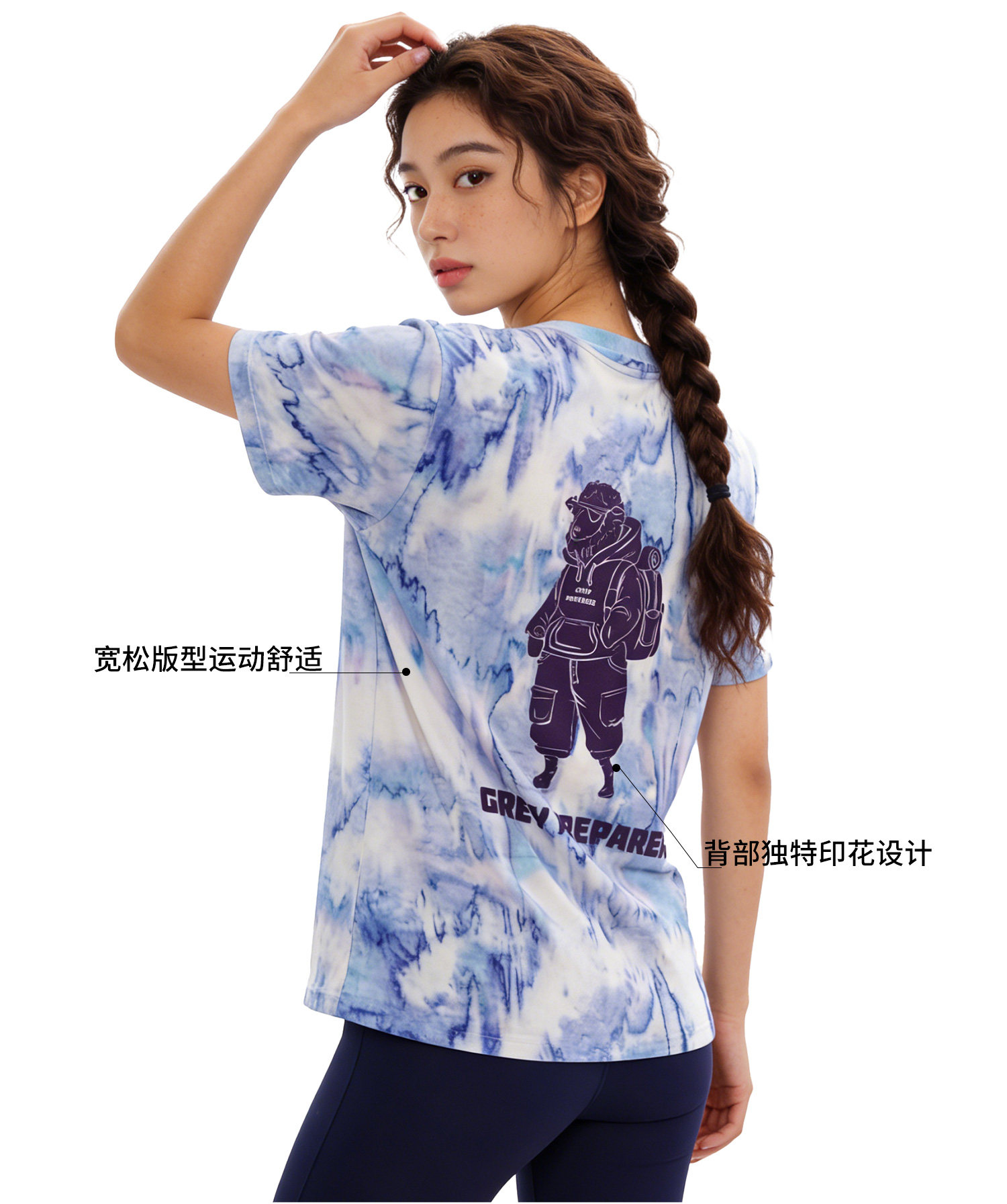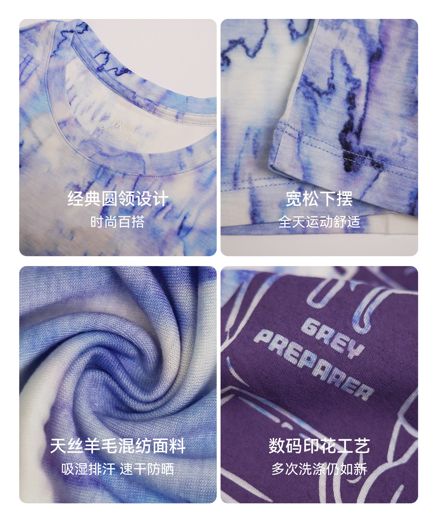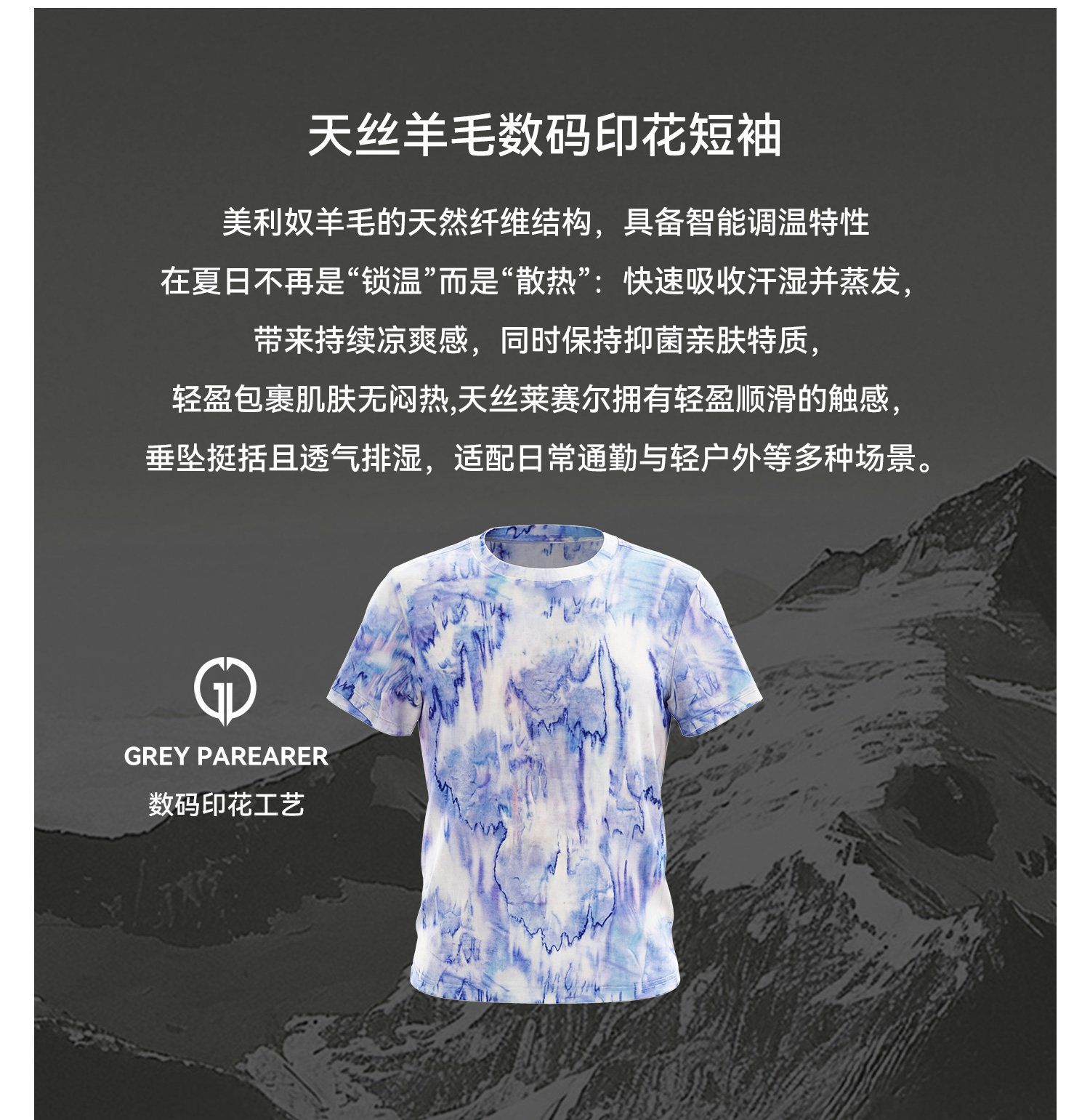 灰壳户外美利奴羊毛速干衣女徒步登山透气扎染短袖美丽诺运动T恤