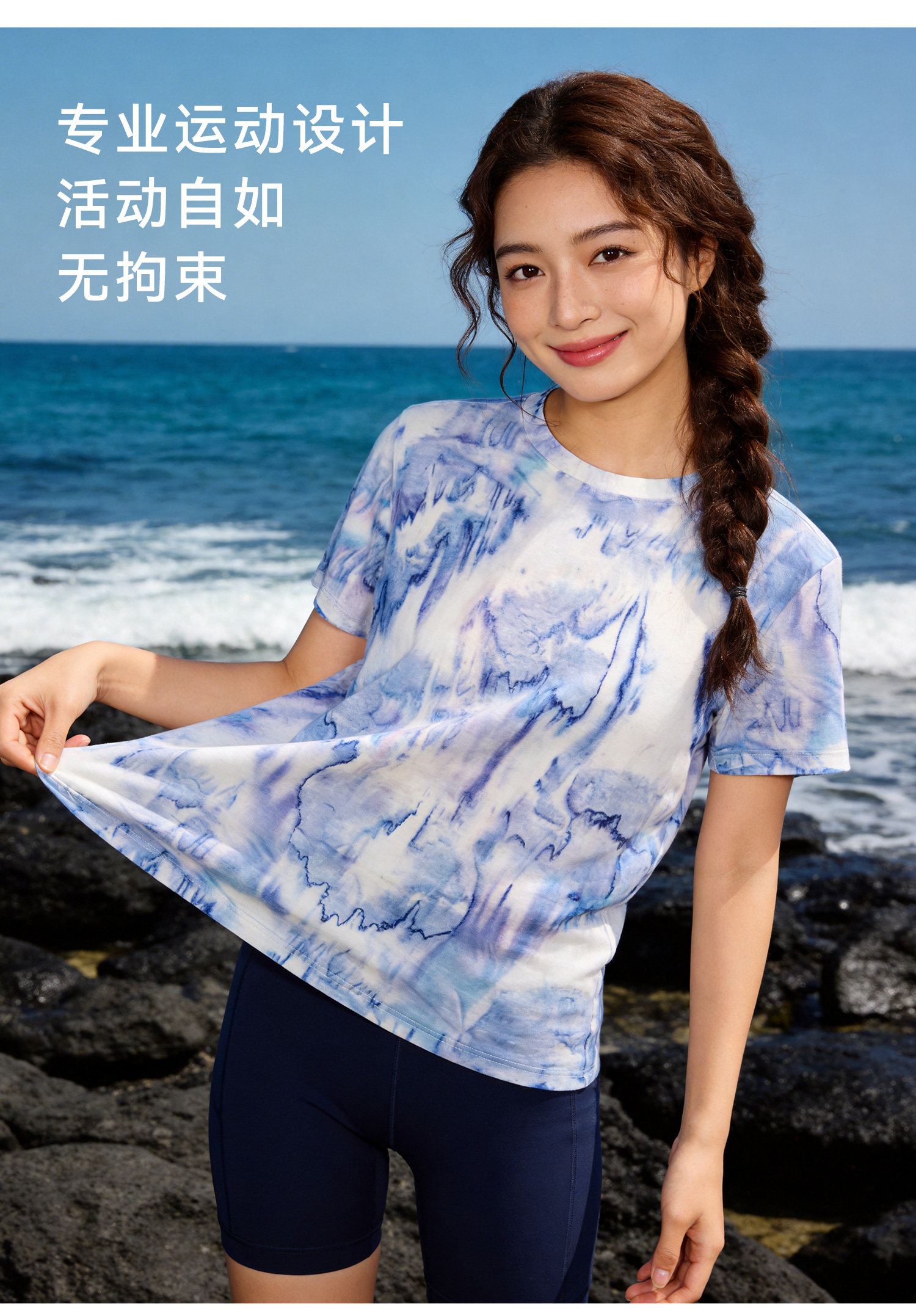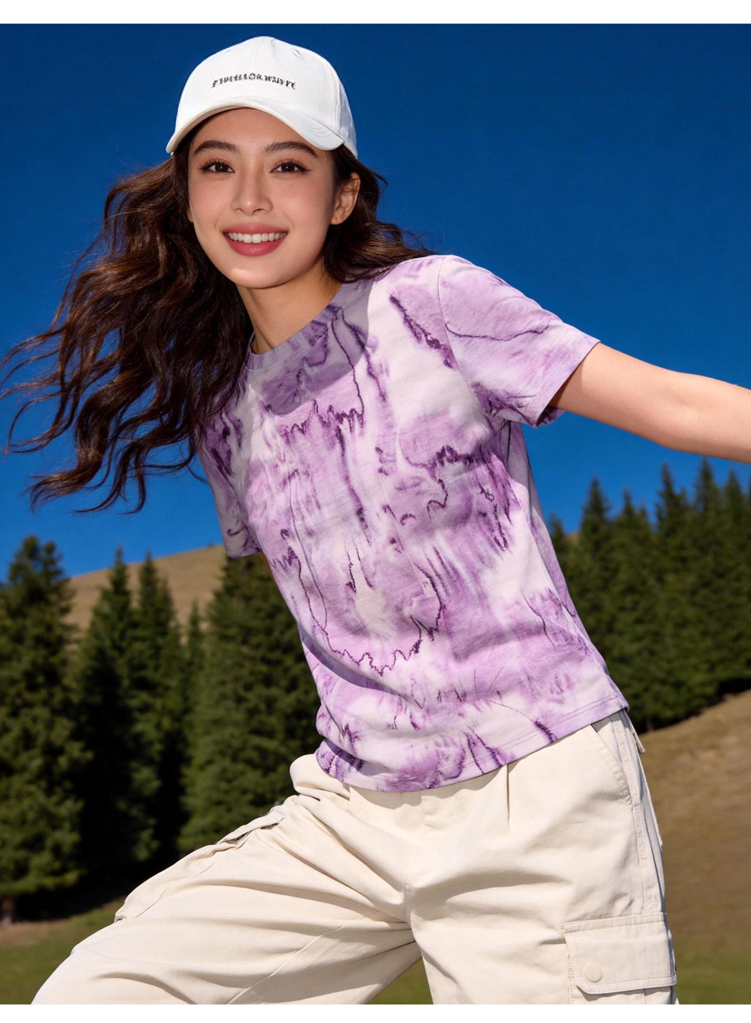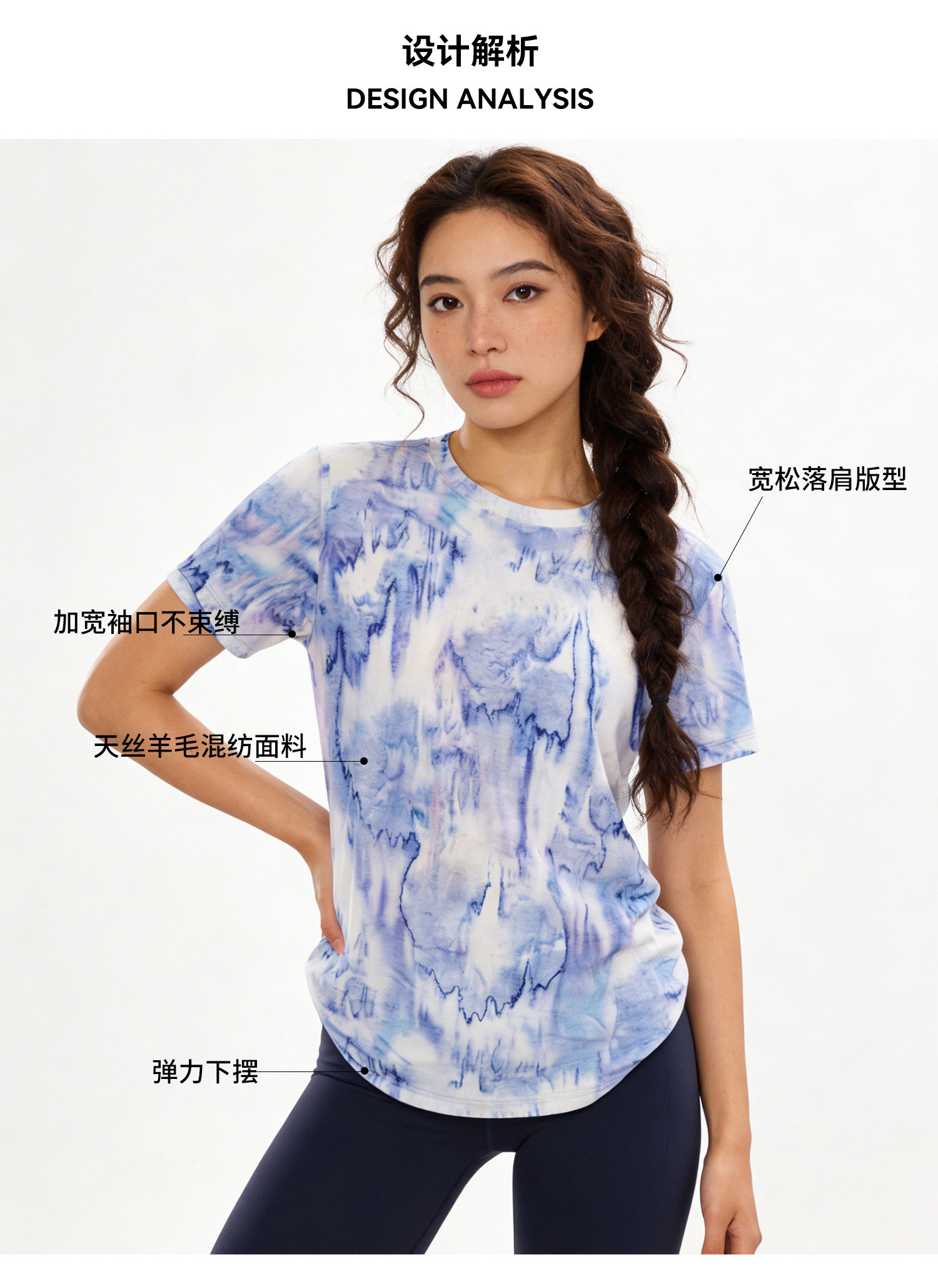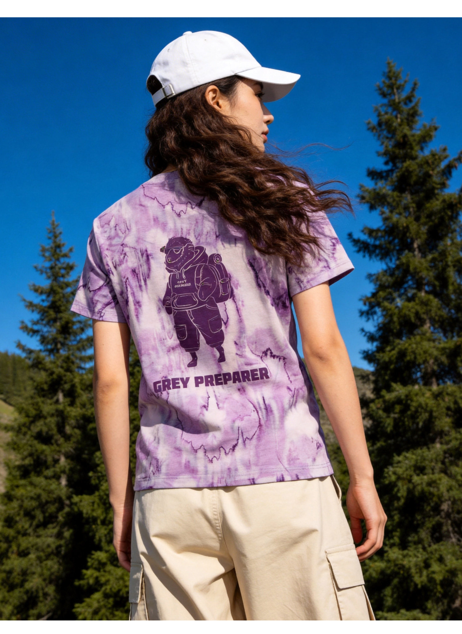 灰壳户外美利奴羊毛速干衣女徒步登山透气扎染短袖美丽诺运动T恤
