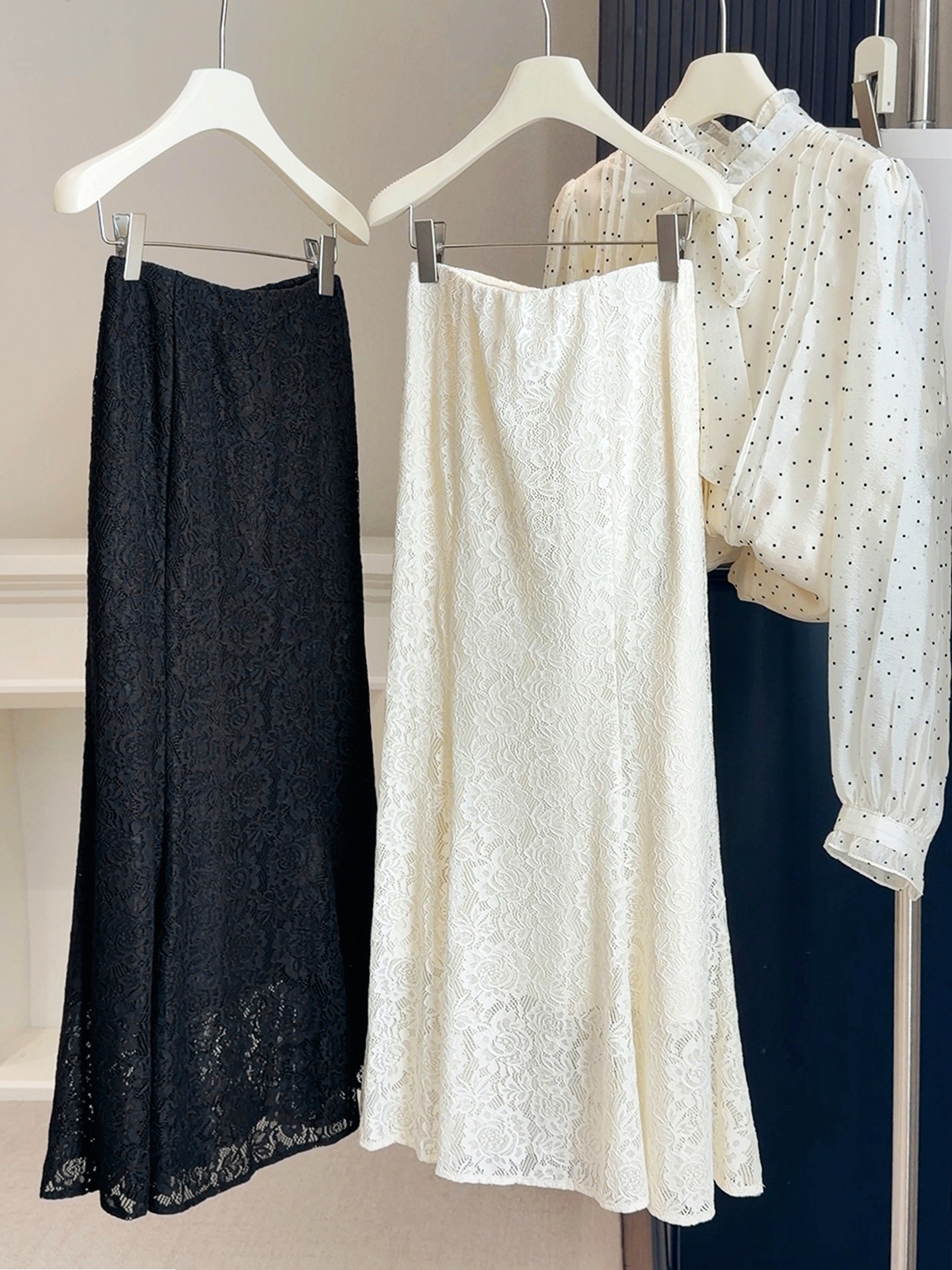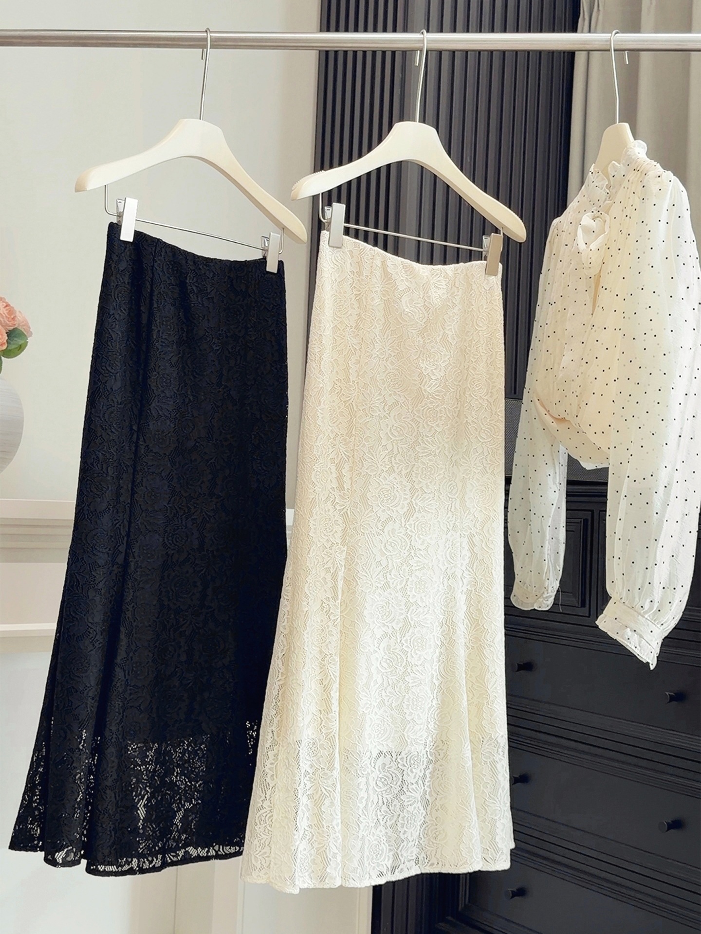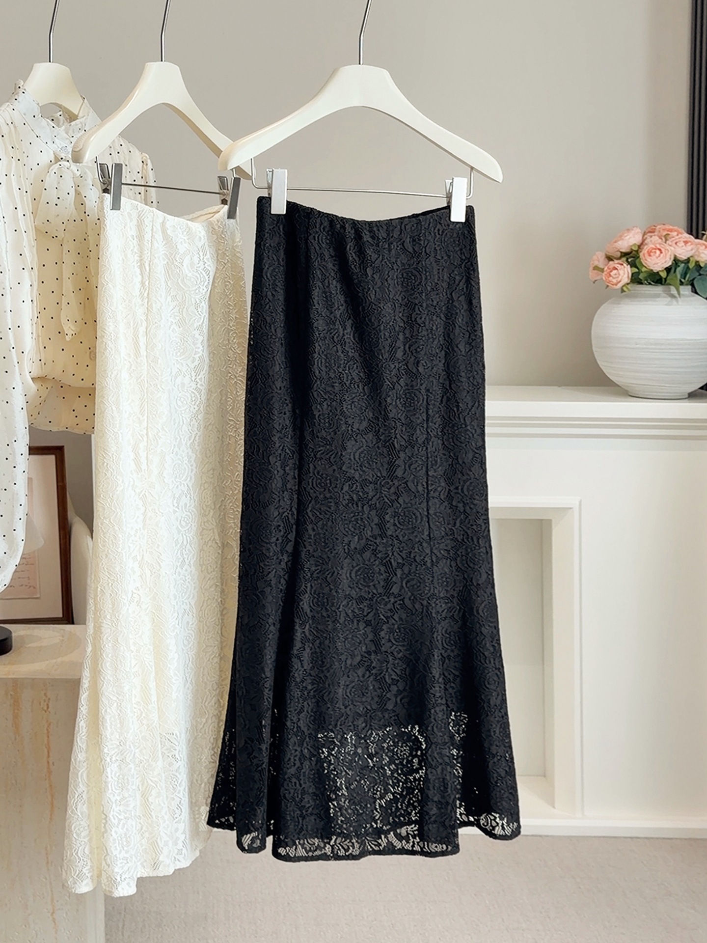 高奢蕾丝镂空显瘦鱼尾裙 高腰显瘦镂空蕾丝鱼尾裙 2026春夏季新款垂坠感包臀裙子 一步裙长裙子