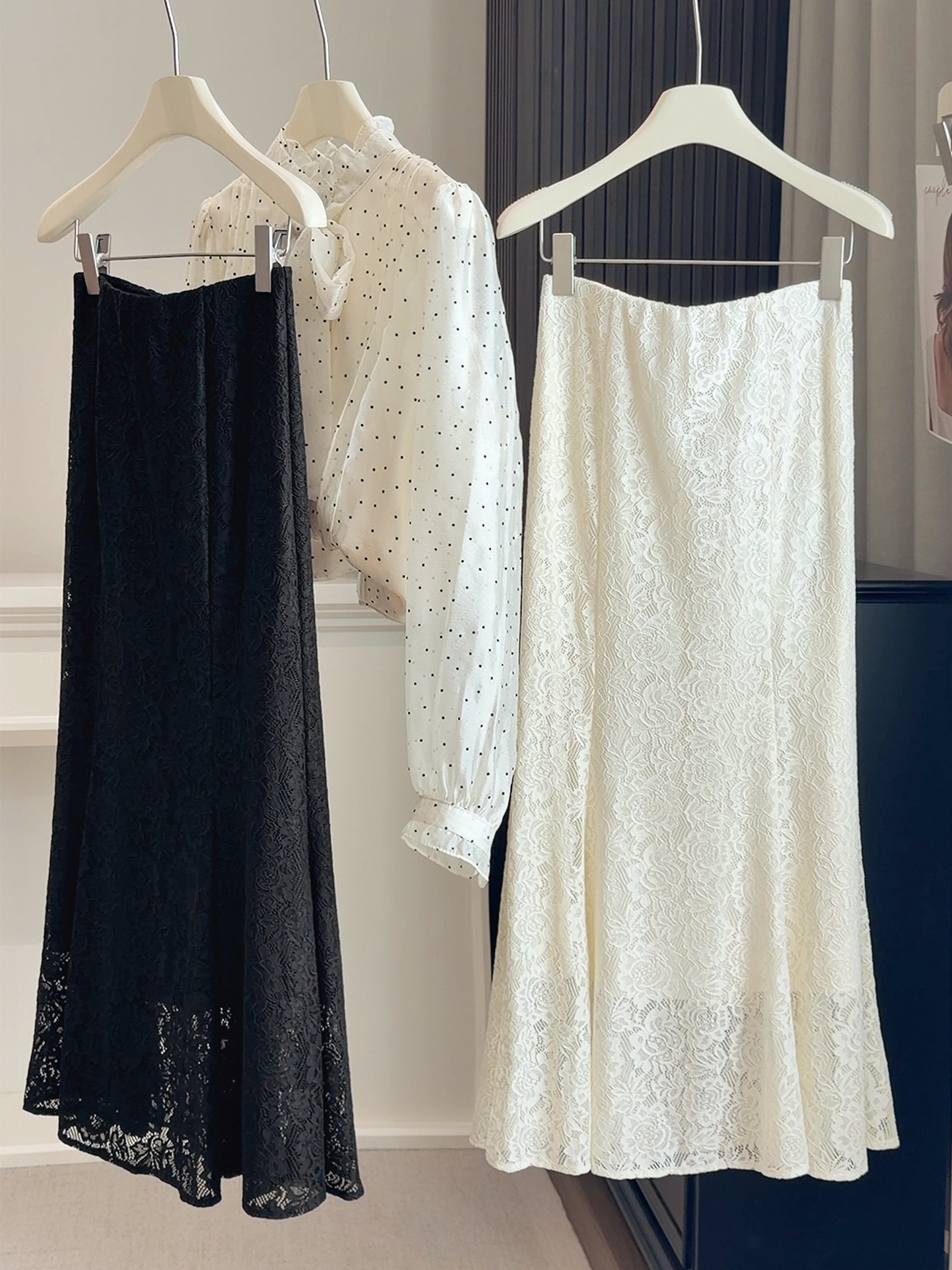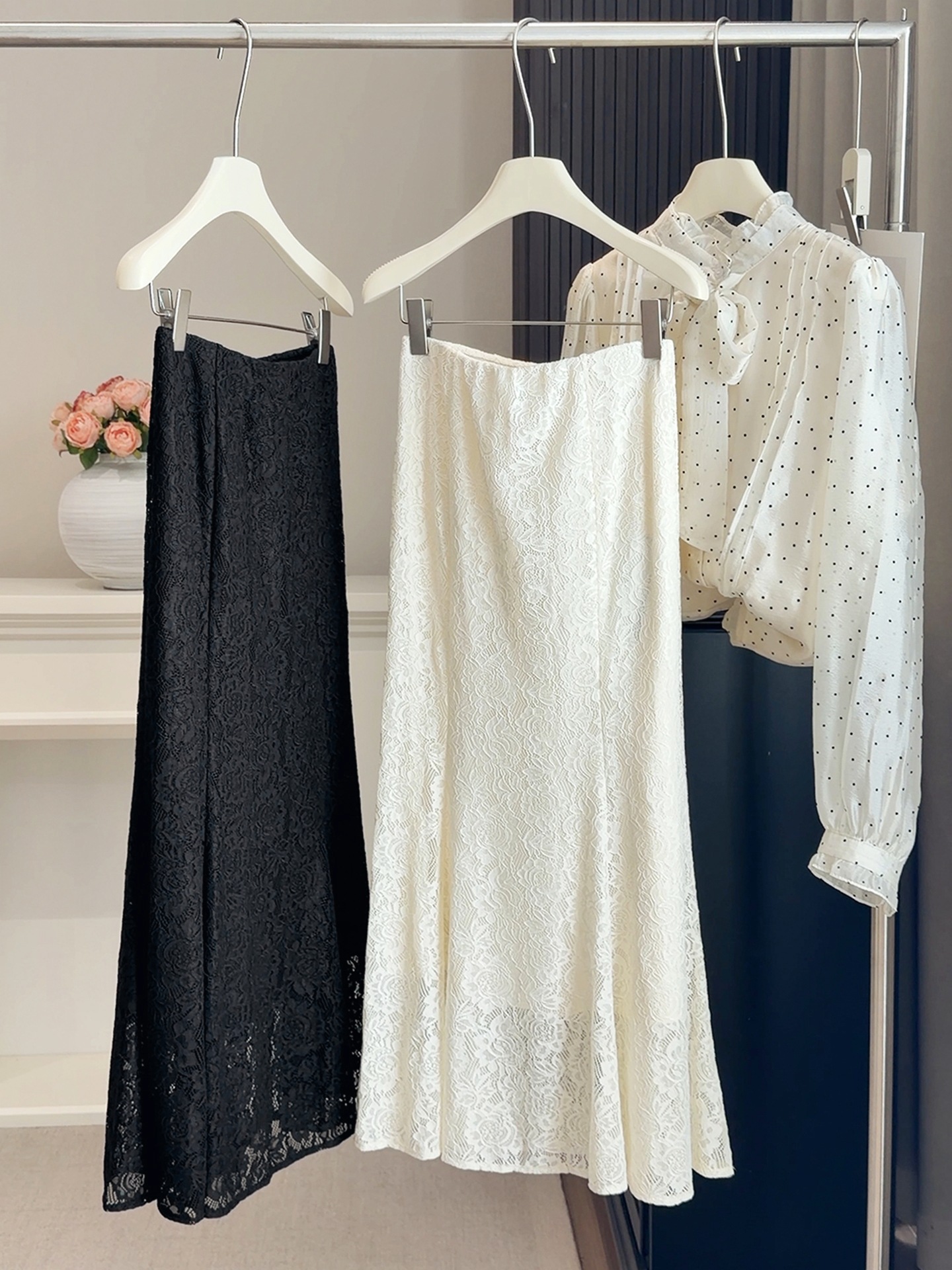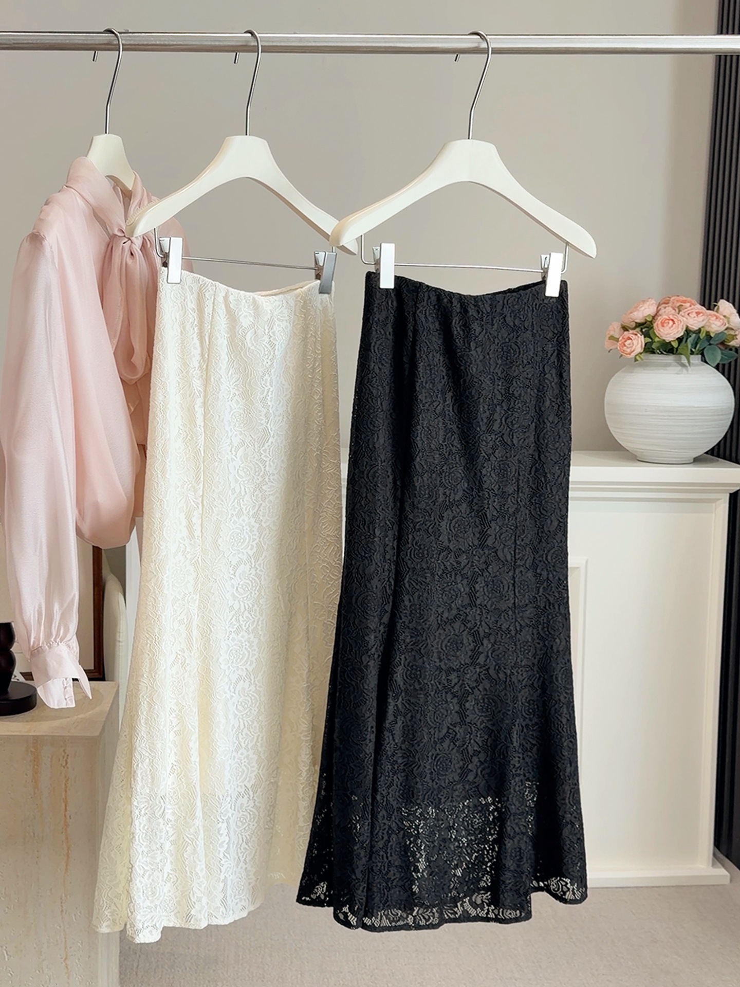 高奢蕾丝镂空显瘦鱼尾裙 高腰显瘦镂空蕾丝鱼尾裙 2026春夏季新款垂坠感包臀裙子 一步裙长裙子
