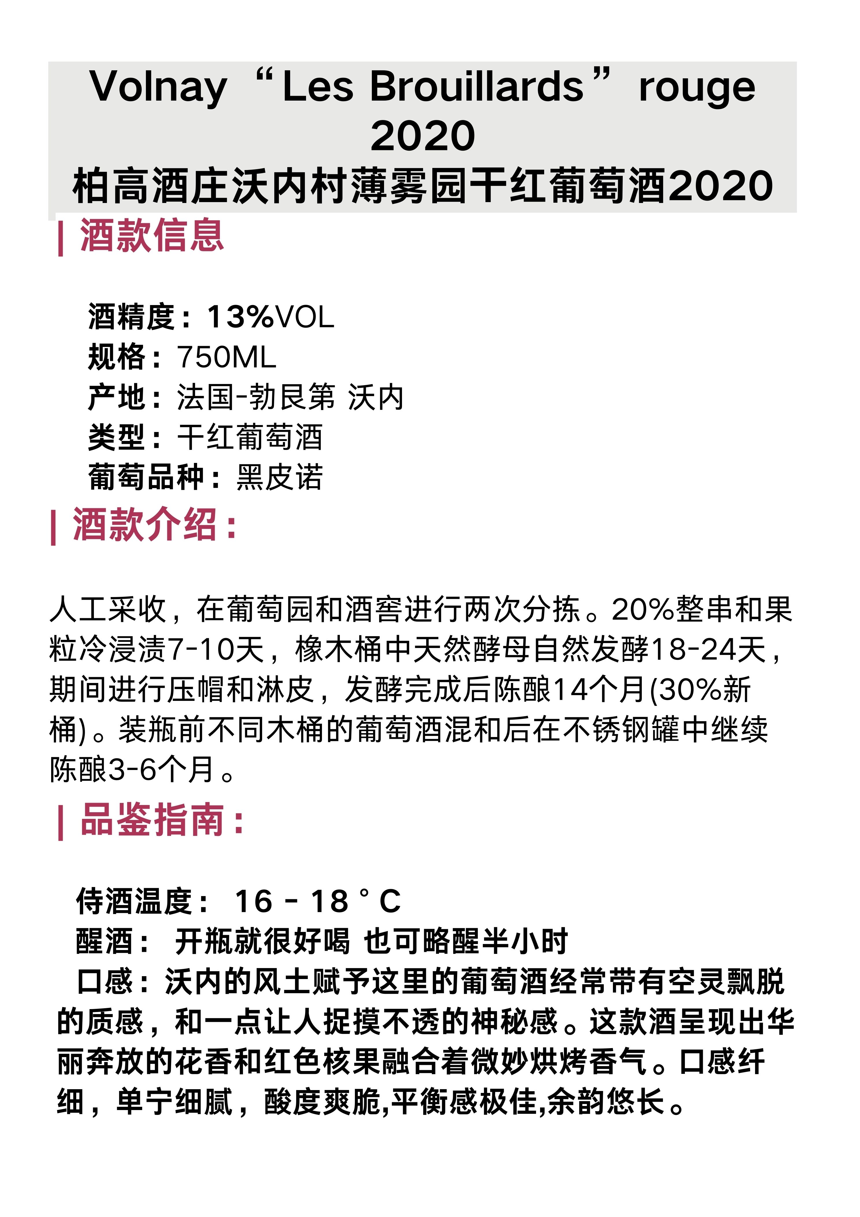 柏高酒庄沃内村薄雾园⼲红葡萄酒 Domaine Alexandre ParigotVolnay “Les Brouillards” rouge