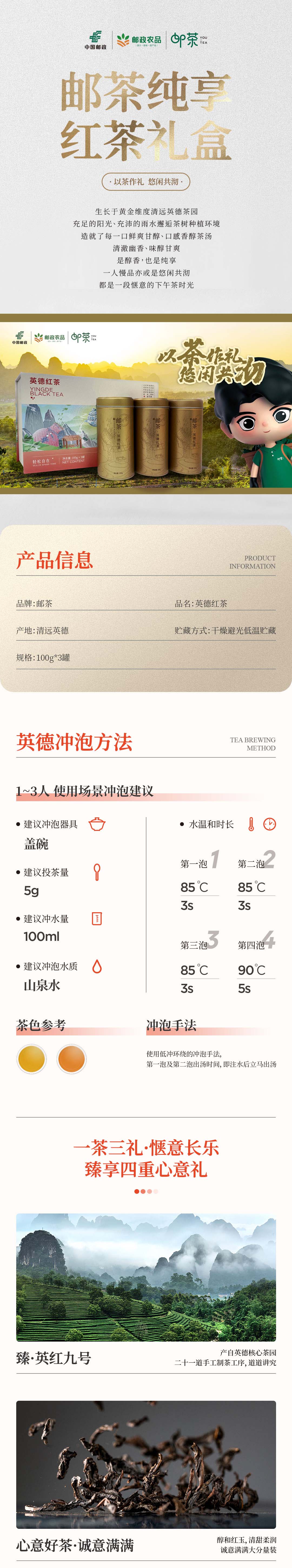 德高信•有机茶 实用礼盒装300g 100g*3罐 清远英德红茶 茶叶 礼盒