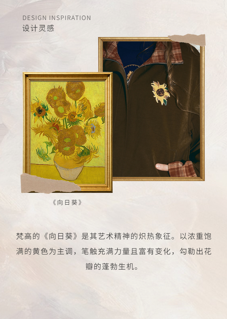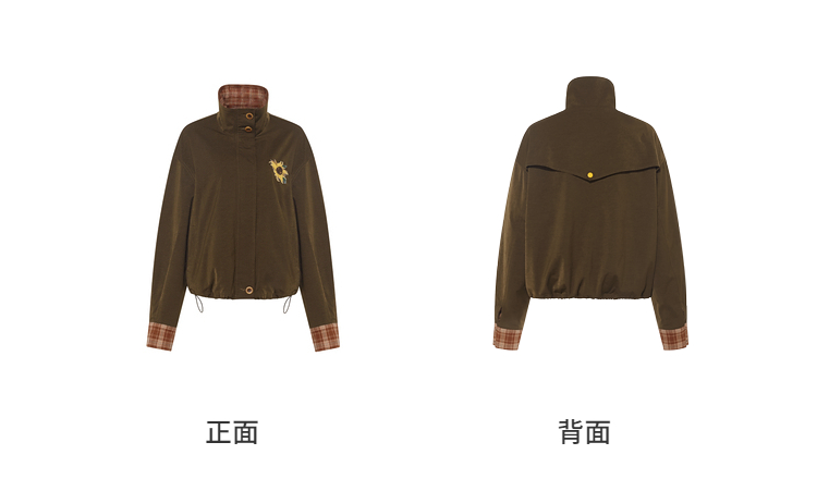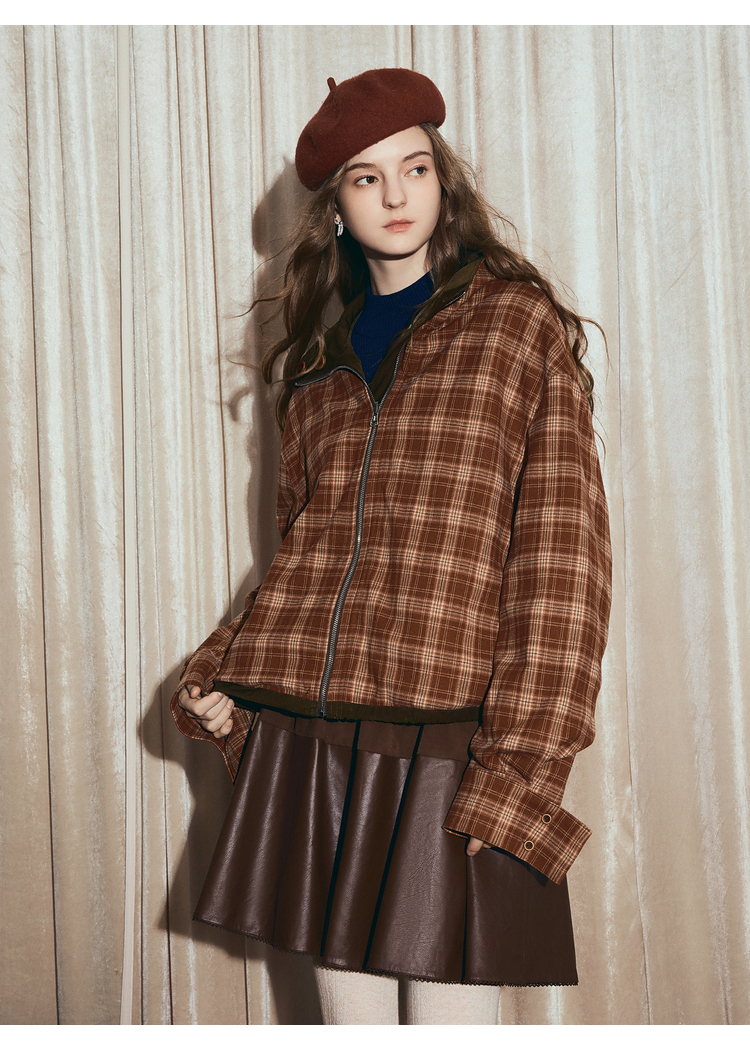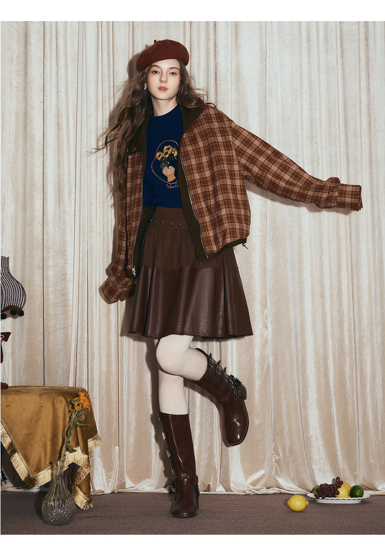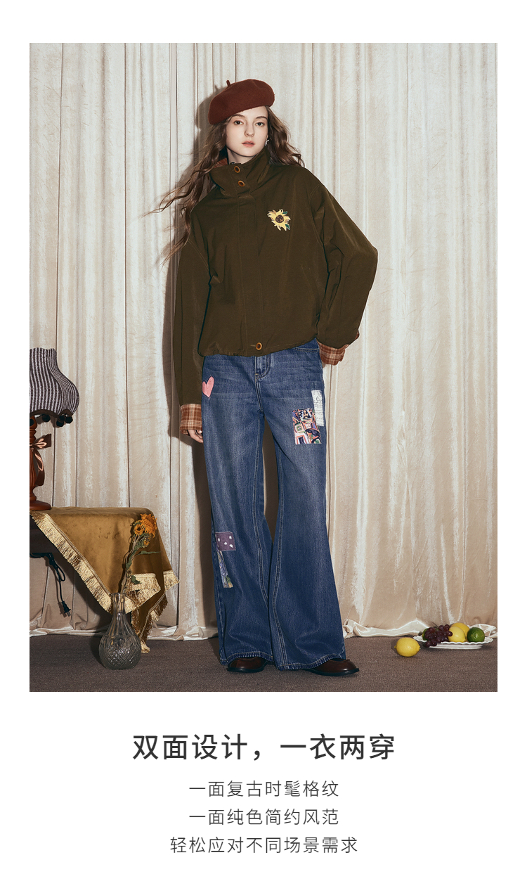 两三事梵高文艺格纹可可2025秋冬新款向日葵刺绣两面穿格子外套女