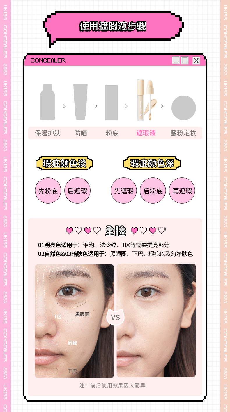 【专区99元任选3件】【擦除烦恼 还原无暇肌】UKISS遮瑕液遮盖斑点痘印黑眼圈纹身遮盖推荐学生平价正品遮瑕膏