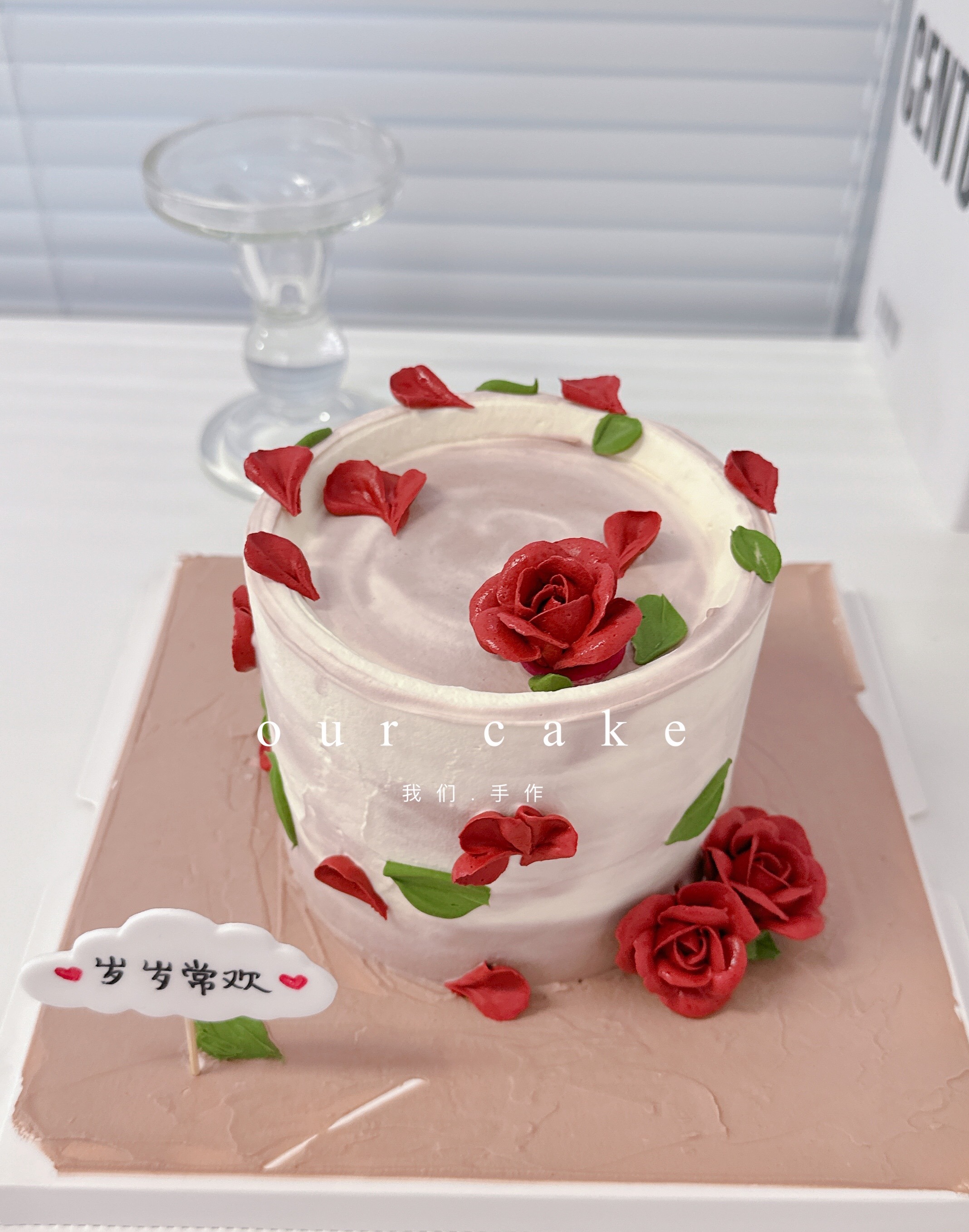 韩式裱花红玫瑰蛋糕-低糖处理无添加