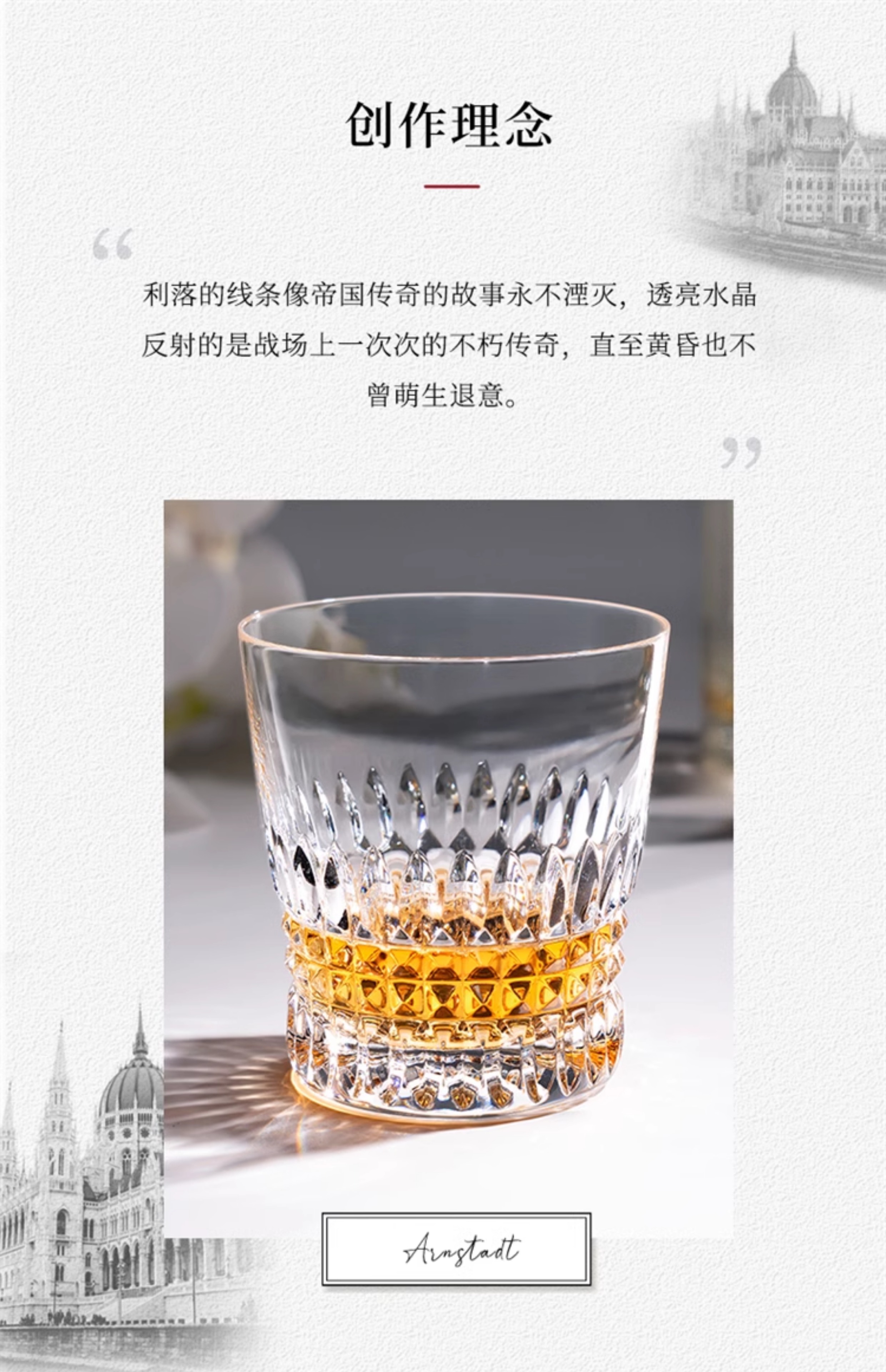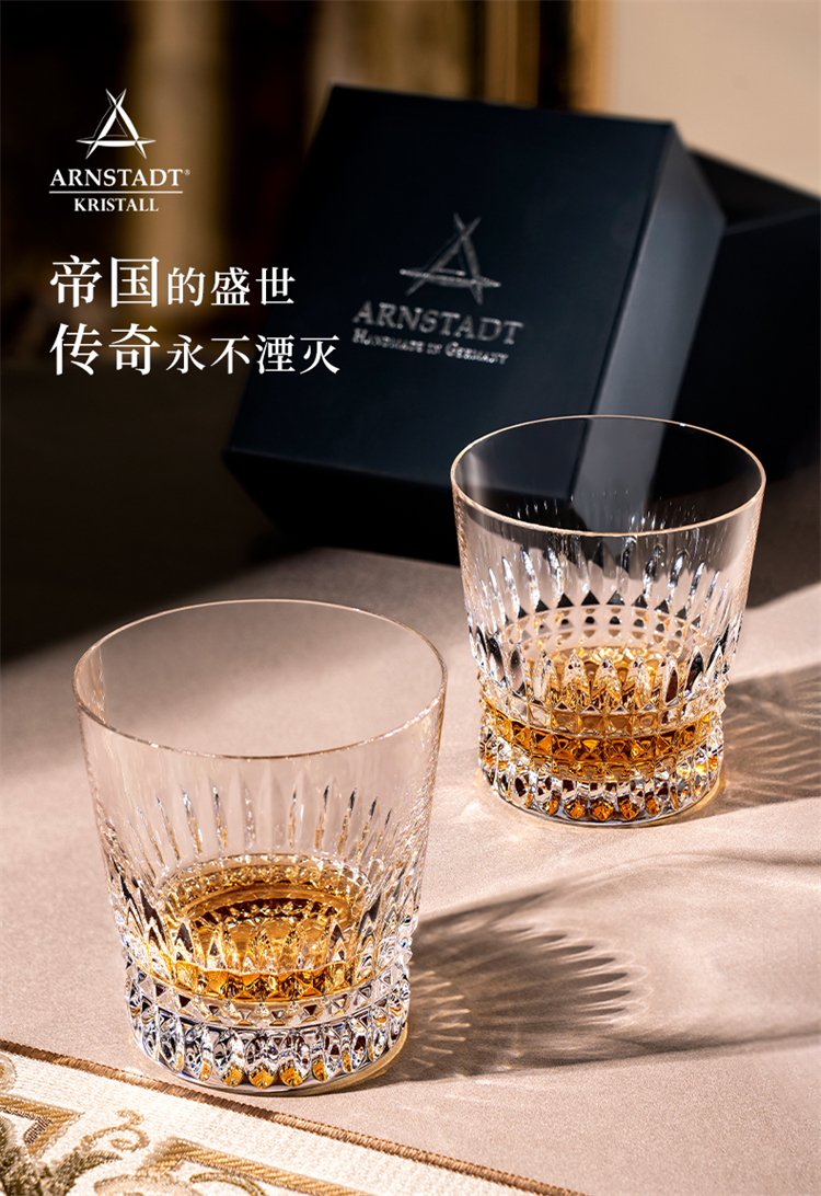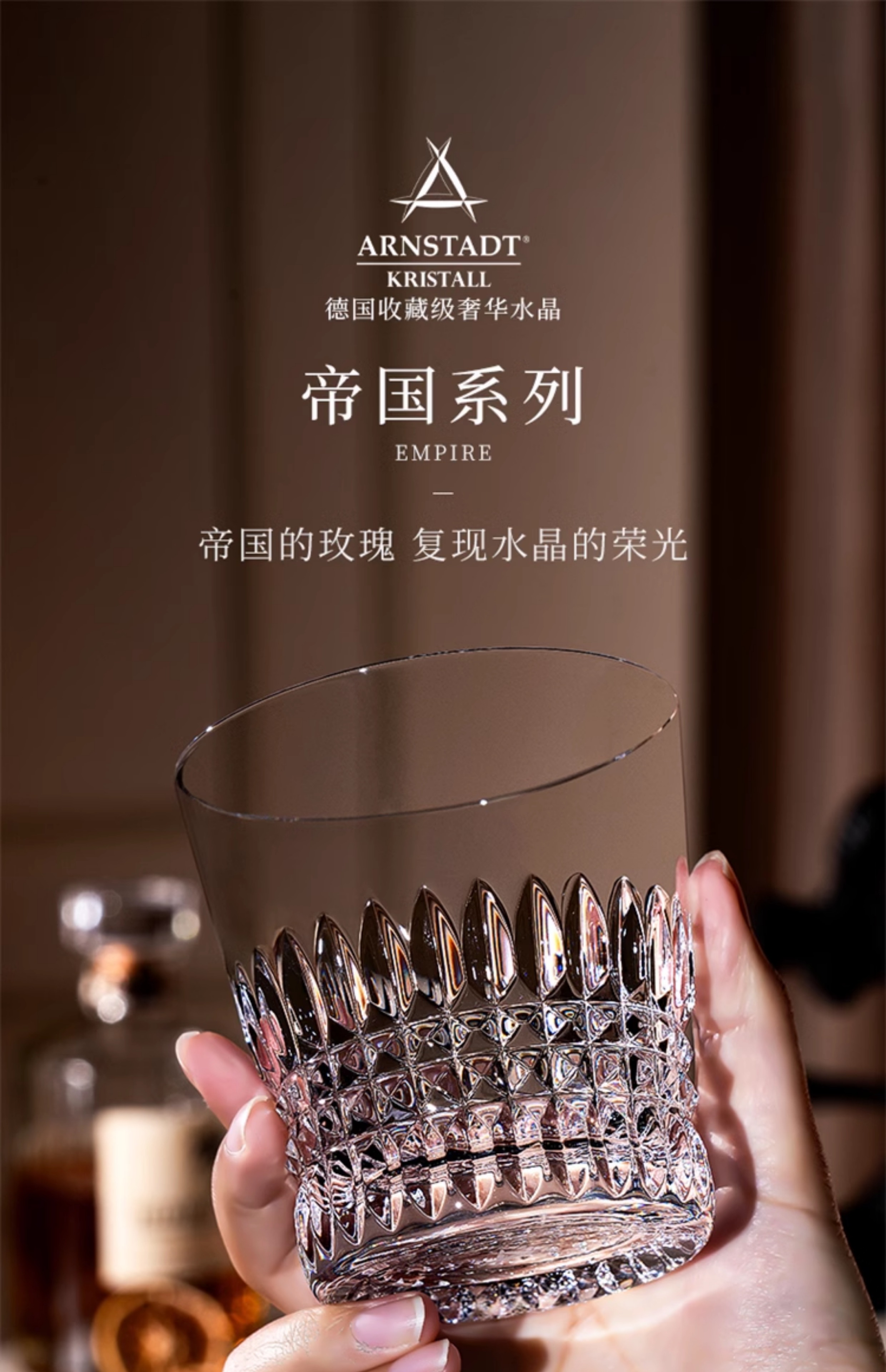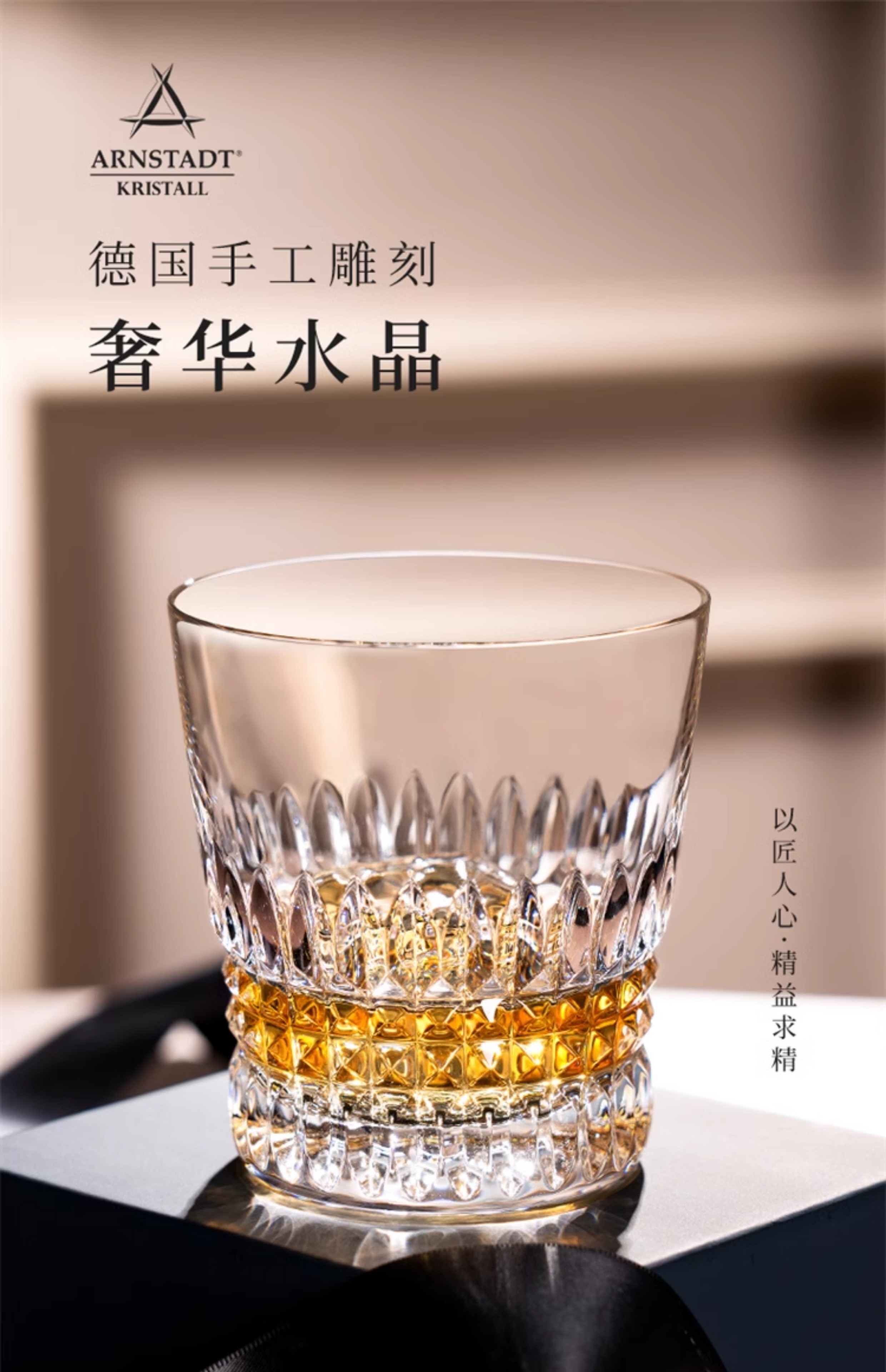德国水晶杯进口洋酒杯ARNSTADT手工切子高级感礼盒精致威士忌酒杯安斯特帝国威士忌杯350ml古典酒樽750ml