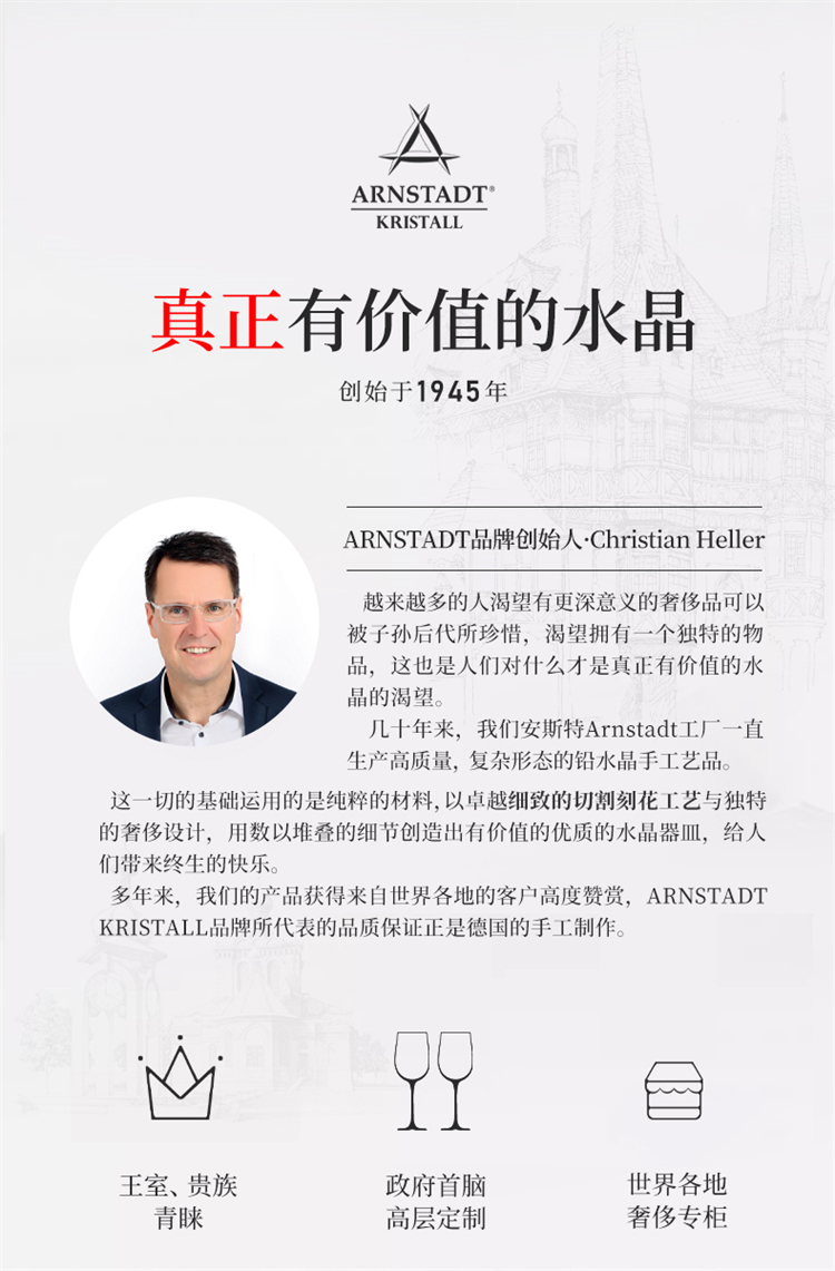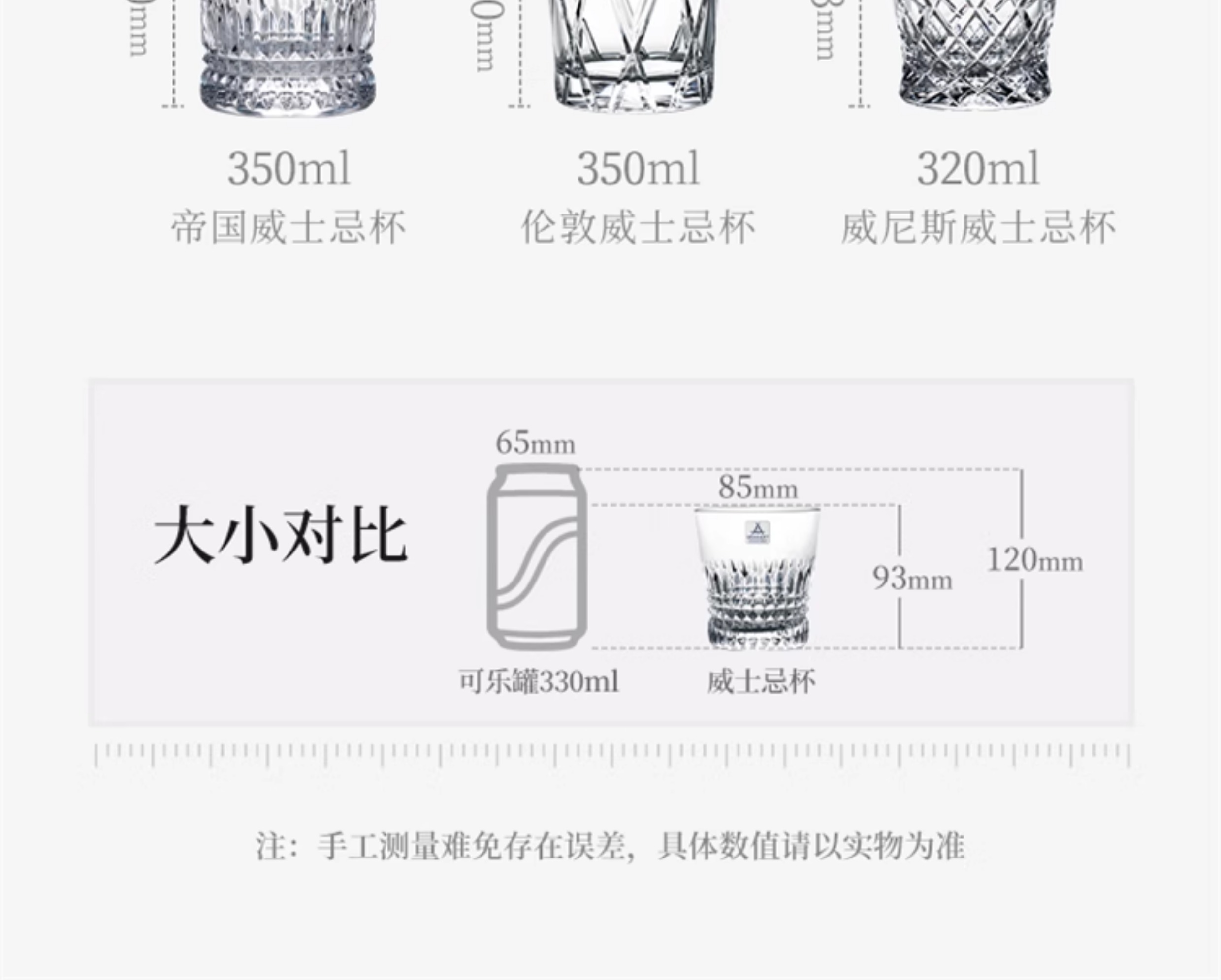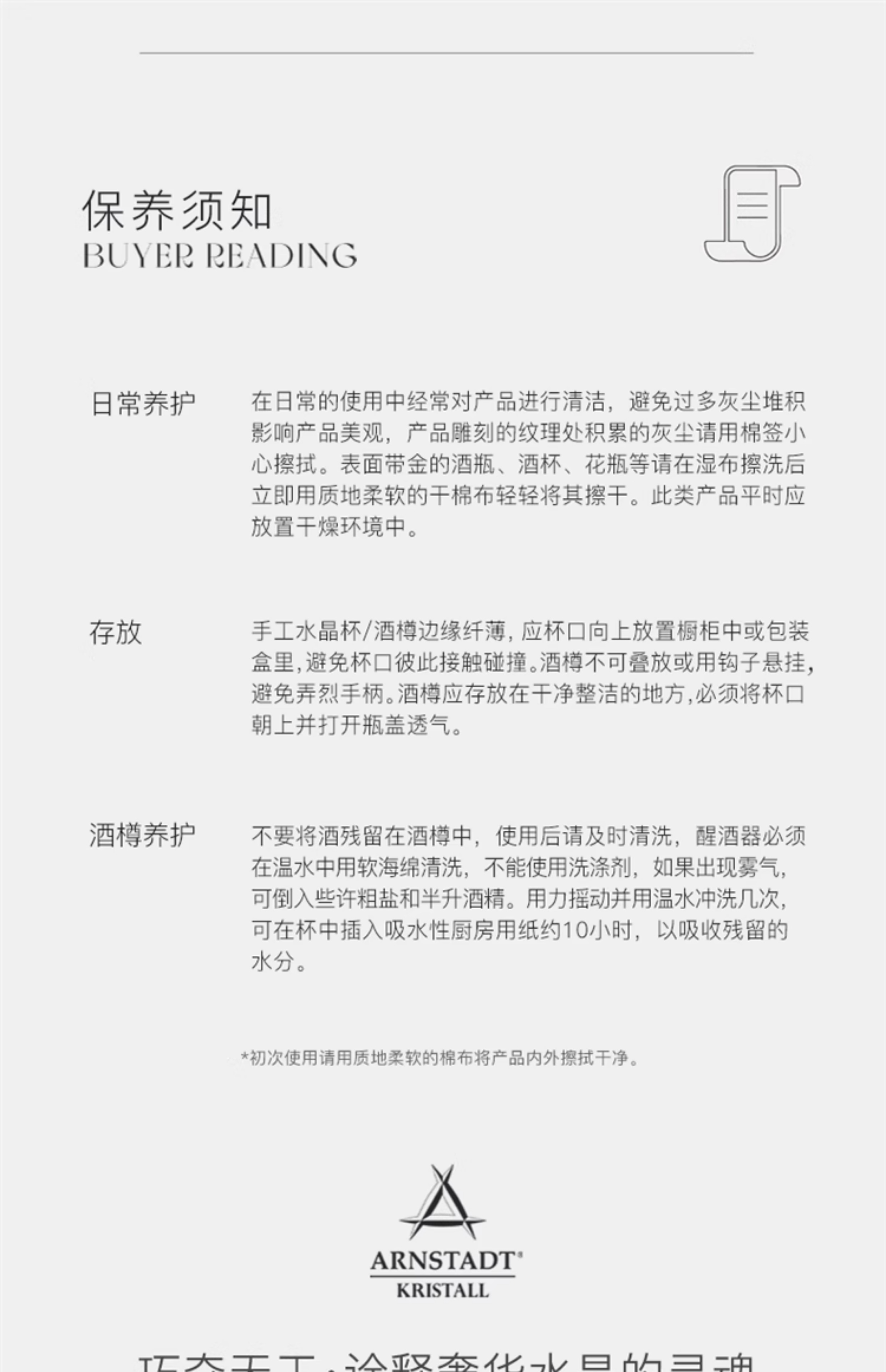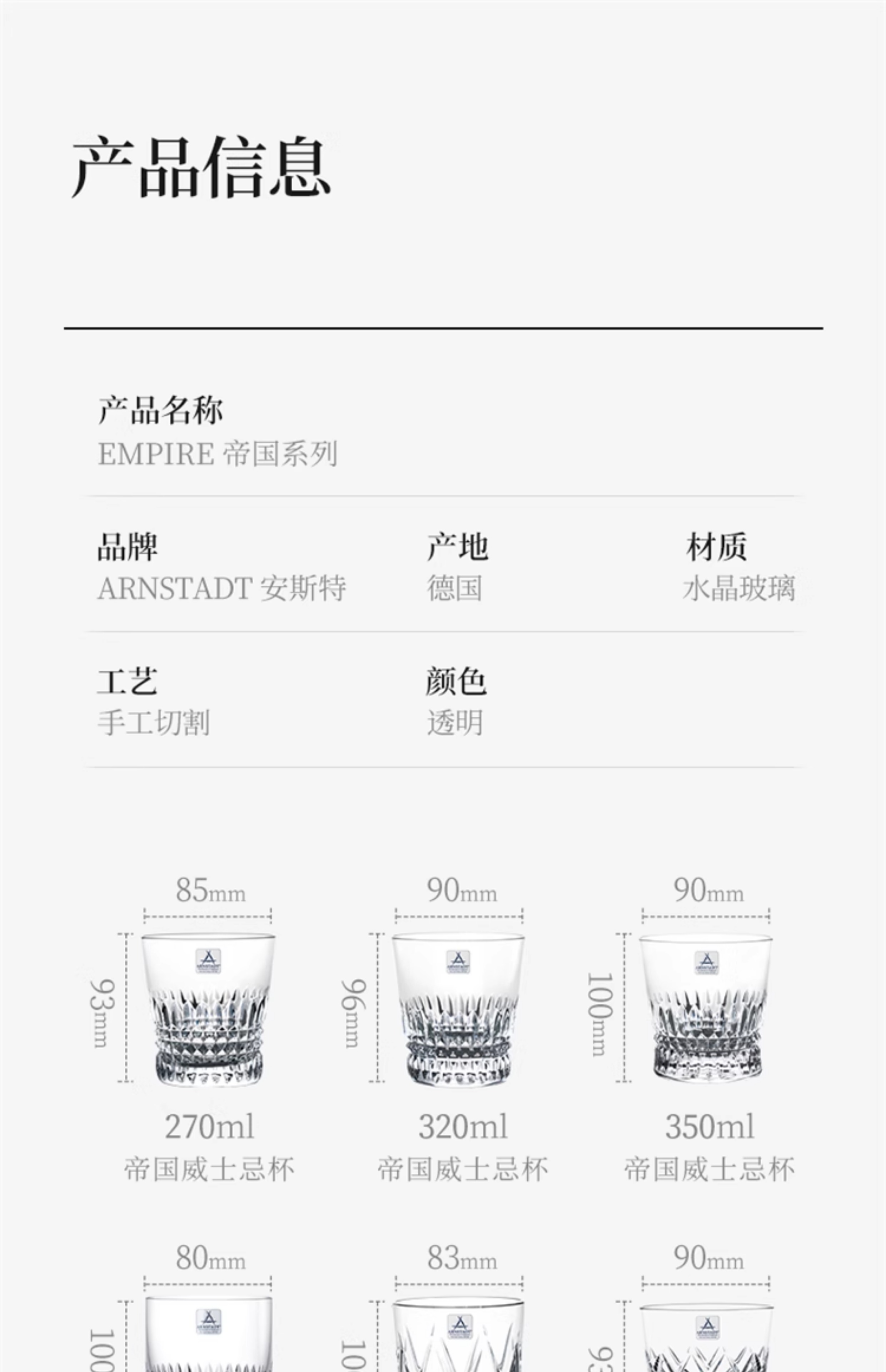 德国水晶杯进口洋酒杯ARNSTADT手工切子高级感礼盒精致威士忌酒杯安斯特帝国威士忌杯350ml古典酒樽750ml