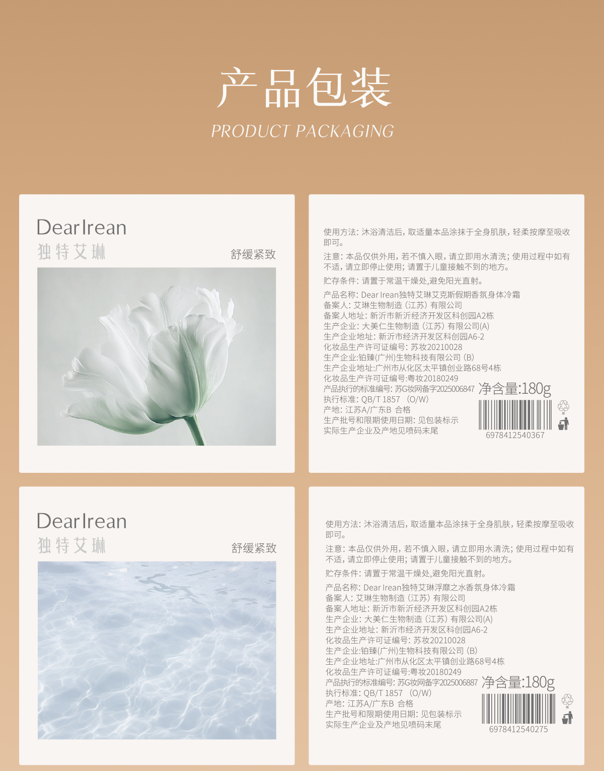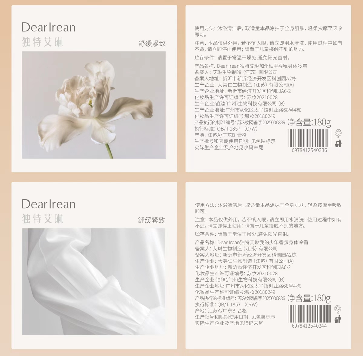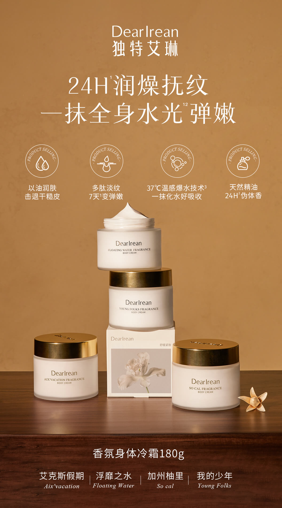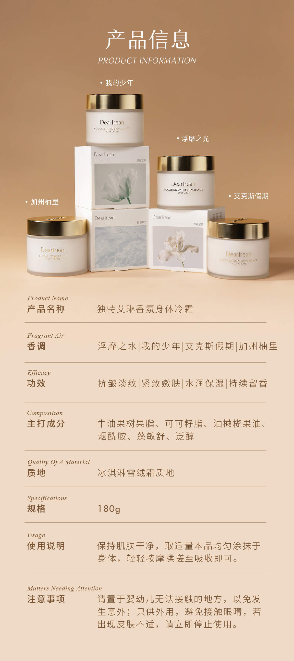 Dear lrean独特艾琳 香氛身体冷霜 180g /罐【YW】