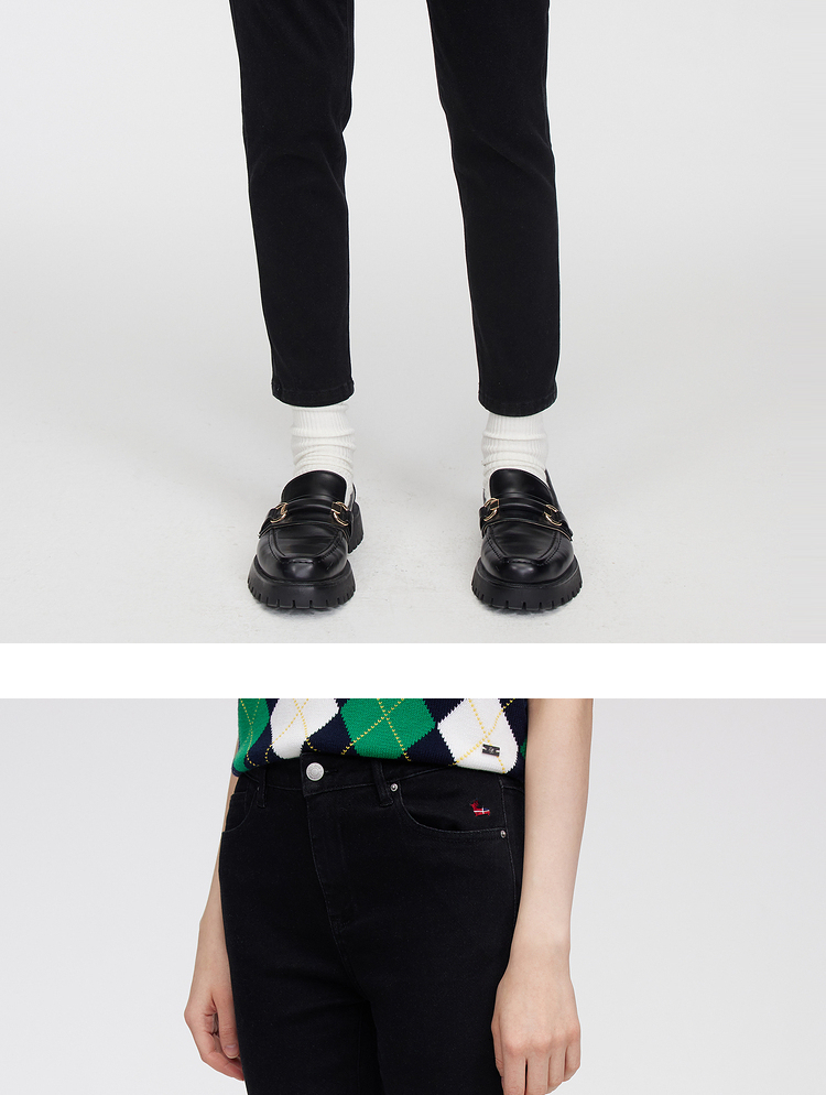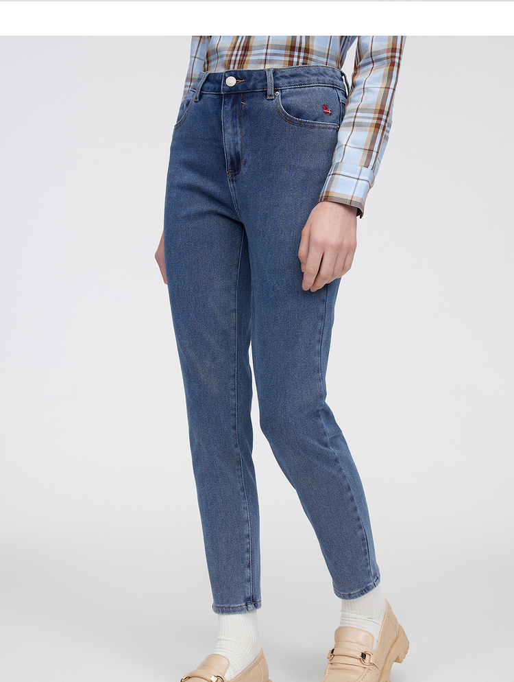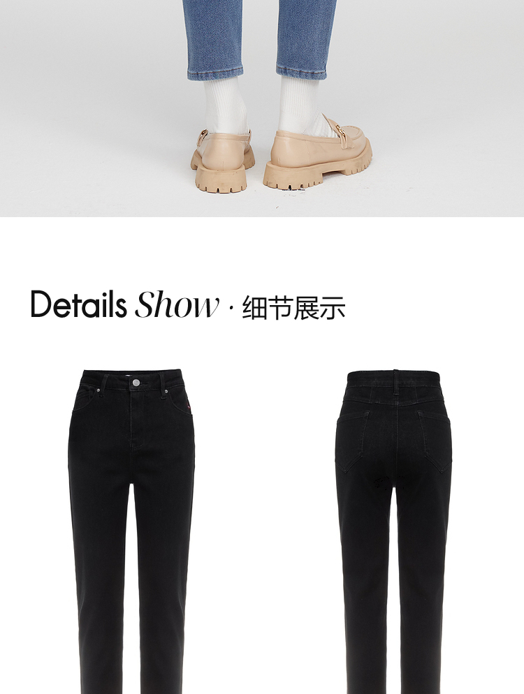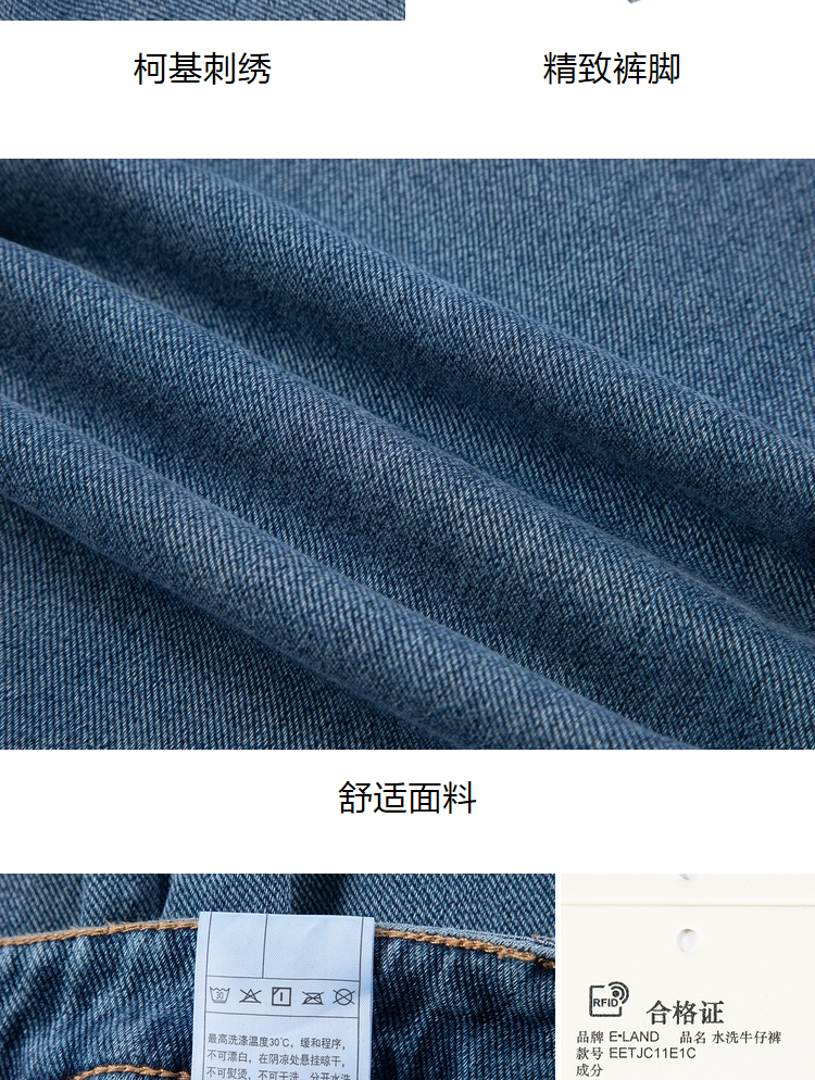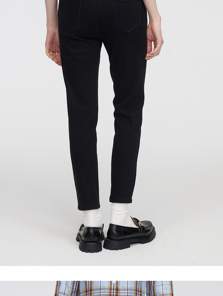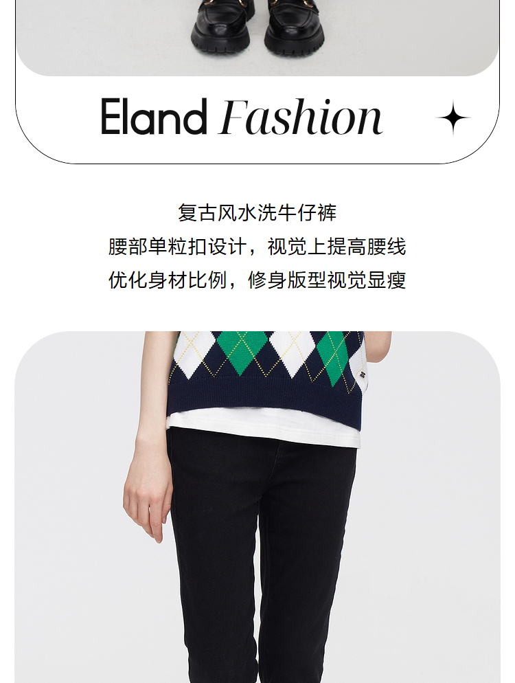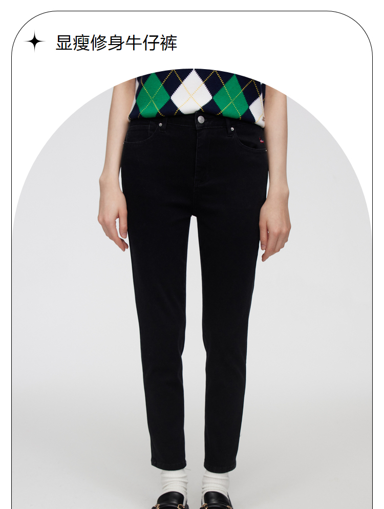 ELAND简约纯色修身小脚裤牛仔裤EETJC11E1C