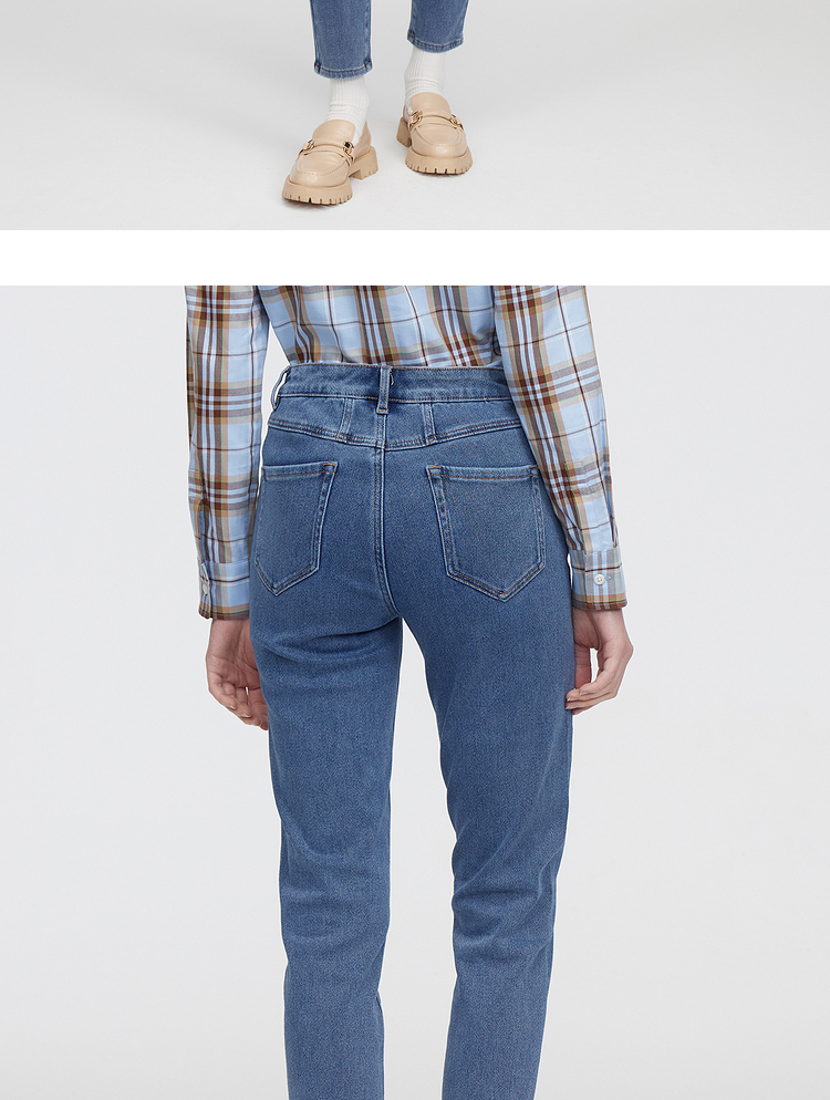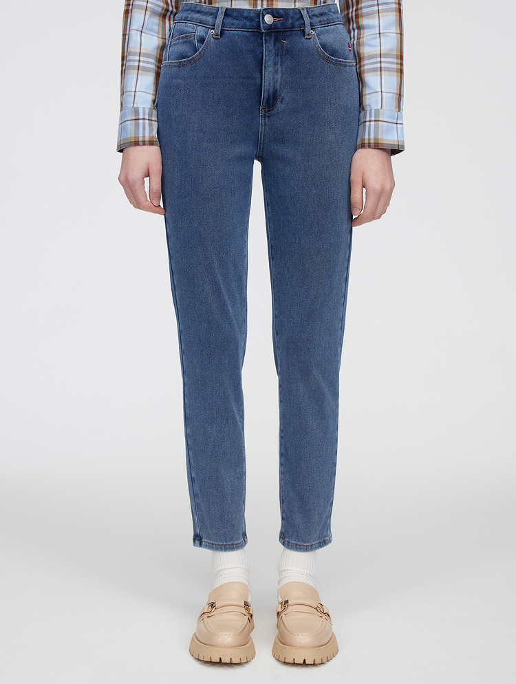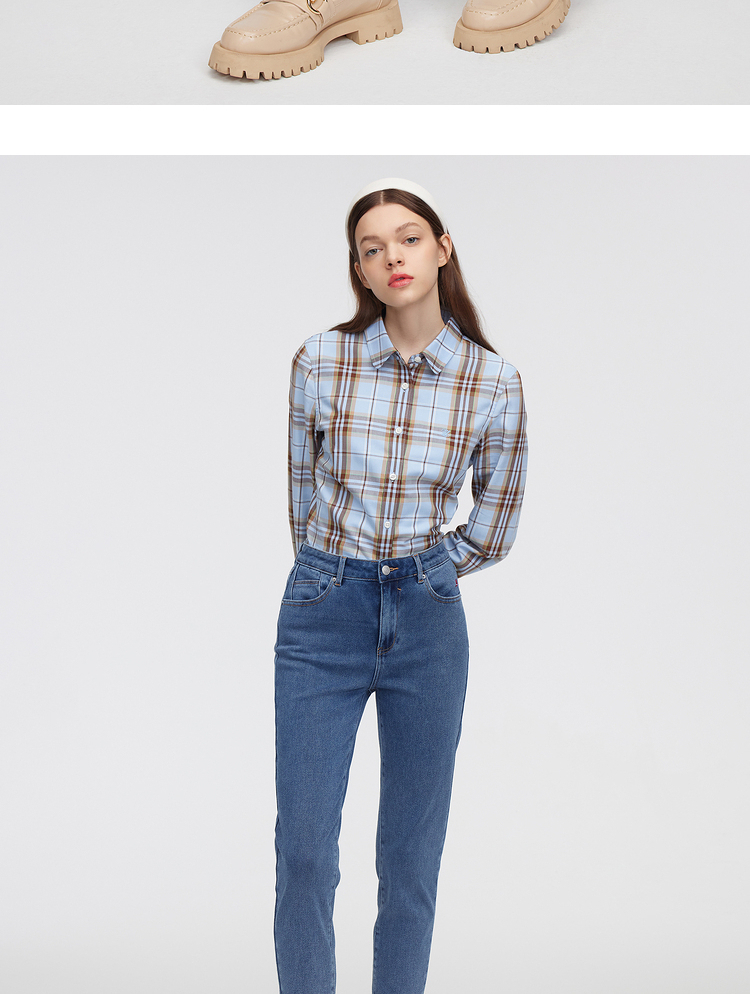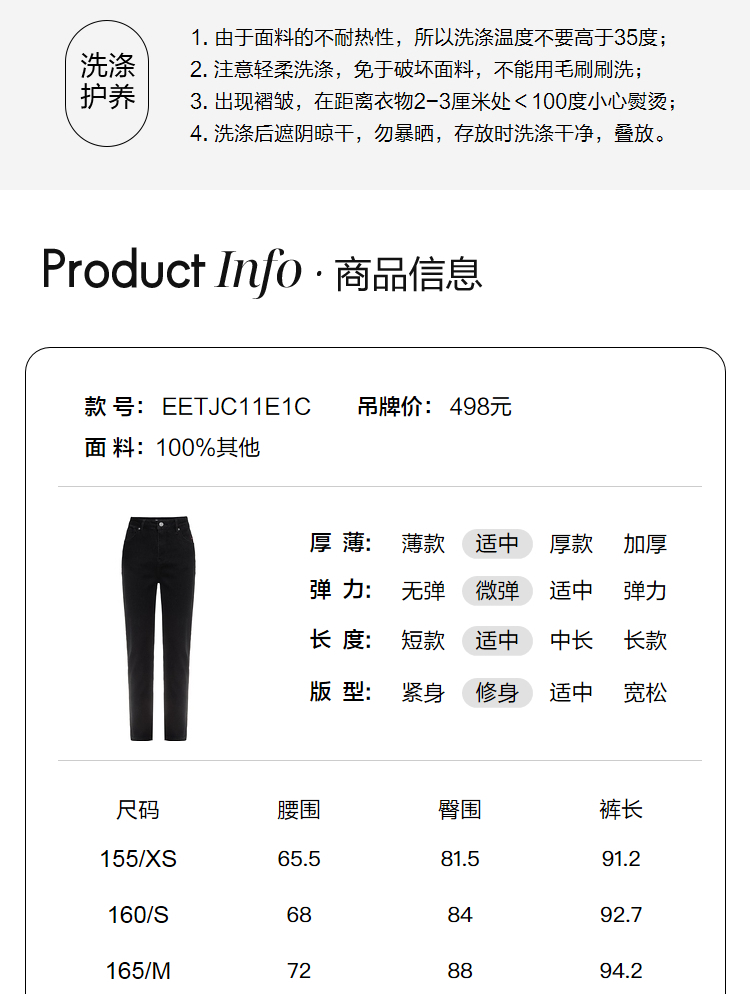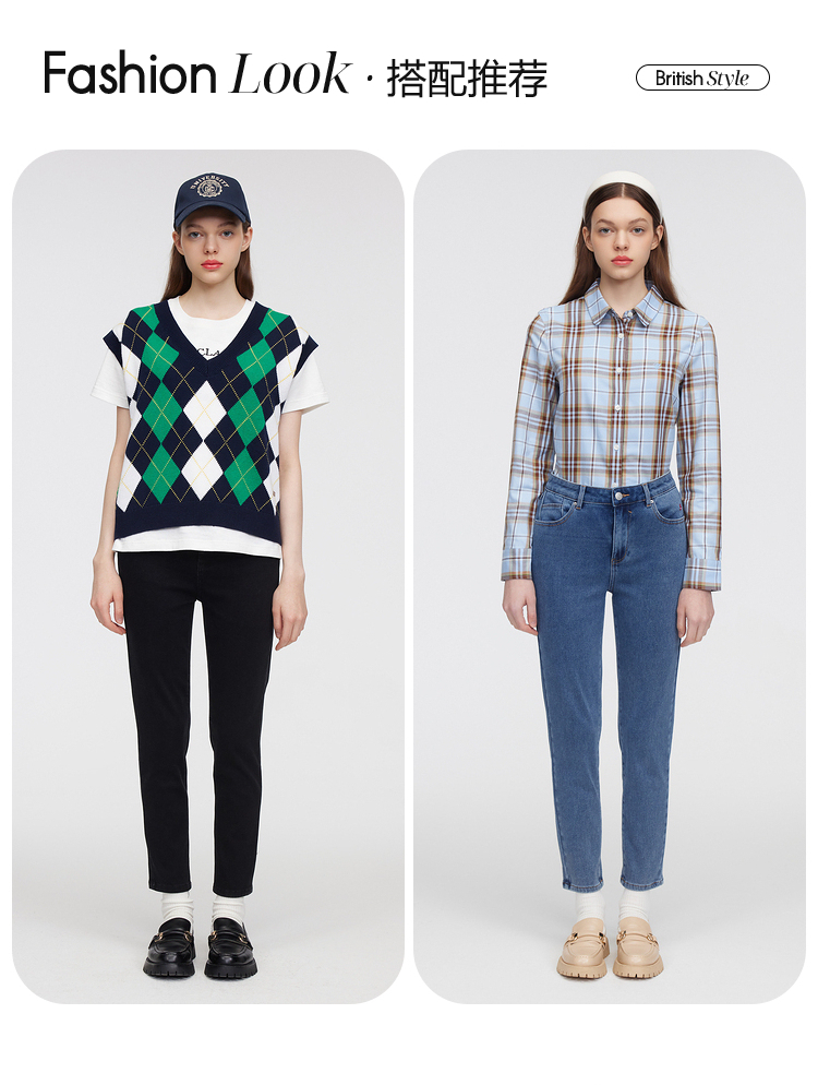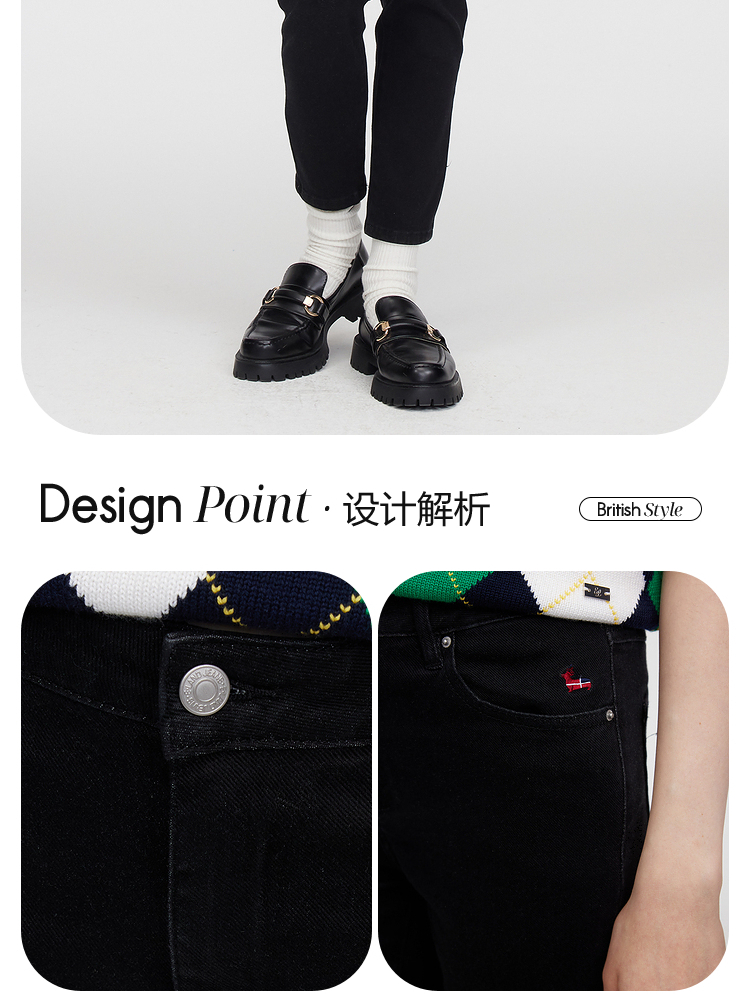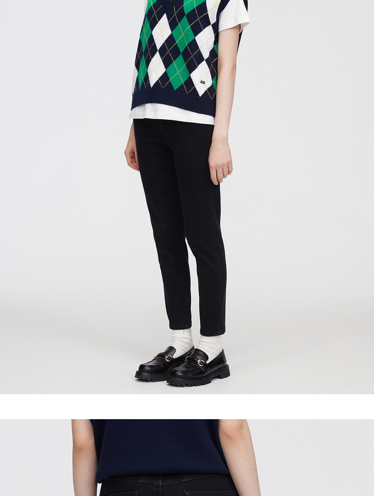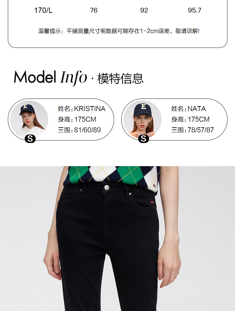 ELAND简约纯色修身小脚裤牛仔裤EETJC11E1C