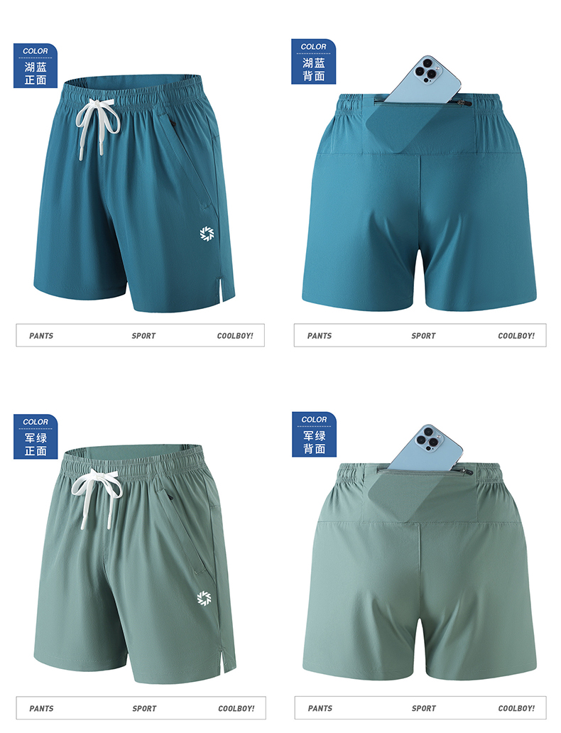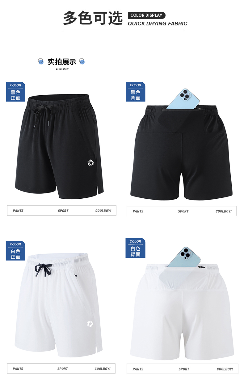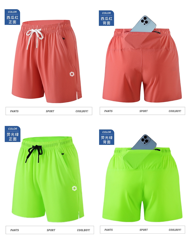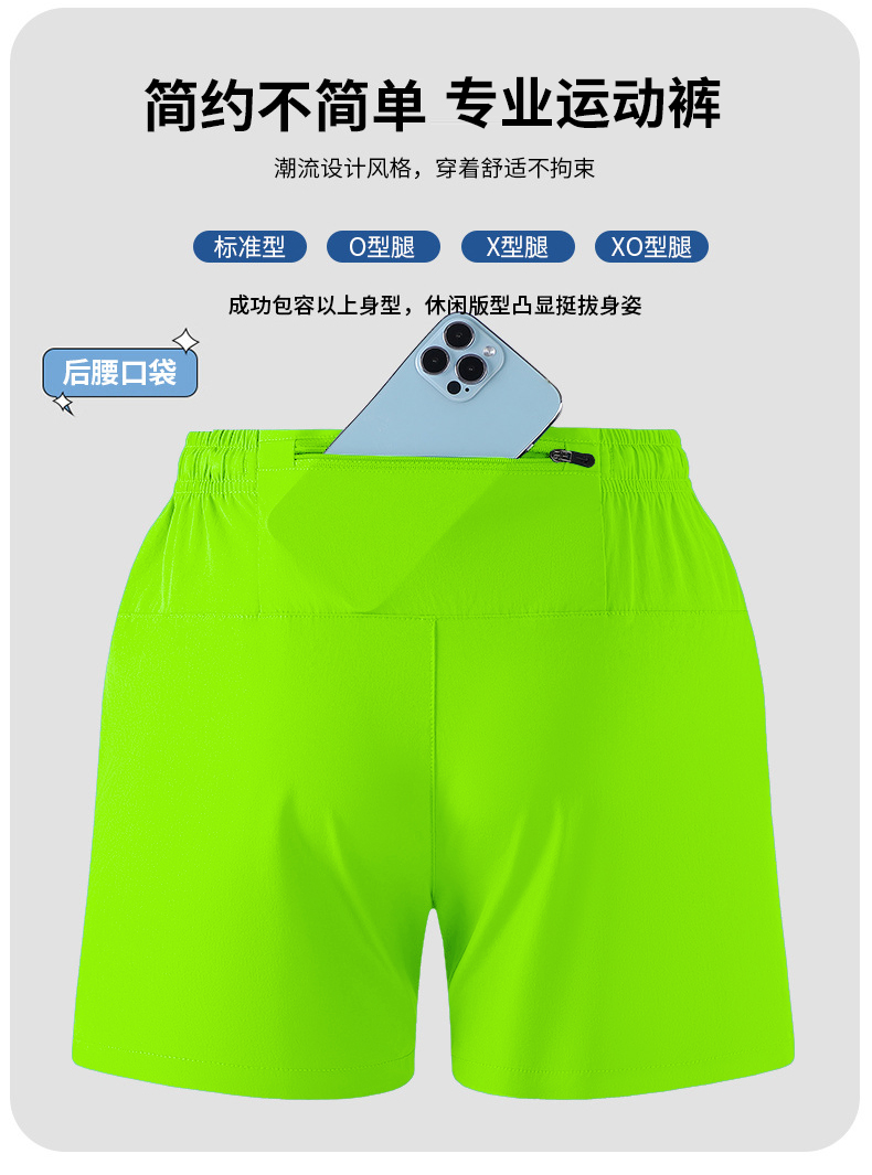 积能 新款男女跑步短裤后腰口袋可放手机马拉松三分跑步运动短裤