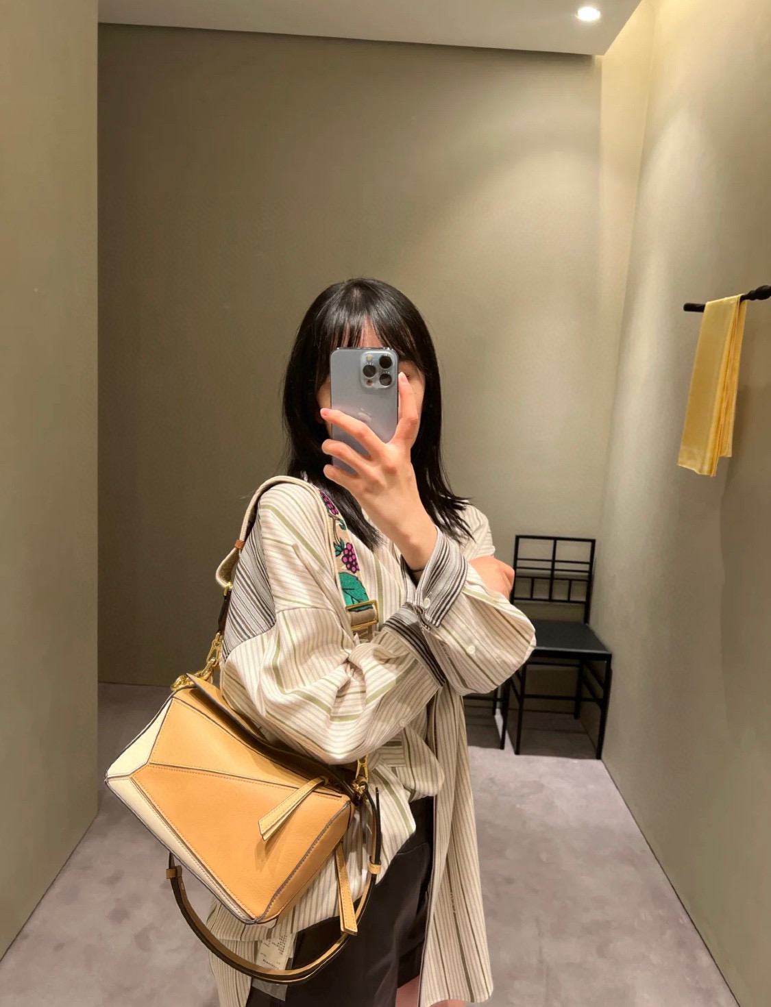 超温柔的色系,简约大气的几何设计 可甜可盐定制小牛皮 随便揉捏 包型都不变 手感舒适上身气质立马up~立体包型还蕴藏着非凡的容量 是永远都囤不够的热门单品啊size:24*10*14cm/小号