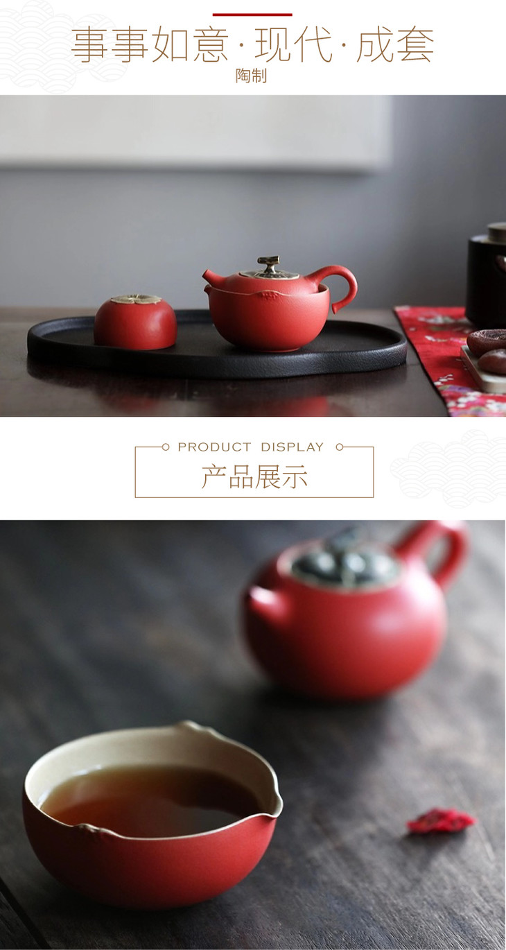 事事如意现代成套茶器朱漆釉1壶1海4杯1盘
