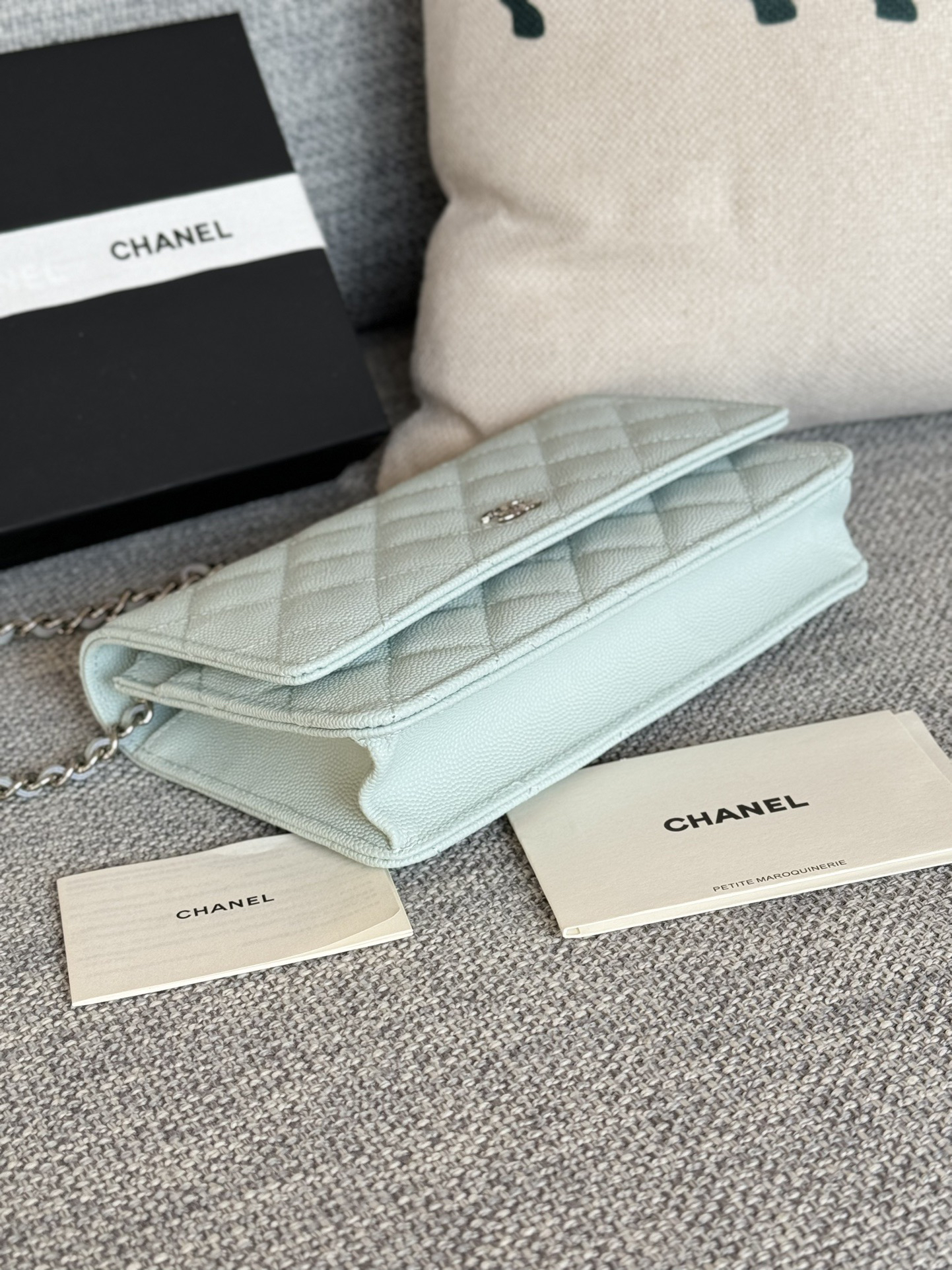 香奈儿woc链条包🉐️牛皮-薄荷绿银扣(⚠️细球纹)