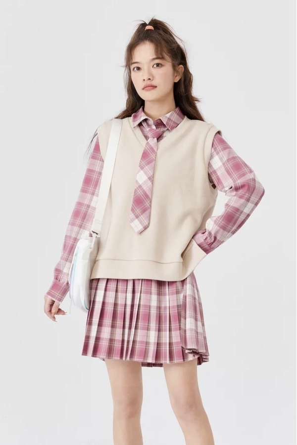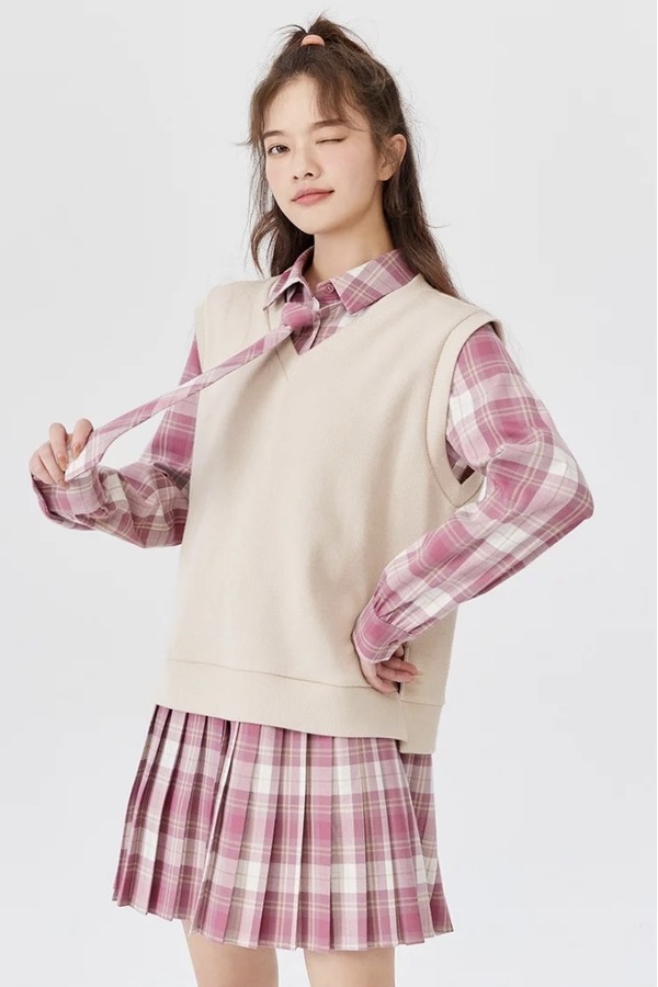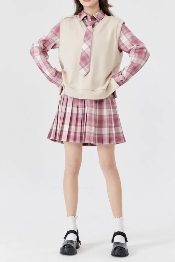SEM/R森马 格纹衬衫裙针织两件套 17997