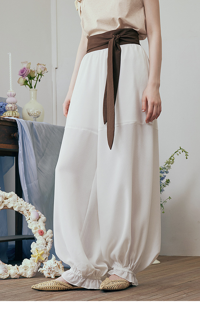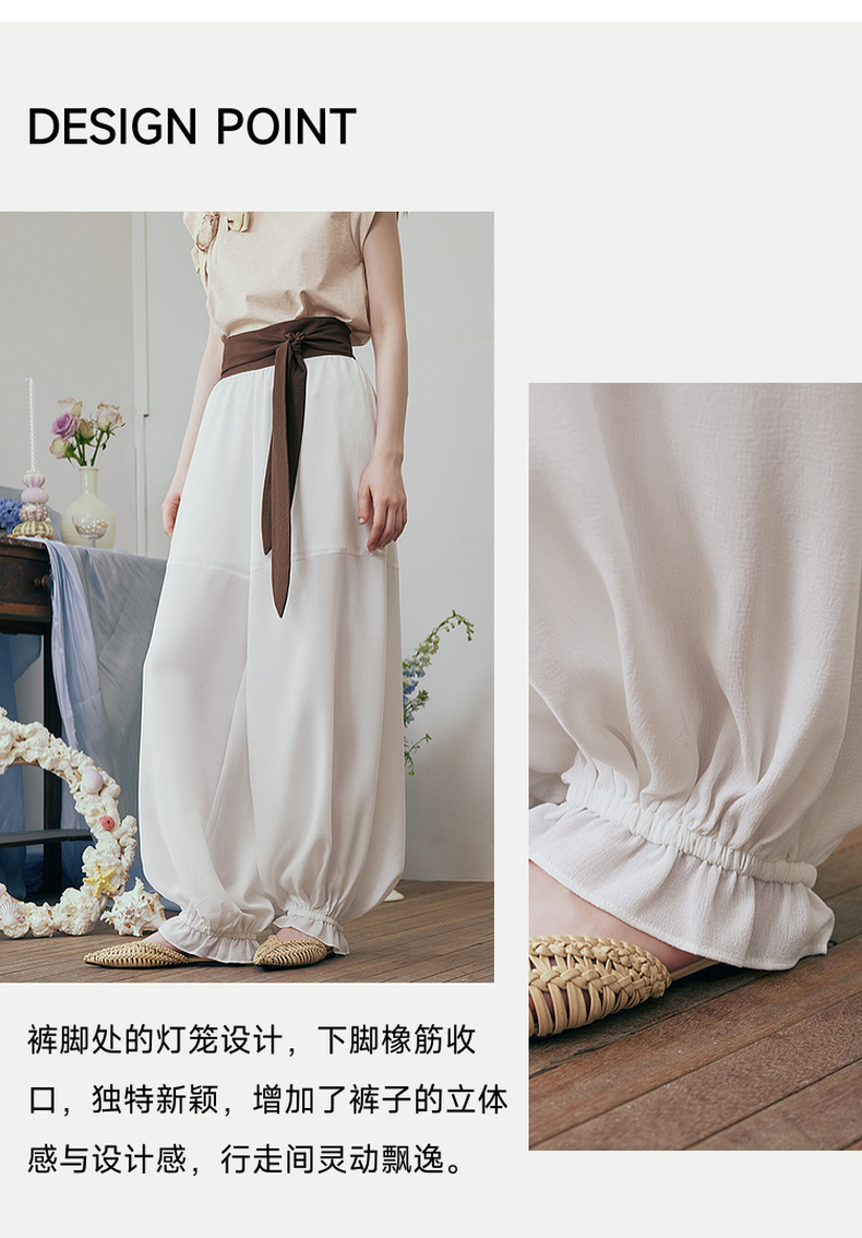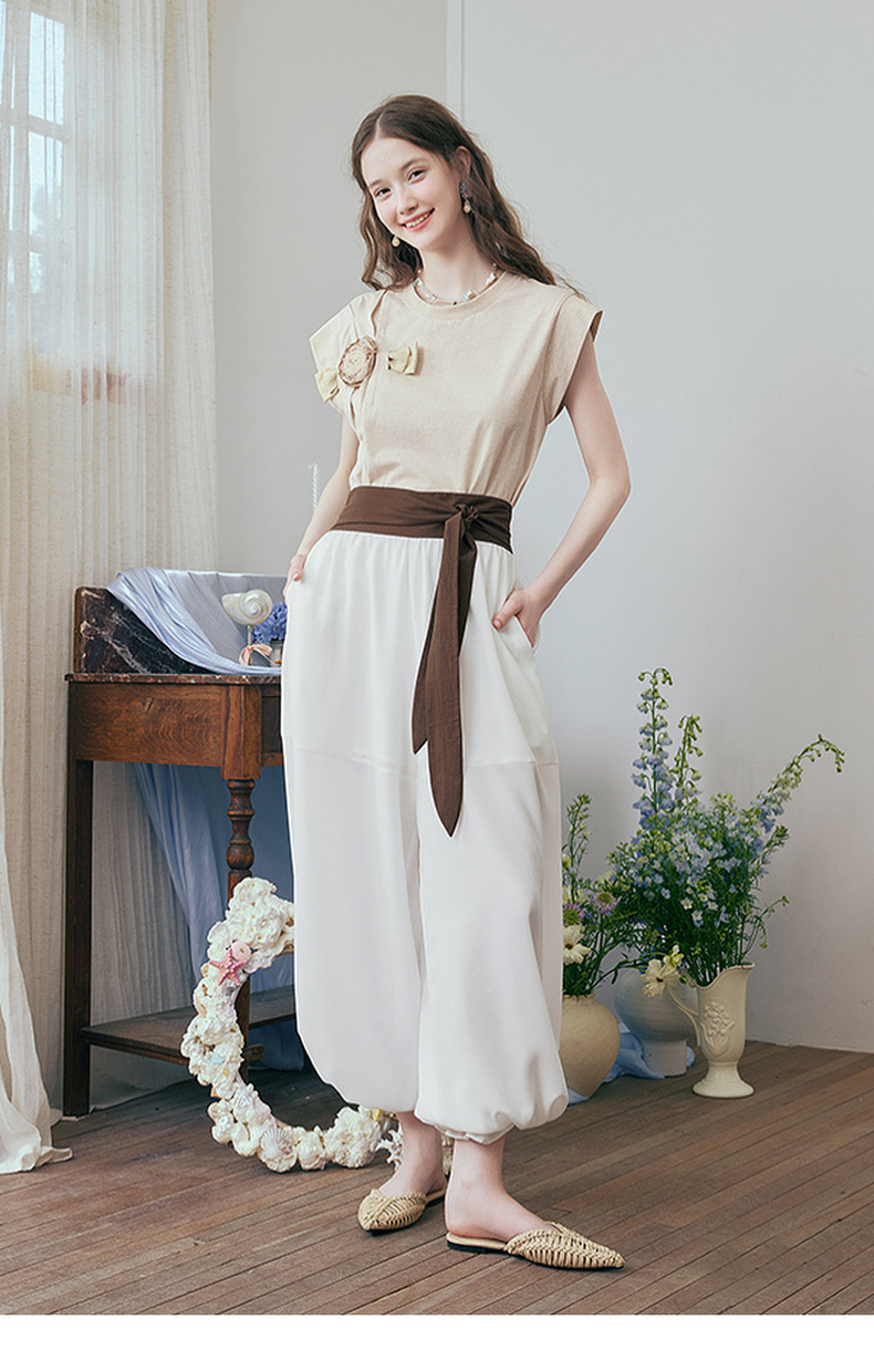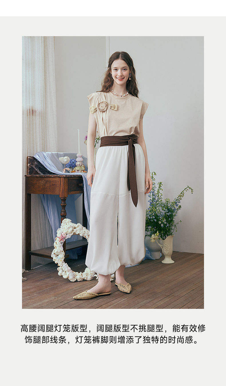 两三事 尼罗漫旅 2025夏季新款时尚拼色绑带灯笼裤女宽松休闲裤