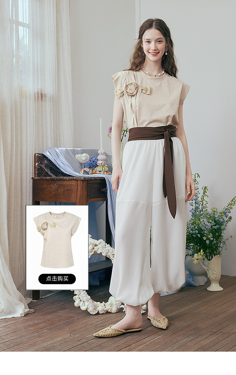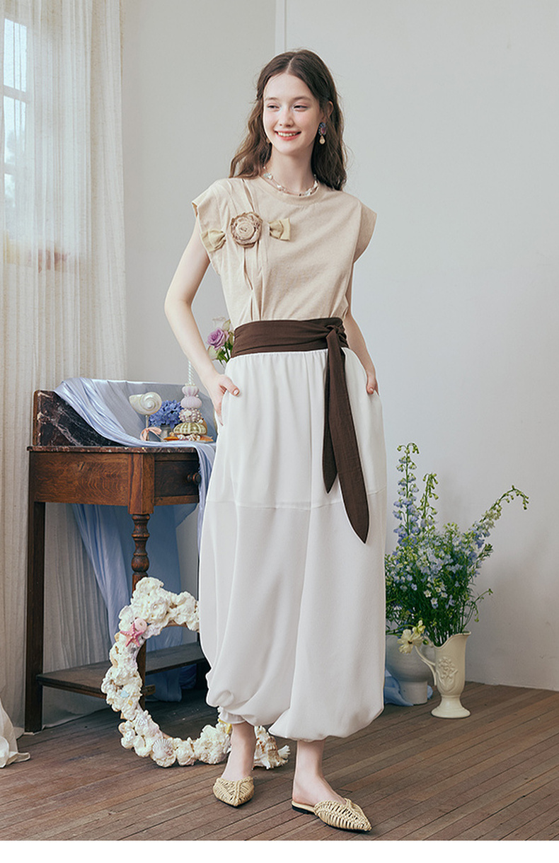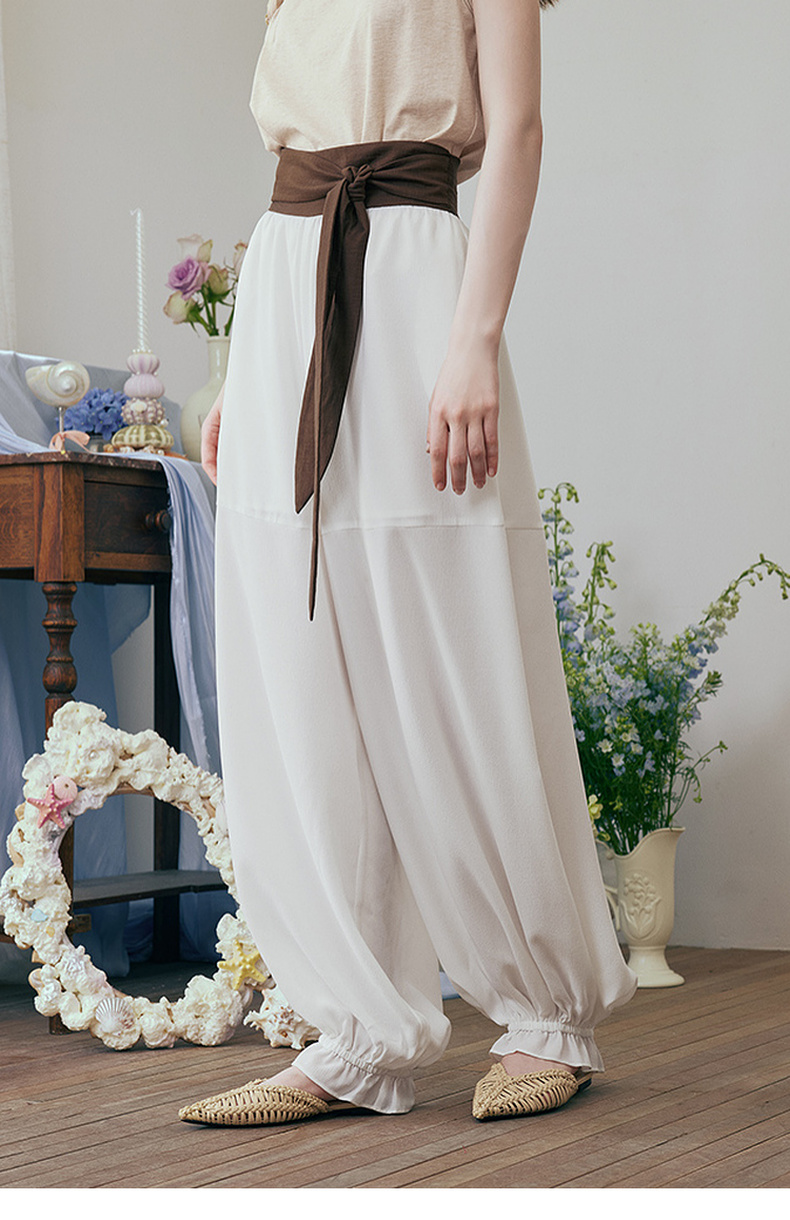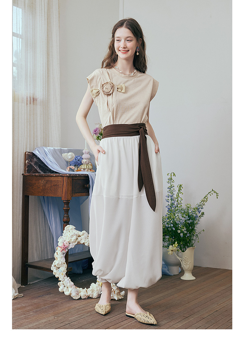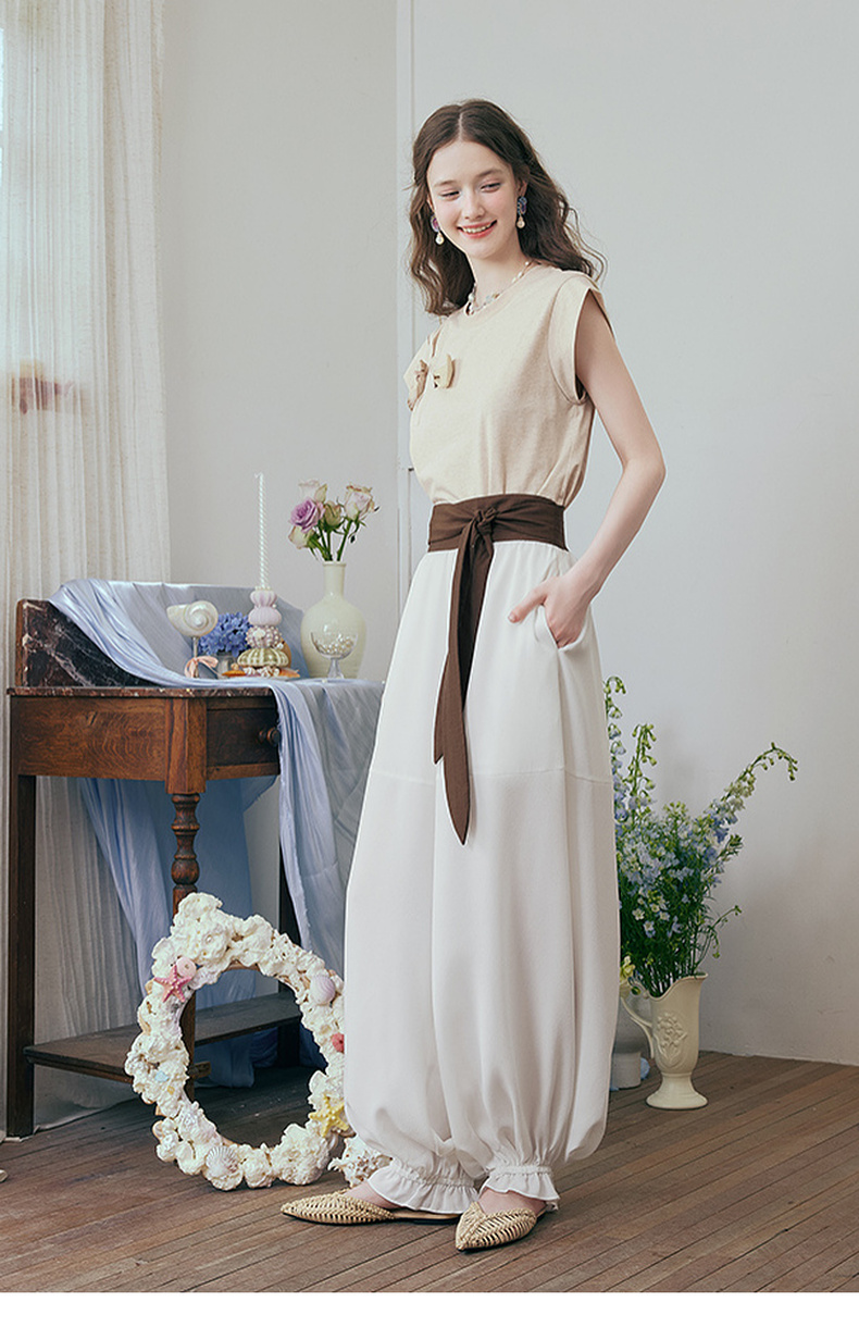两三事 尼罗漫旅 2025夏季新款时尚拼色绑带灯笼裤女宽松休闲裤