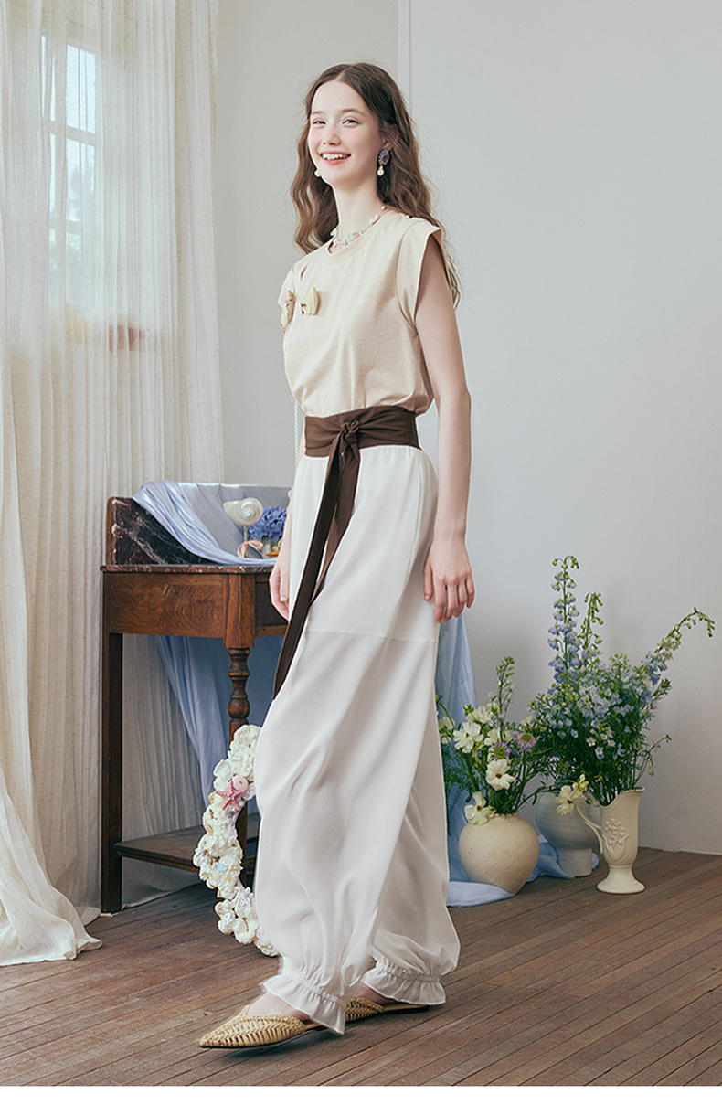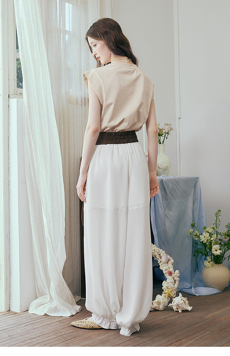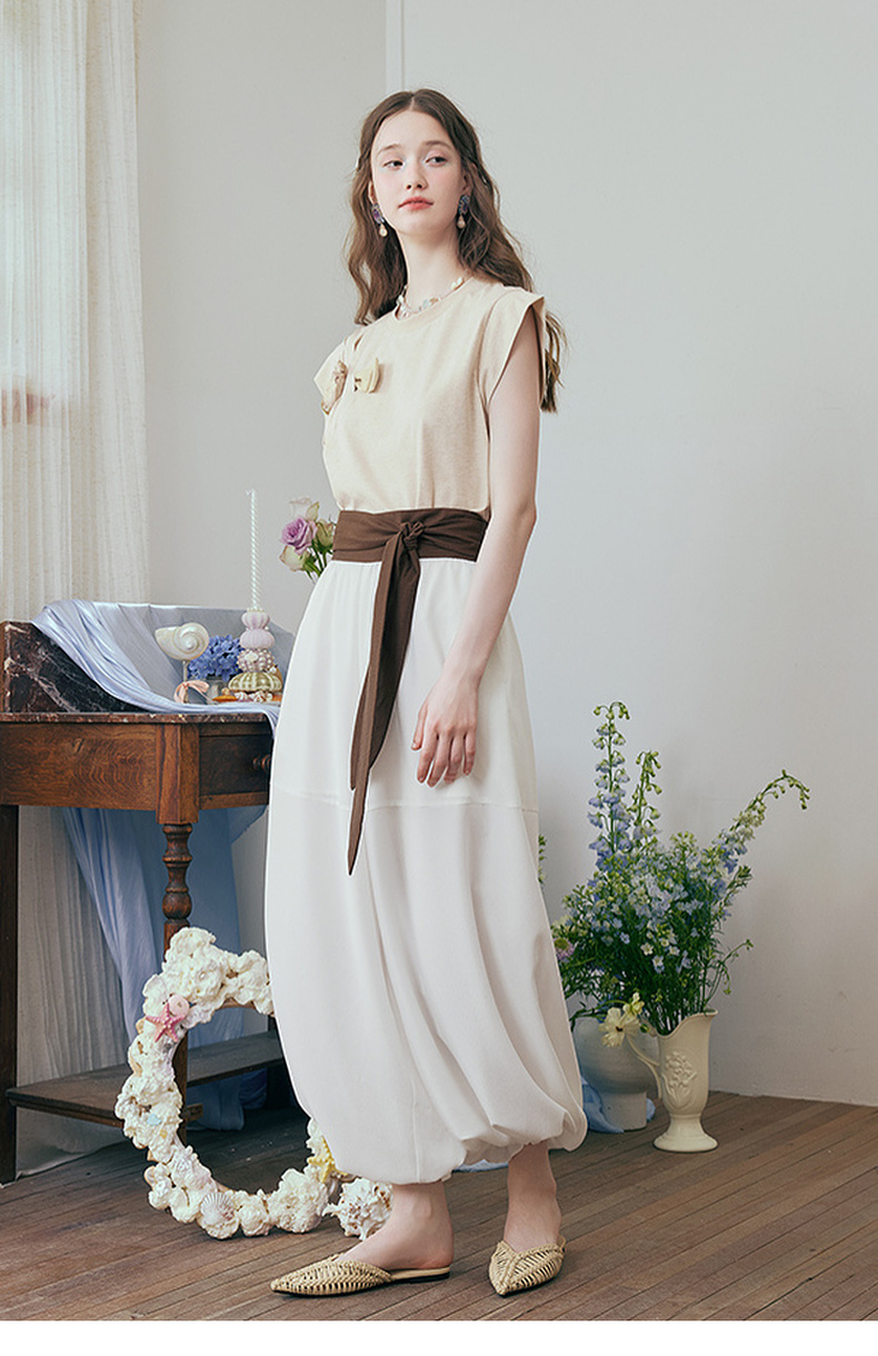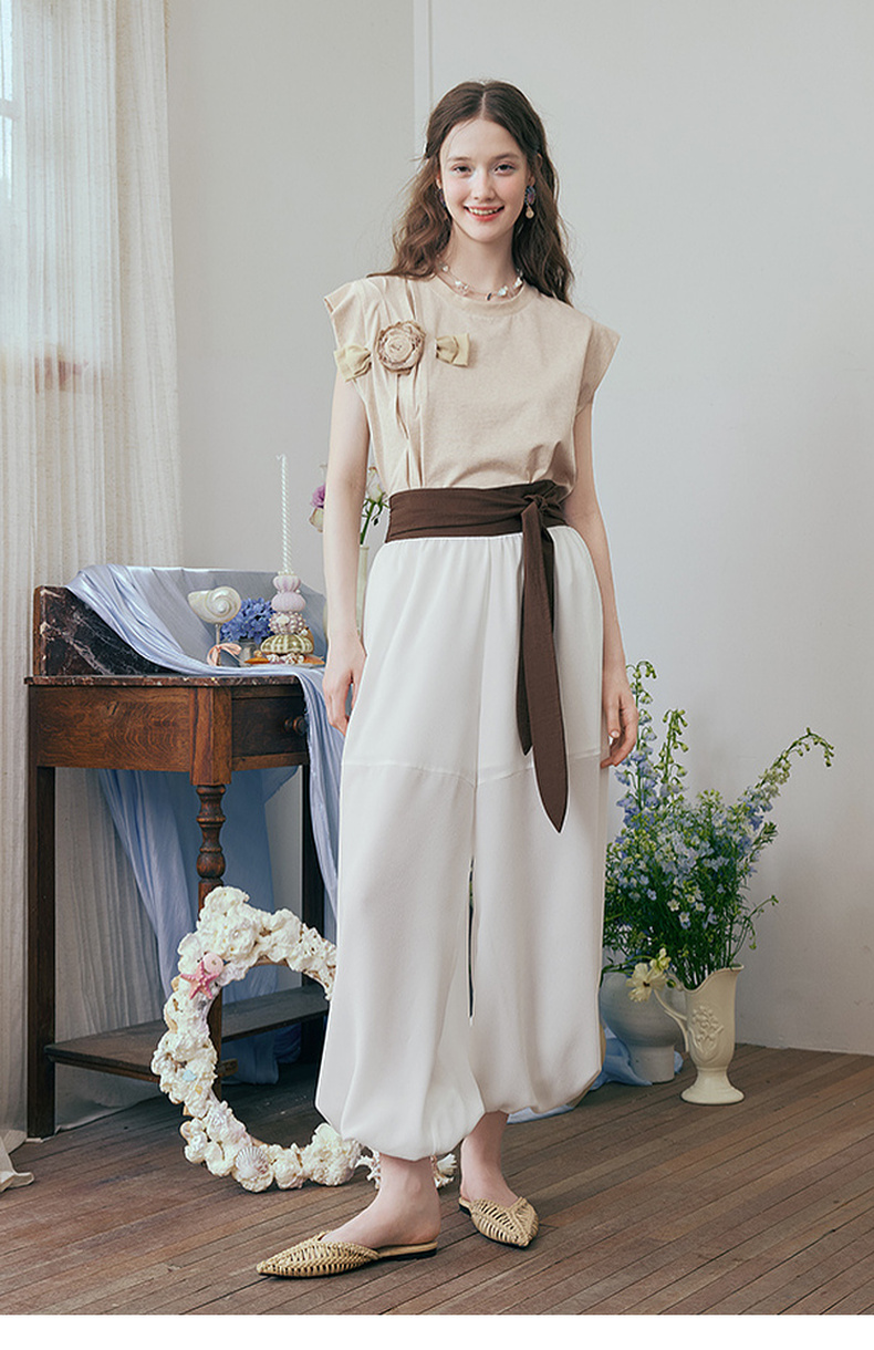 两三事 尼罗漫旅 2025夏季新款时尚拼色绑带灯笼裤女宽松休闲裤