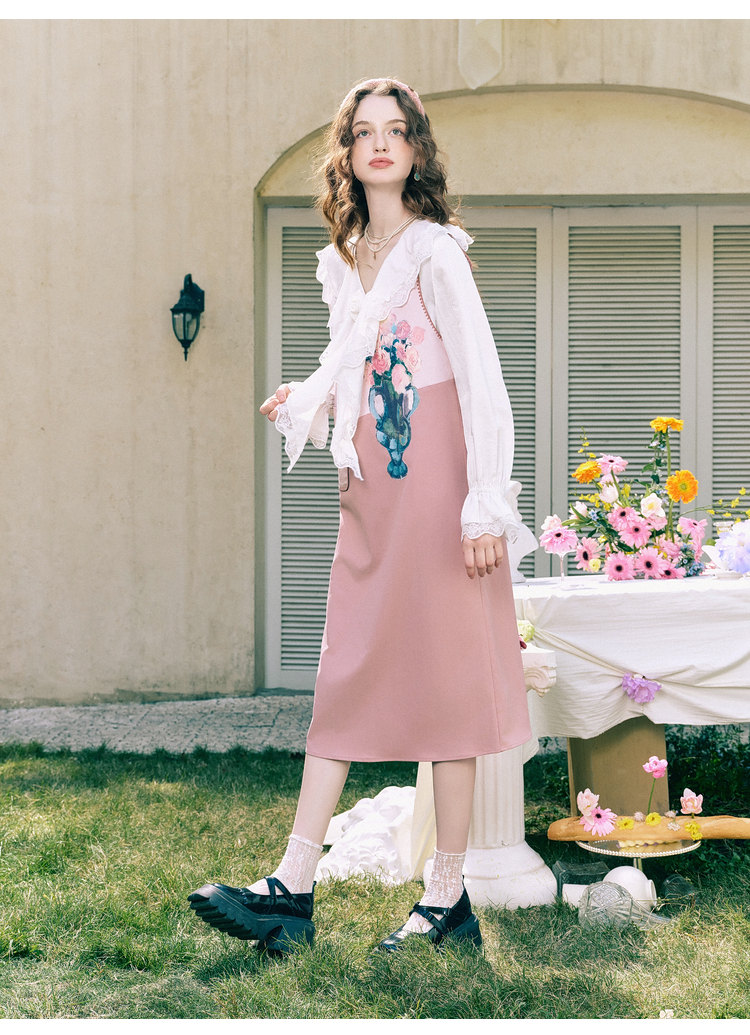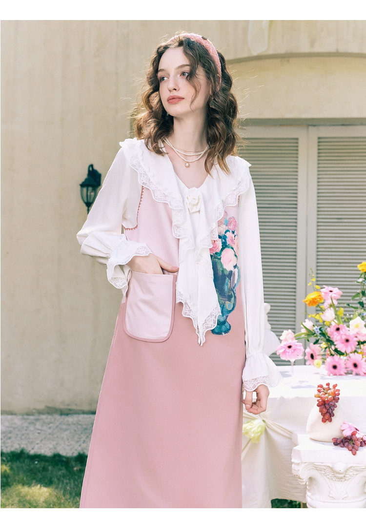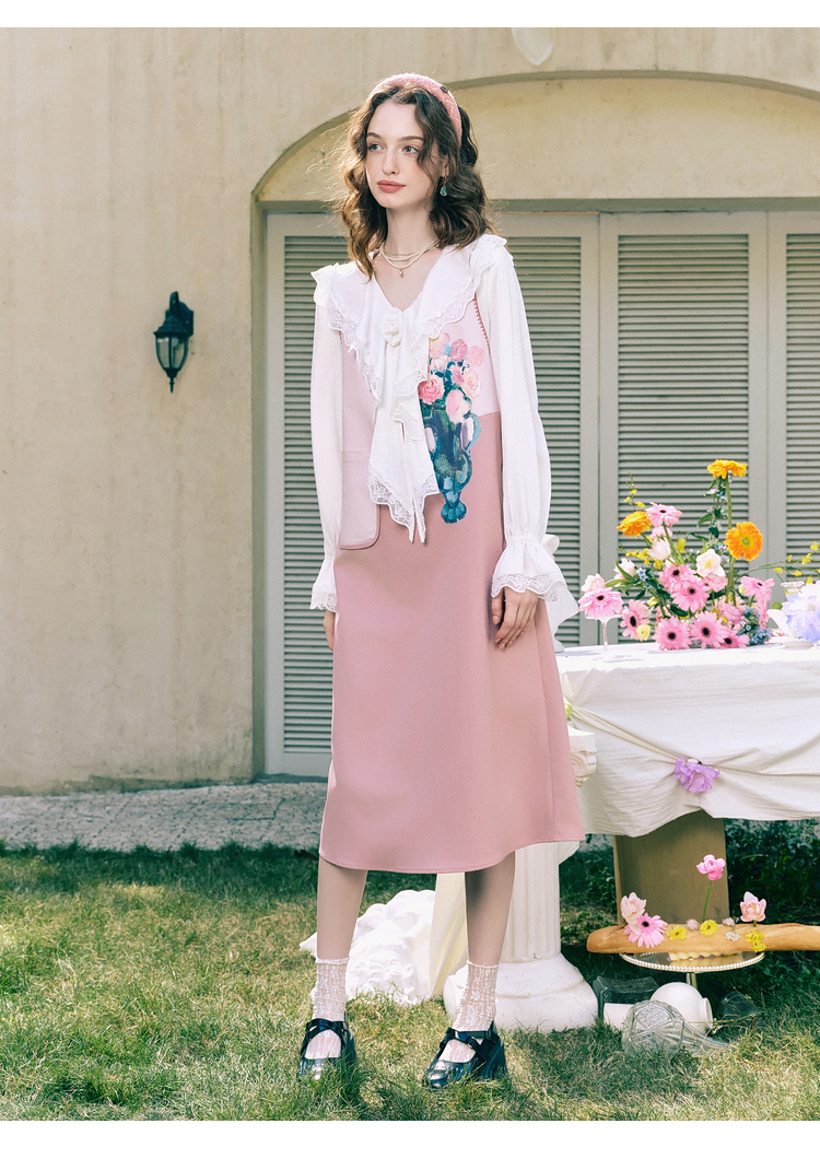 两三事 本真底色 2025春季新款文艺风印花绑带v领衬衫女宽松