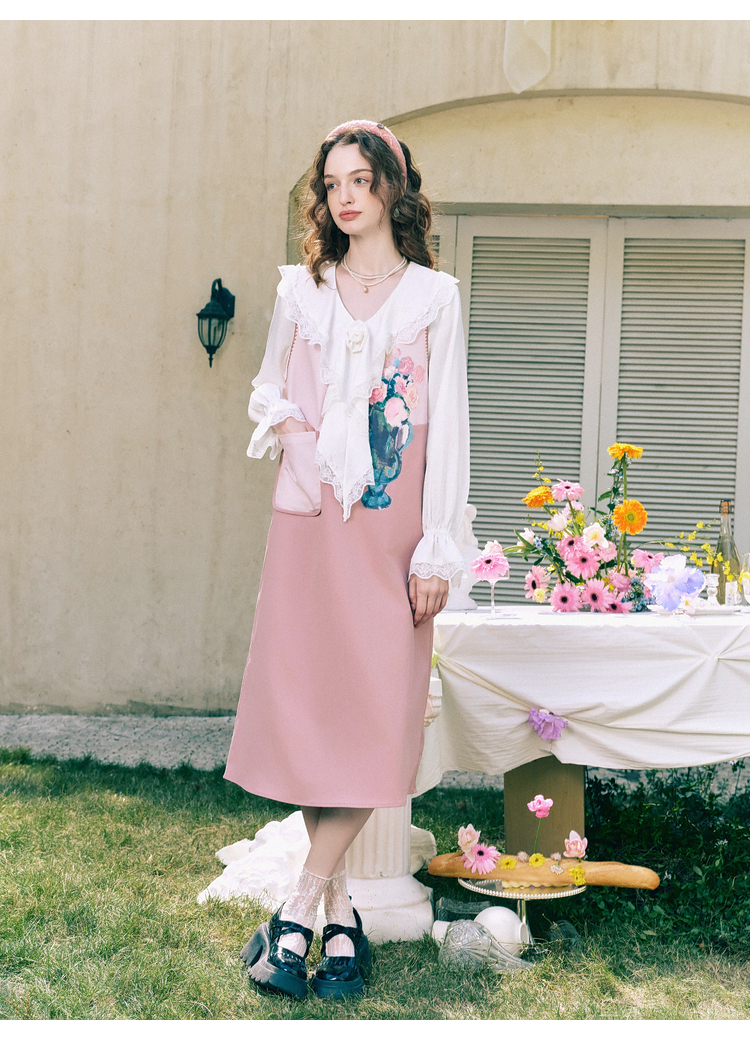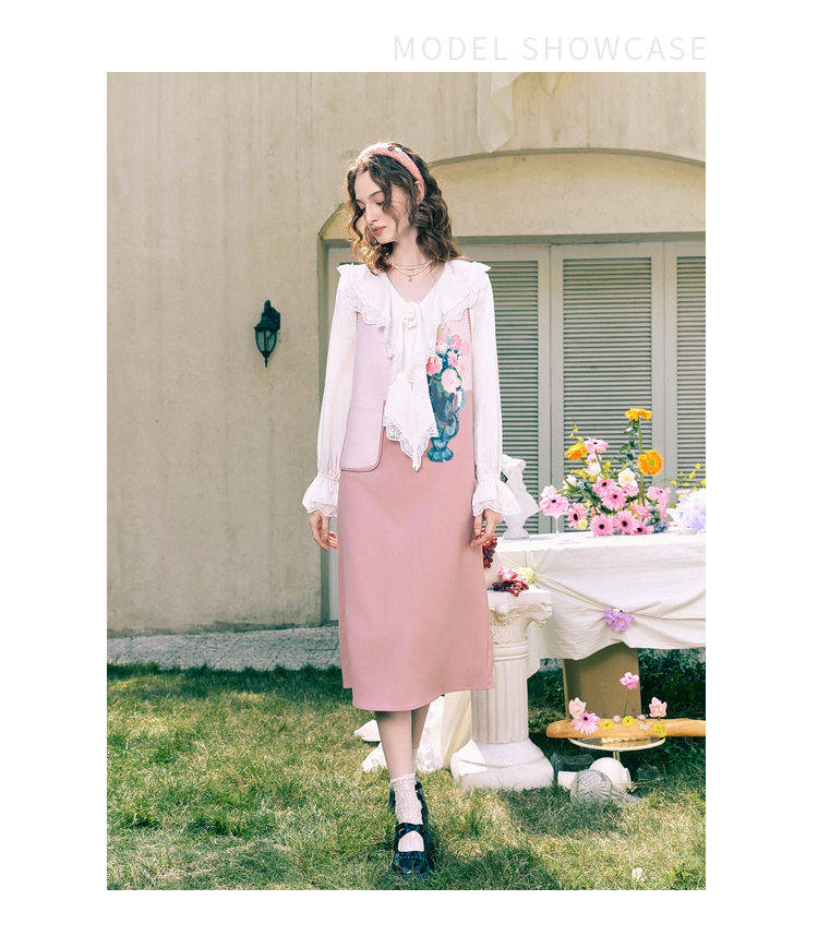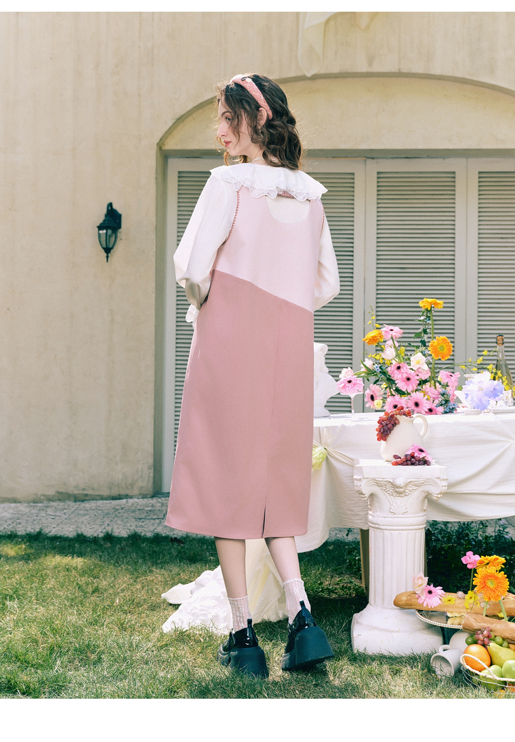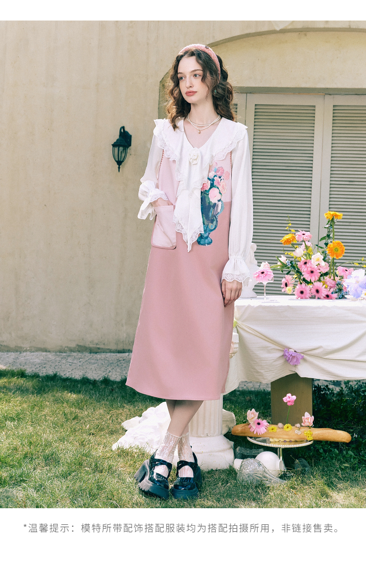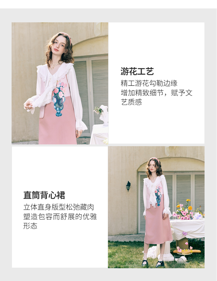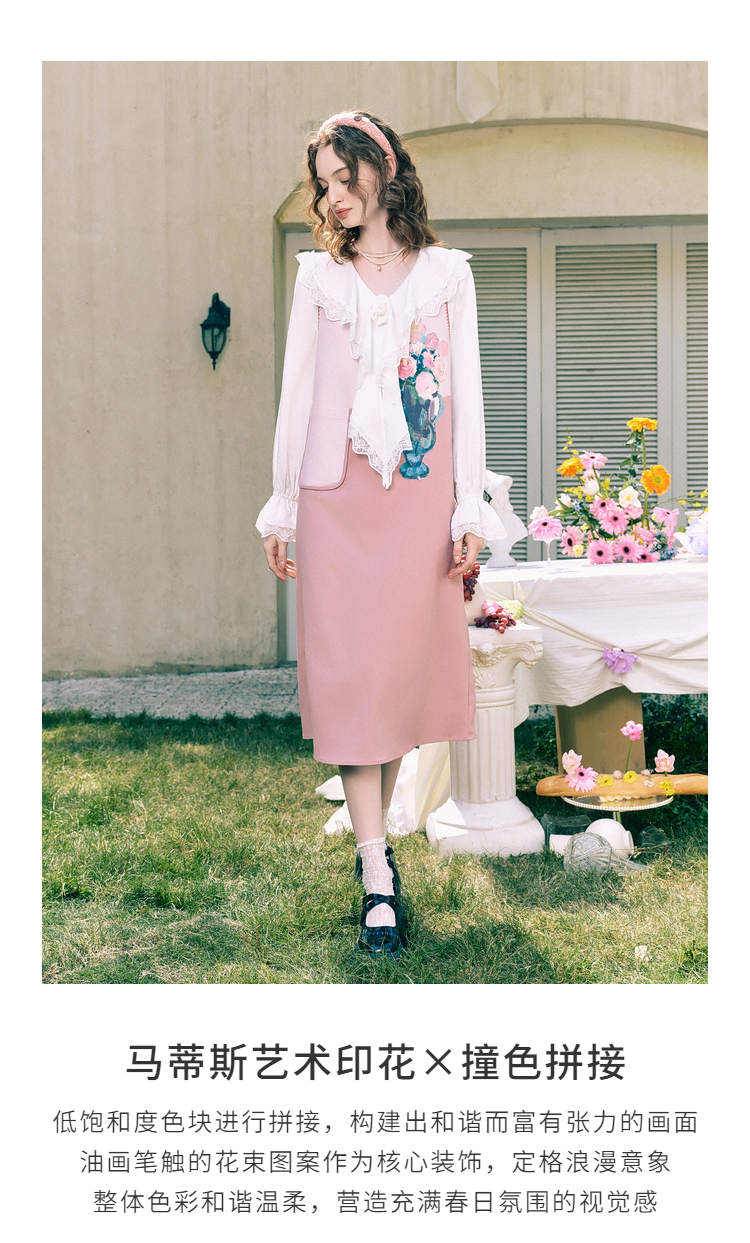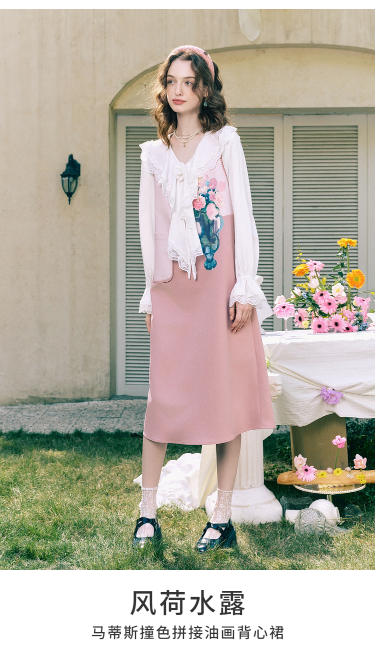 两三事 风荷水露 2026春季新款甜美拼色印花无袖背心裙连衣裙