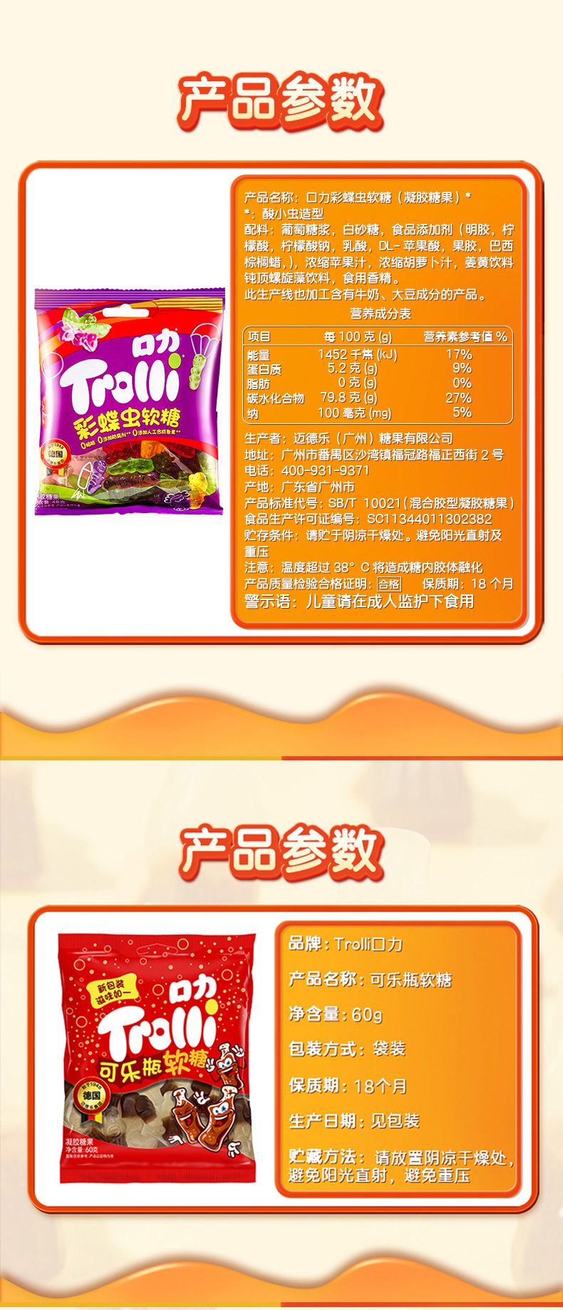 【自营】Trolli德国口力四款造型水果软糖 216g