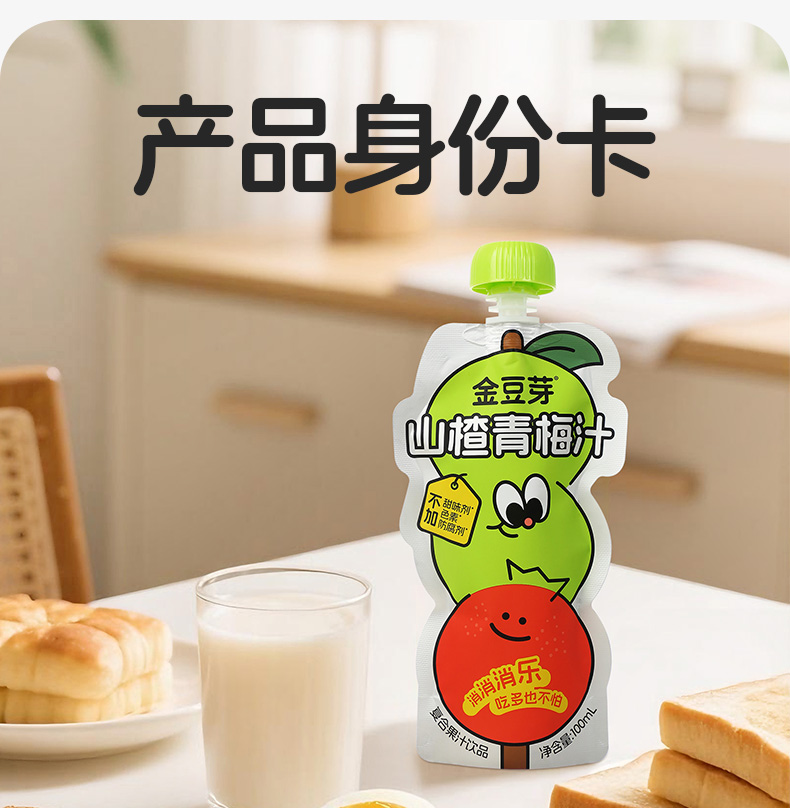 【新品尝鲜】山楂青梅汁100ML/袋*13袋解腻果汁
