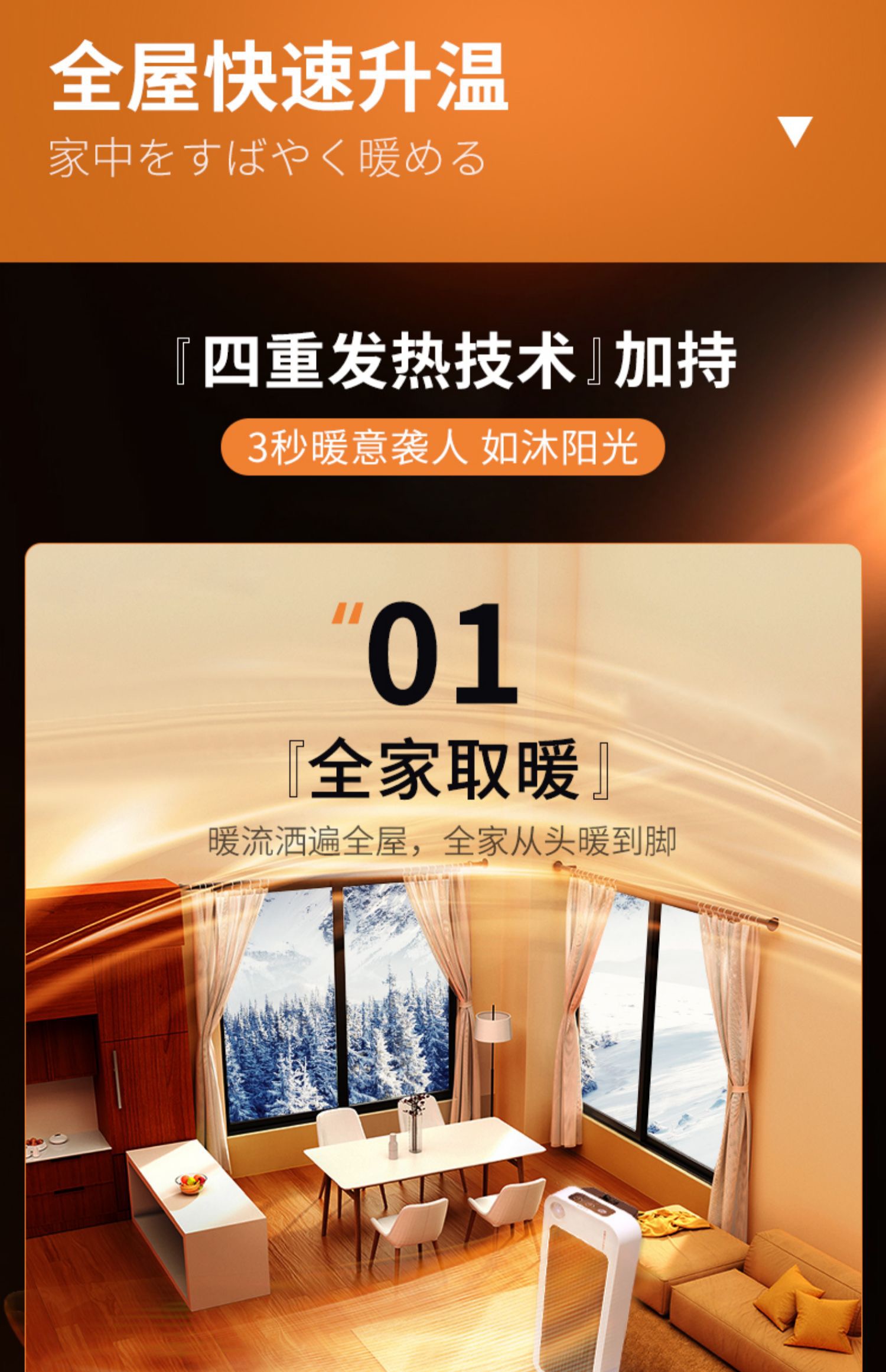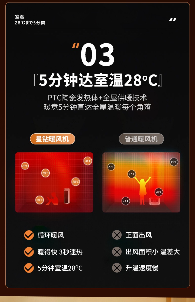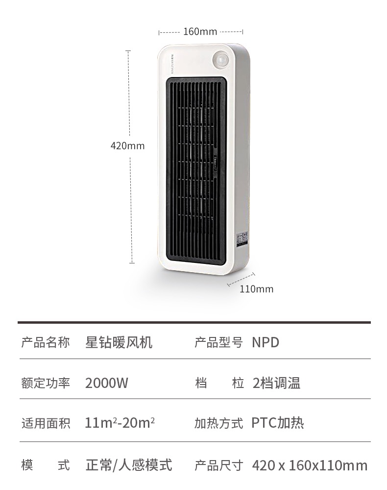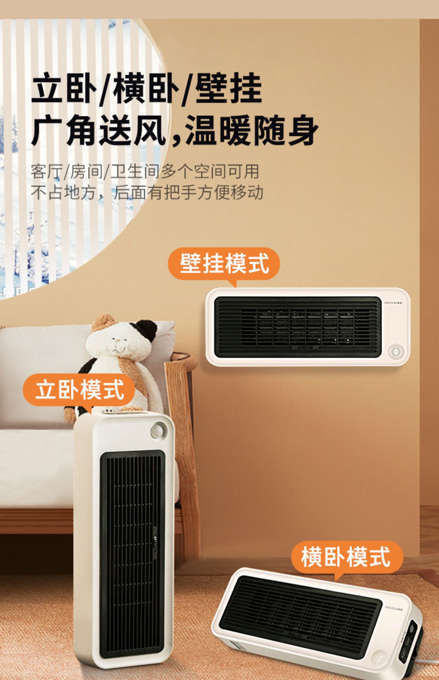 星钻暖风机全屋取暖器节能壁挂两用速热大面积浴室卧室挂壁式电暖NPD