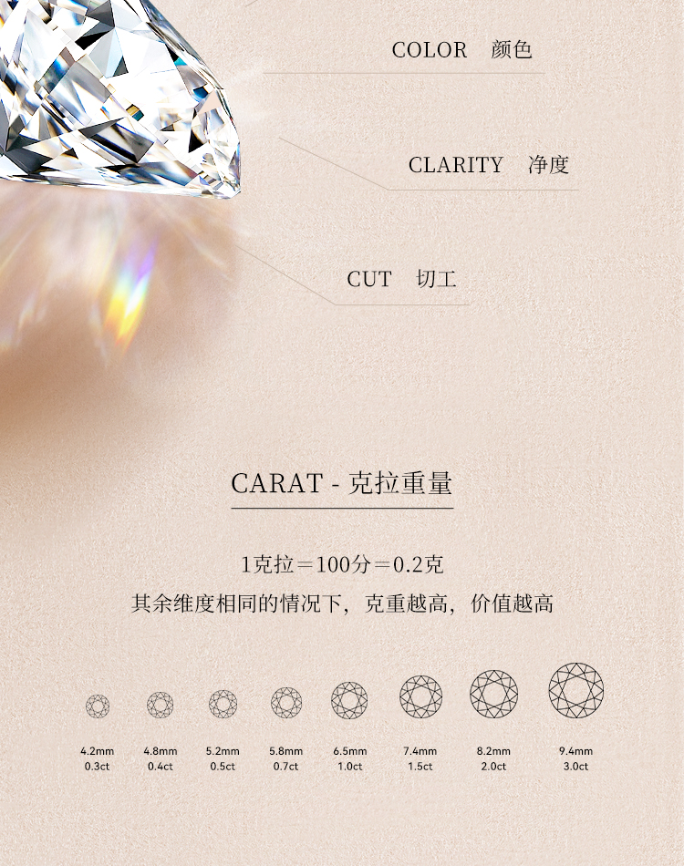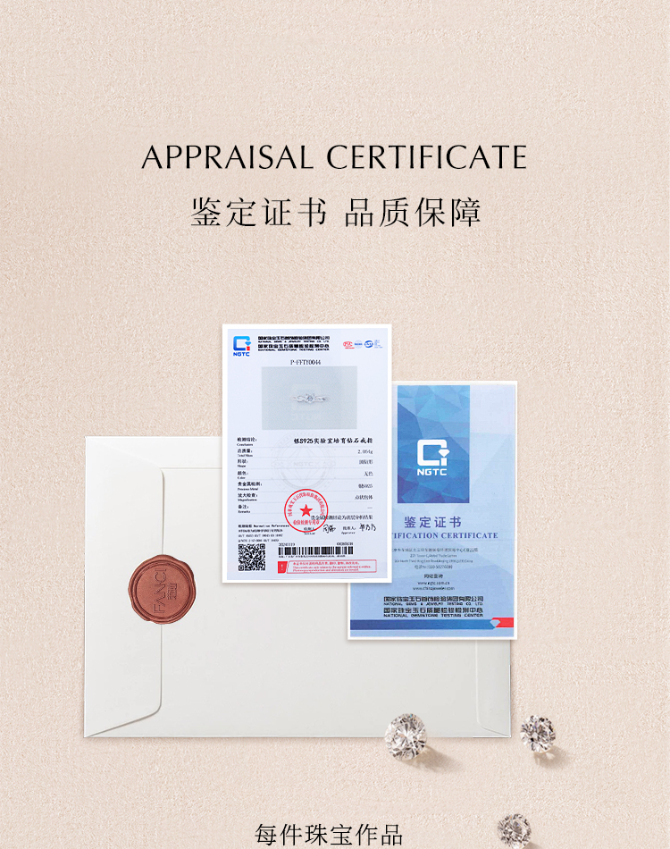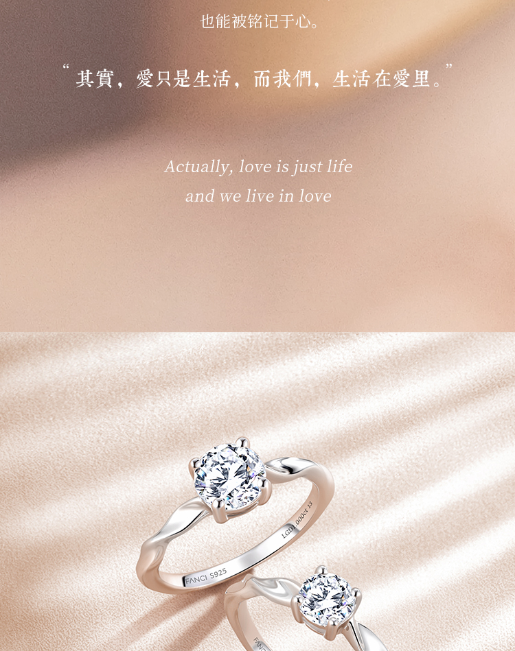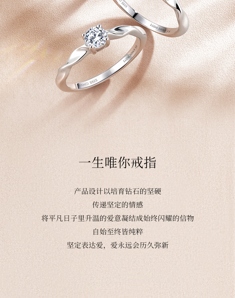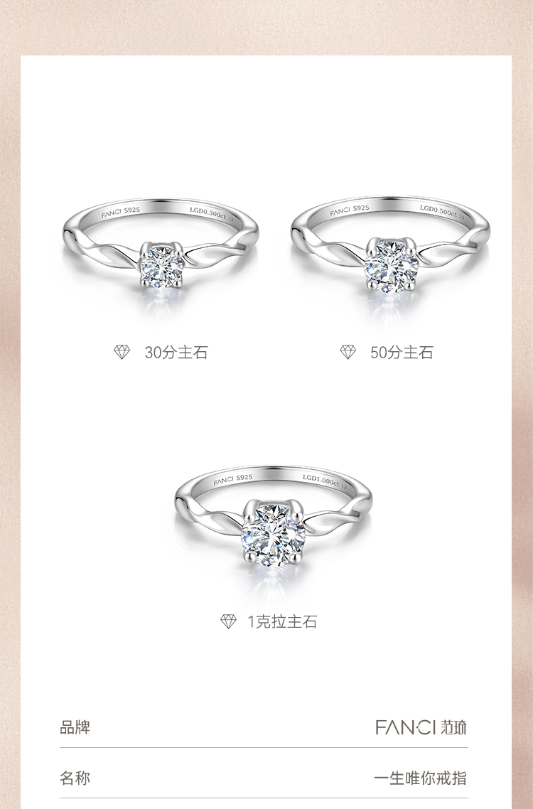 【培育钻石】Fanci范琦钻戒 一生唯你 S925镶嵌培育钻石 30分/50分/1克拉钻戒求婚订婚告白礼物