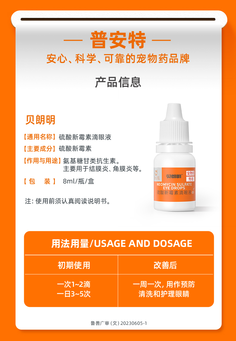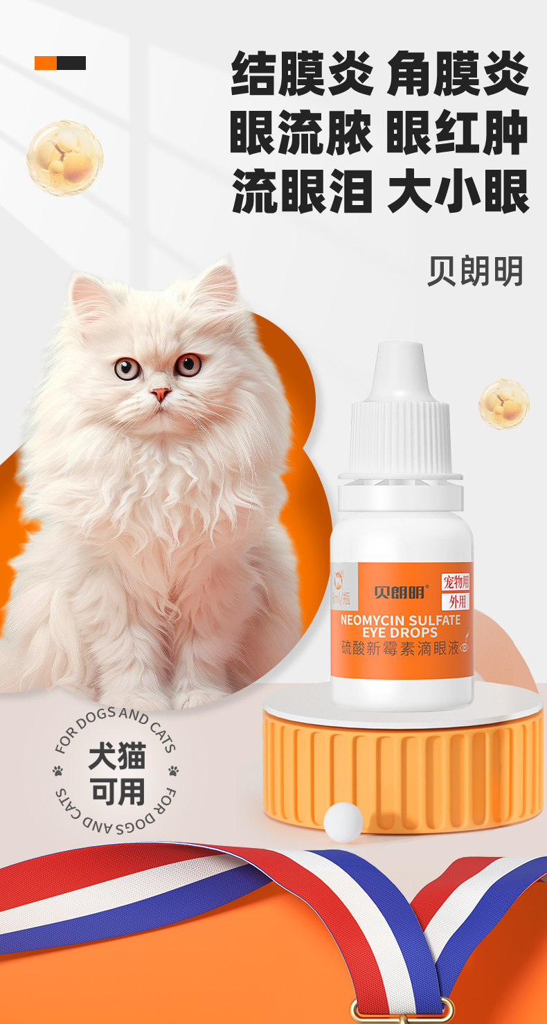 【买2送1】普安特猫咪眼药水狗狗用宠物眼睛发炎结膜炎流脓流贝朗明硫酸新霉素滴眼液滴眼液8ml