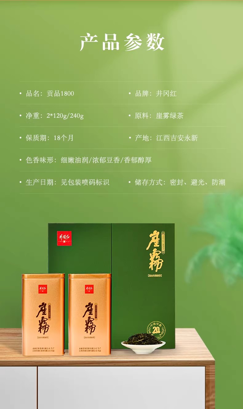 井冈红崖雾特级礼品茶高山有机绿茶240g浓郁板栗香