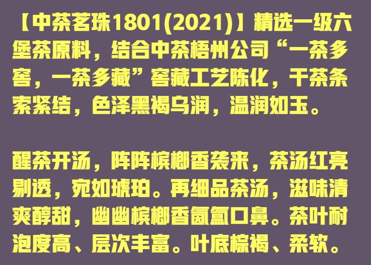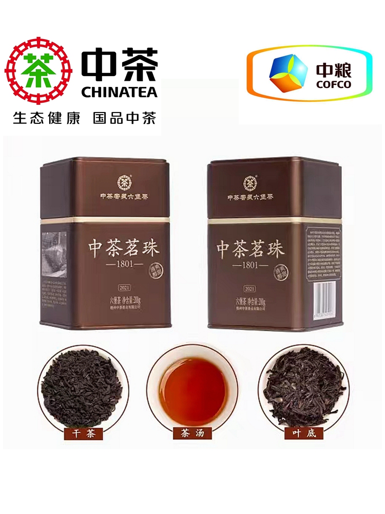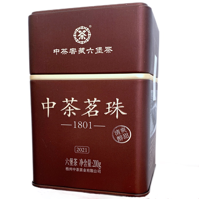 中粮-中茶2021年中茶茗珠1801梧州六堡茶黑茶叶罐装200g一级陈年散茶广西梧州特产 /产地直发