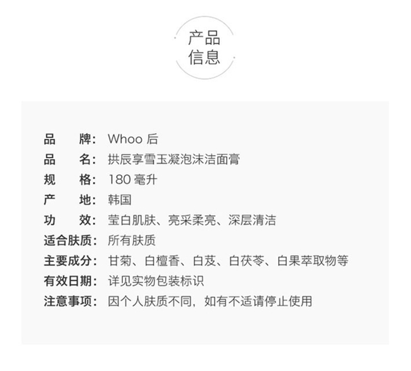 后 雪玉凝美白泡沫洁面膏 180ml