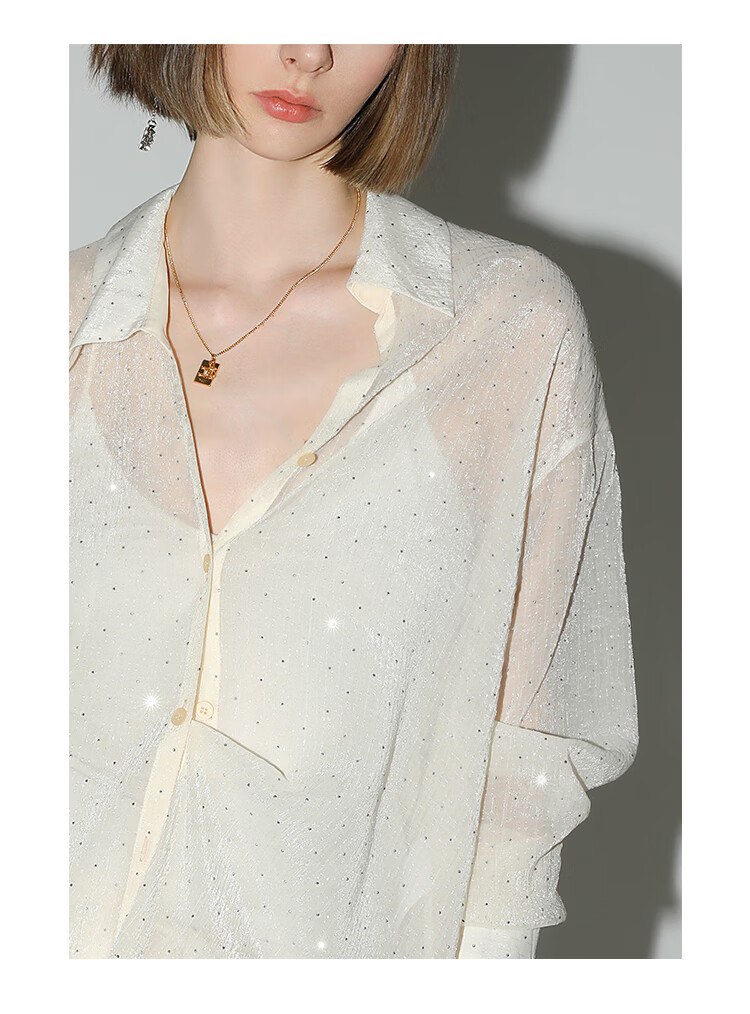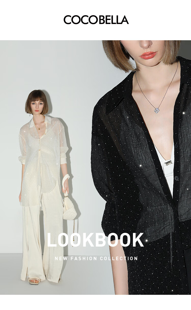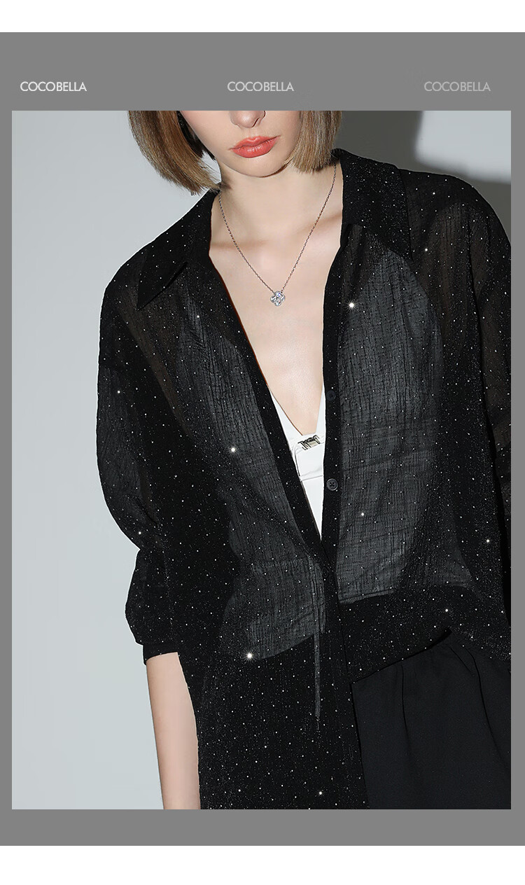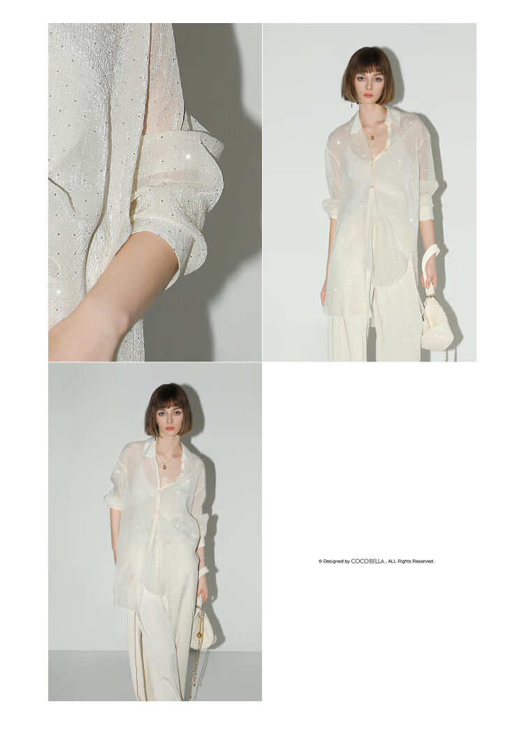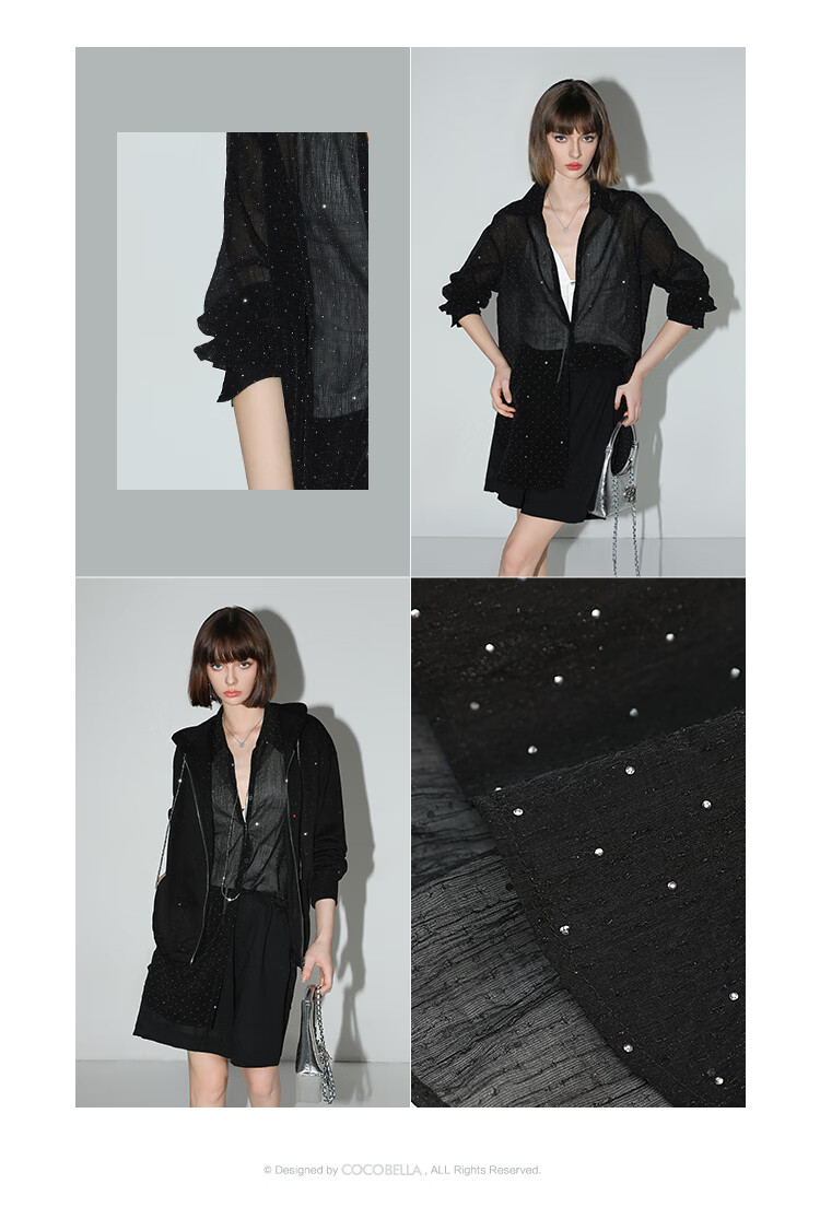 COCOBELLA[璀璨星河]轻奢风重工烫钻肌理衬衫女秋上衣SR3036