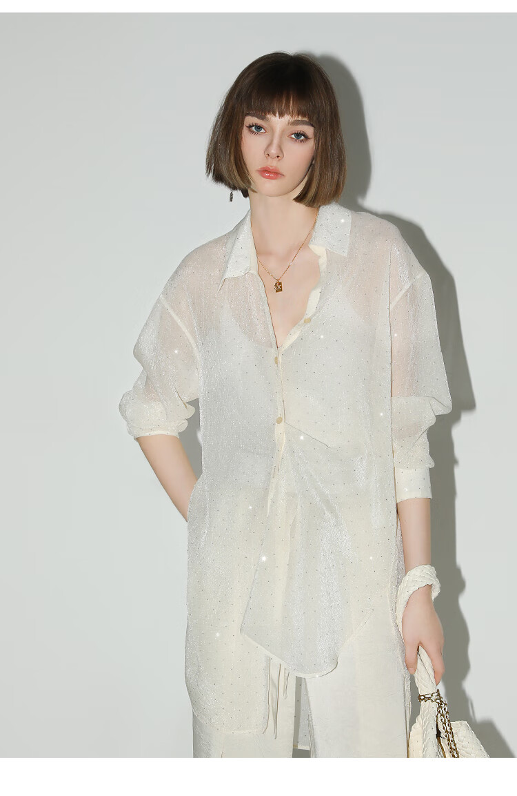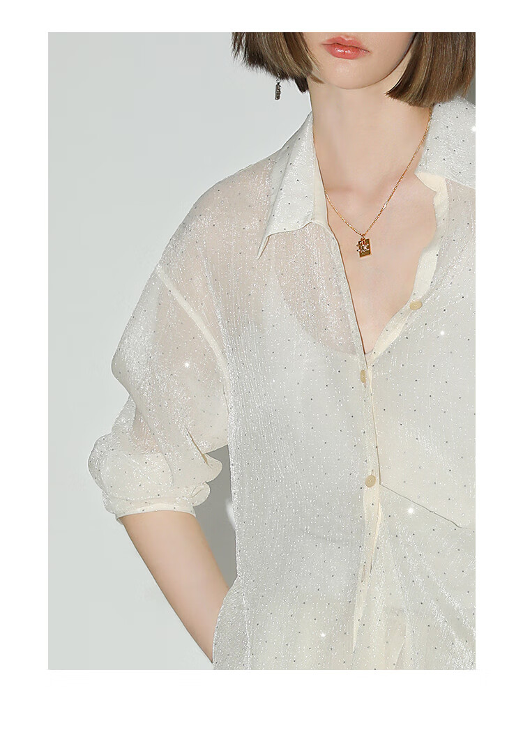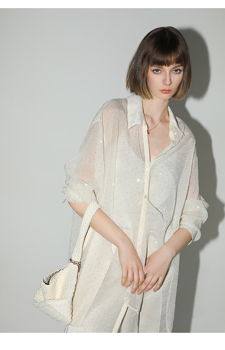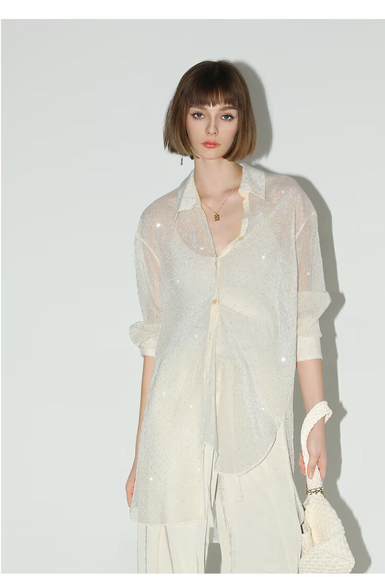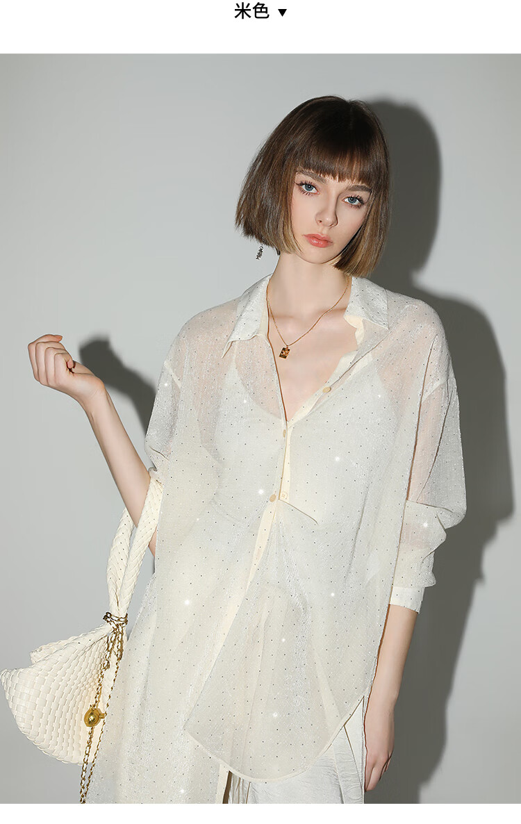 COCOBELLA[璀璨星河]轻奢风重工烫钻肌理衬衫女秋上衣SR3036