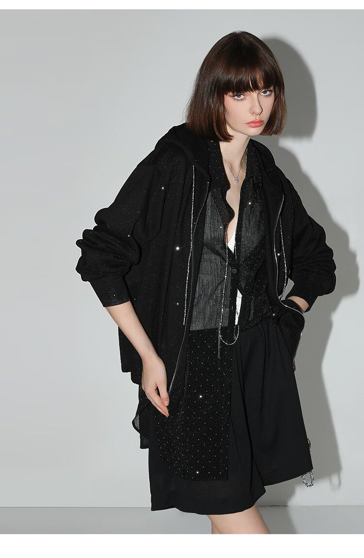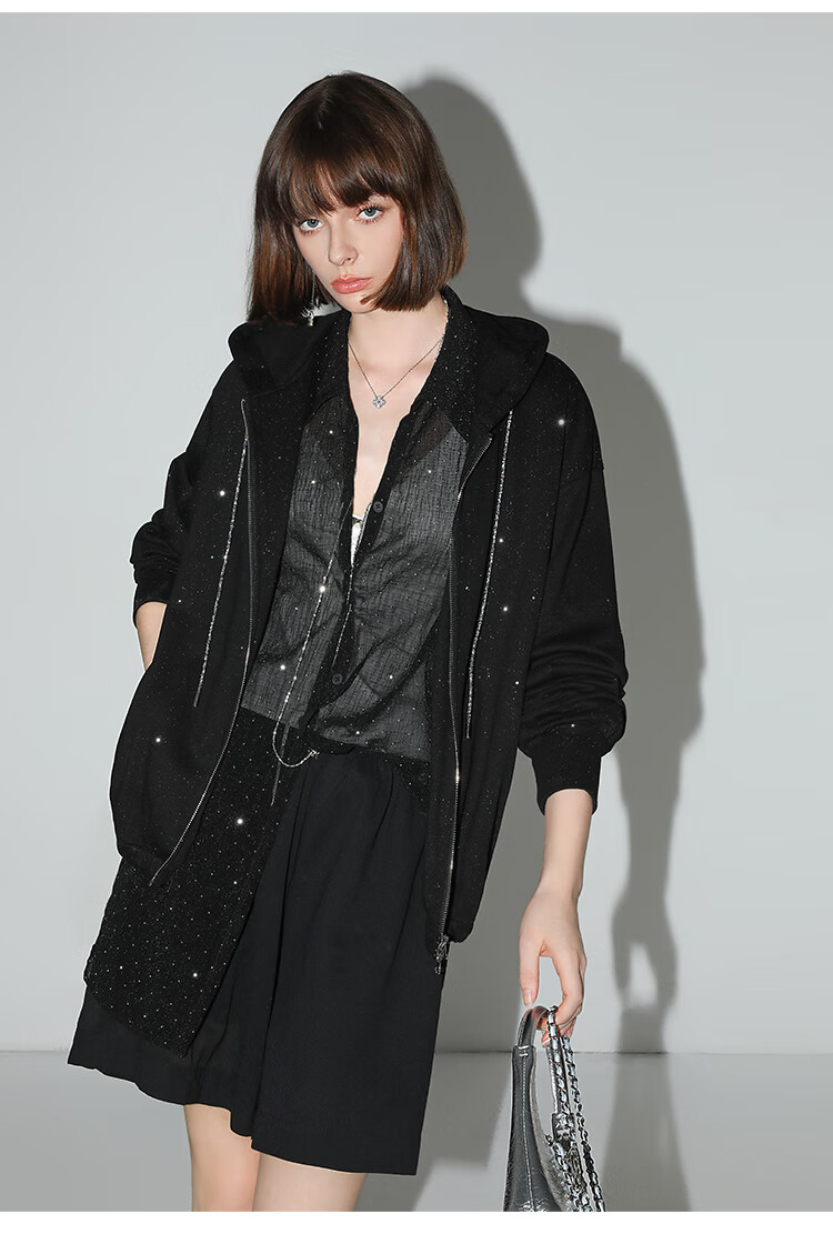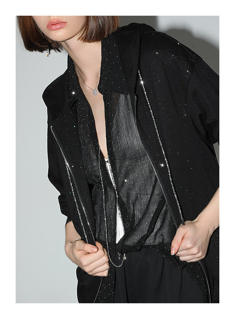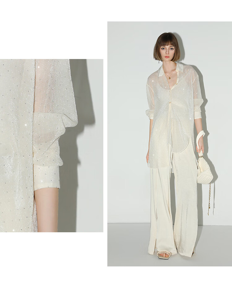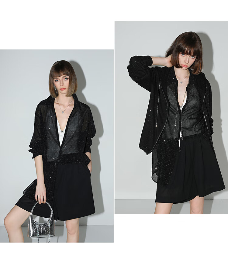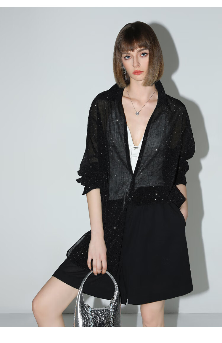 COCOBELLA[璀璨星河]轻奢风重工烫钻肌理衬衫女秋上衣SR3036