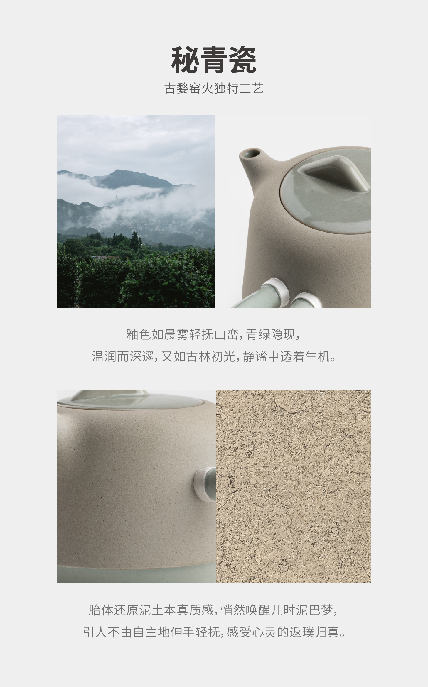 青瓷侧把壶旅行套装青瓷皮包旅行茶具