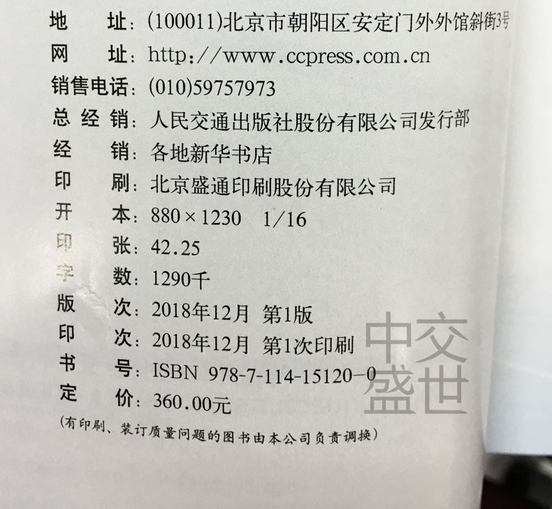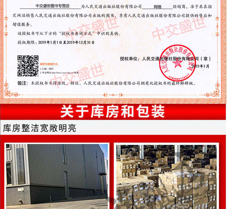 - 北京中交盛世图书专营店是人民交通出版社股份有限公司下属自营店铺,具备图书批发零售综合资质,主要经营本版及外版道路工程、桥梁隧道、铁道工程、水利电力、航运海事类专业图书及相关技术规范,竭诚为广大读者提供一站式图书采购服务。