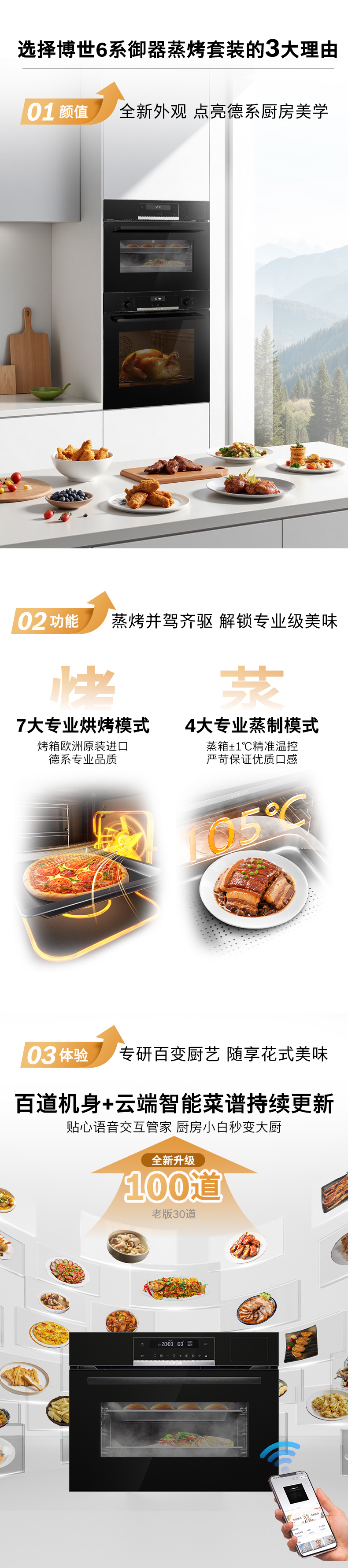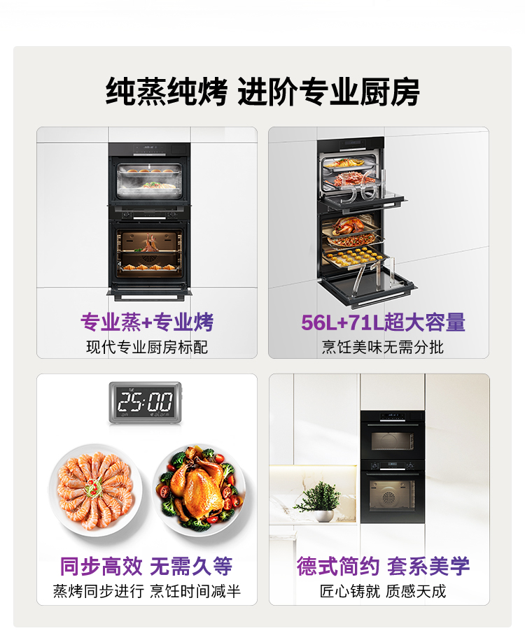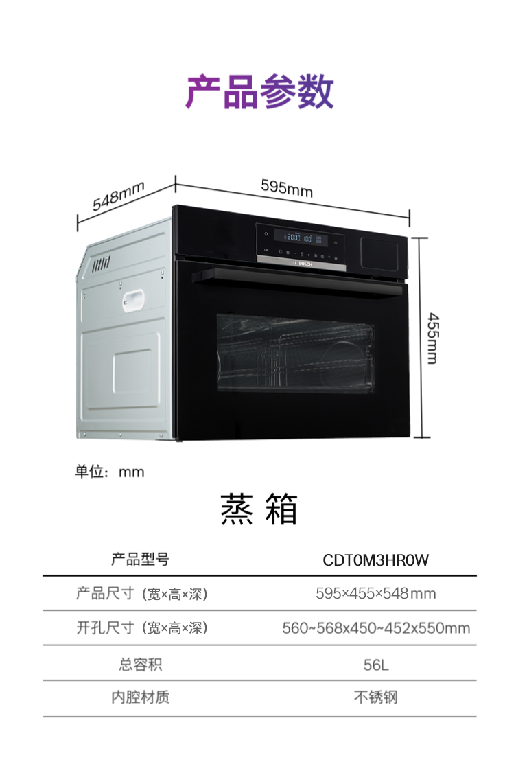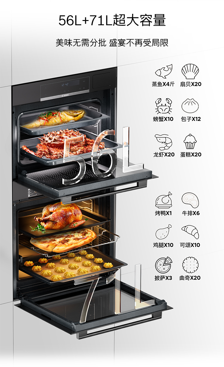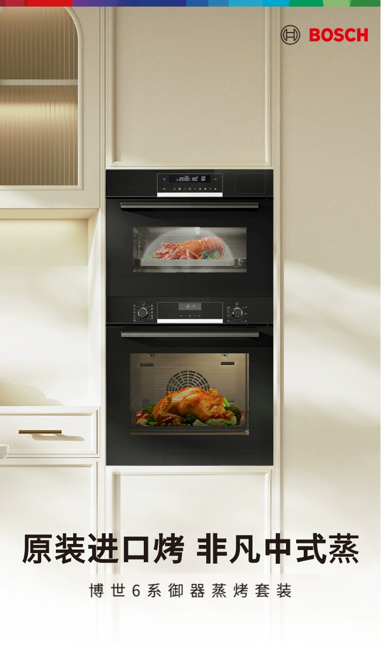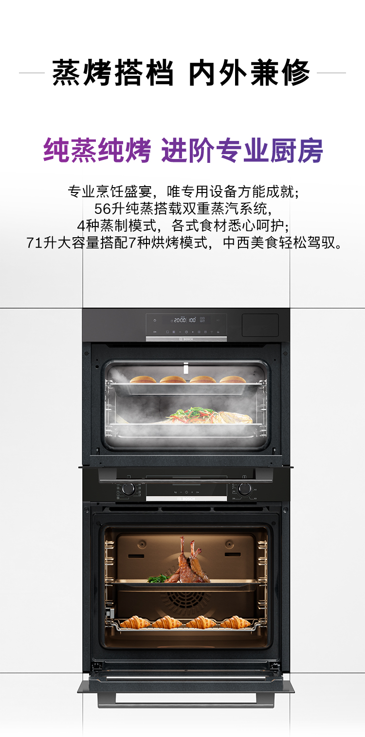 博世(BOSCH)6系御器嵌入式蒸烤套装 厨房家用 71L欧洲原装进口电烤箱 3D热风烤 56L大容量电蒸箱 低氧锁鲜蒸 HBA557EB3W+CDT0M3HR0W