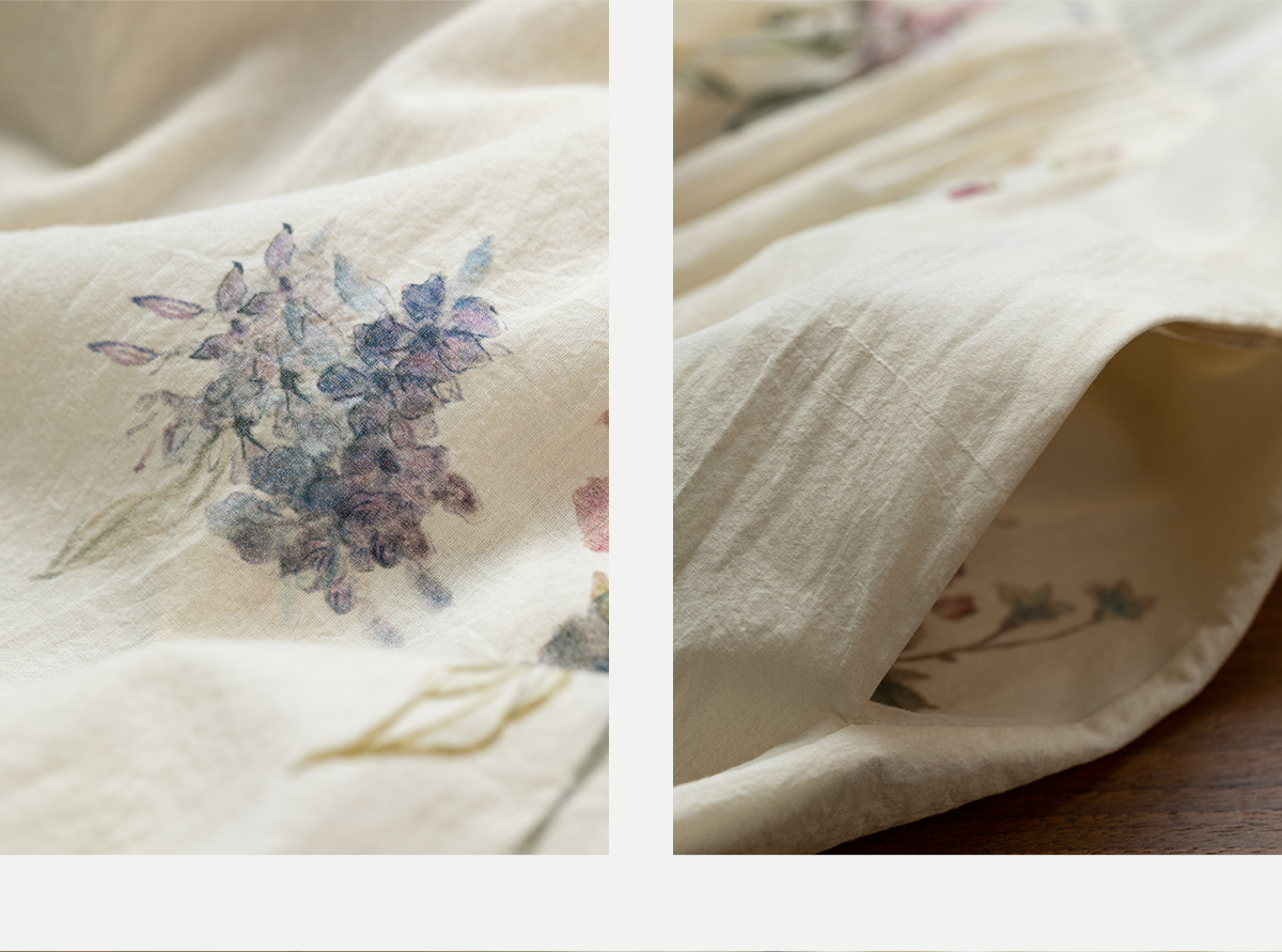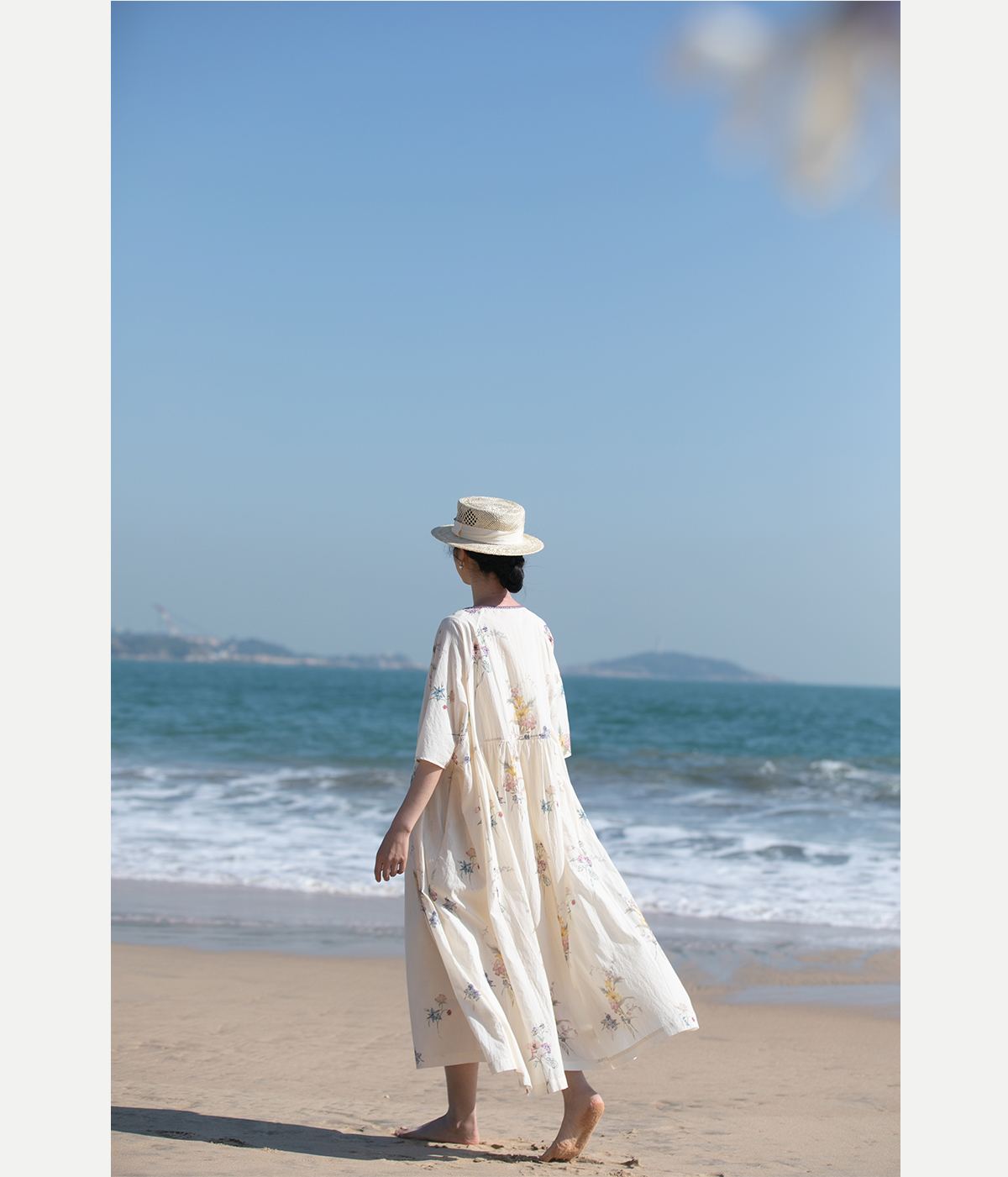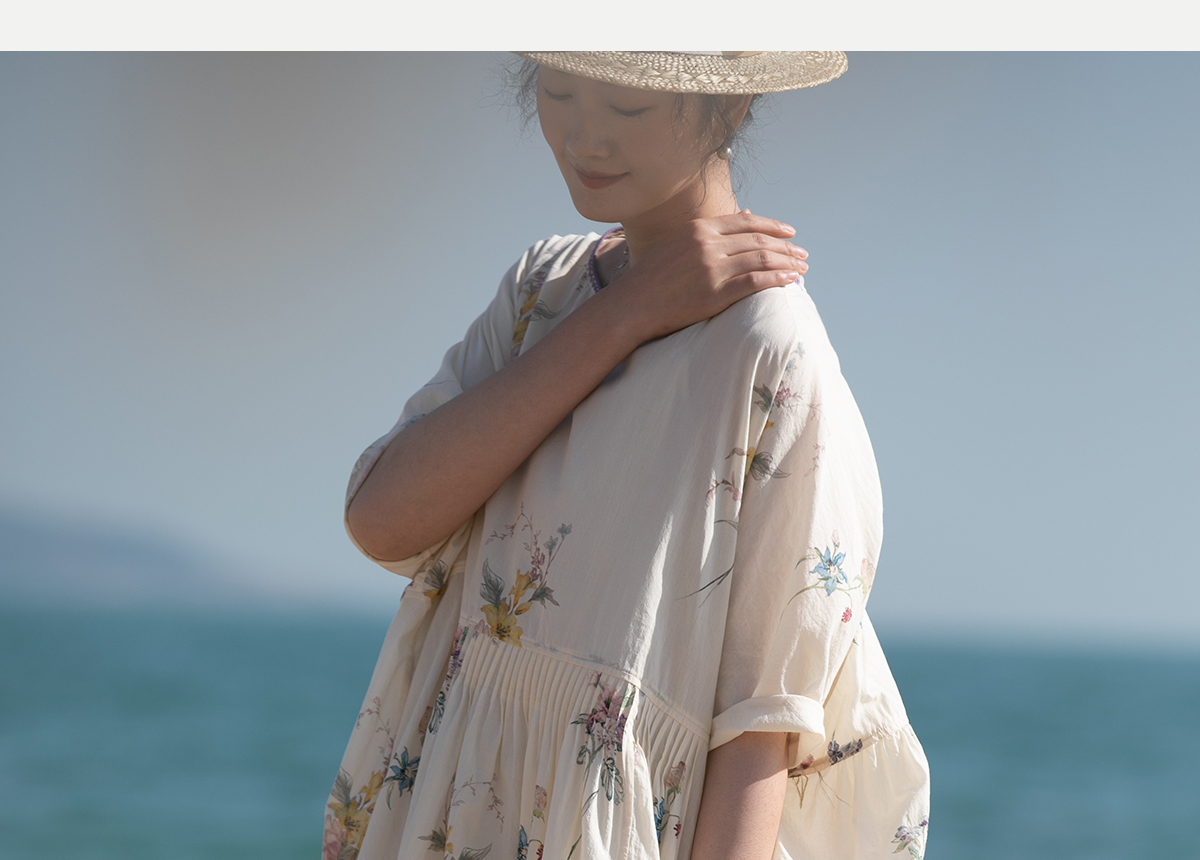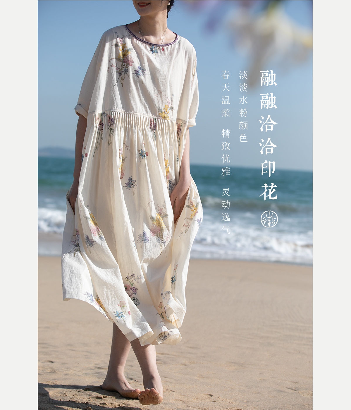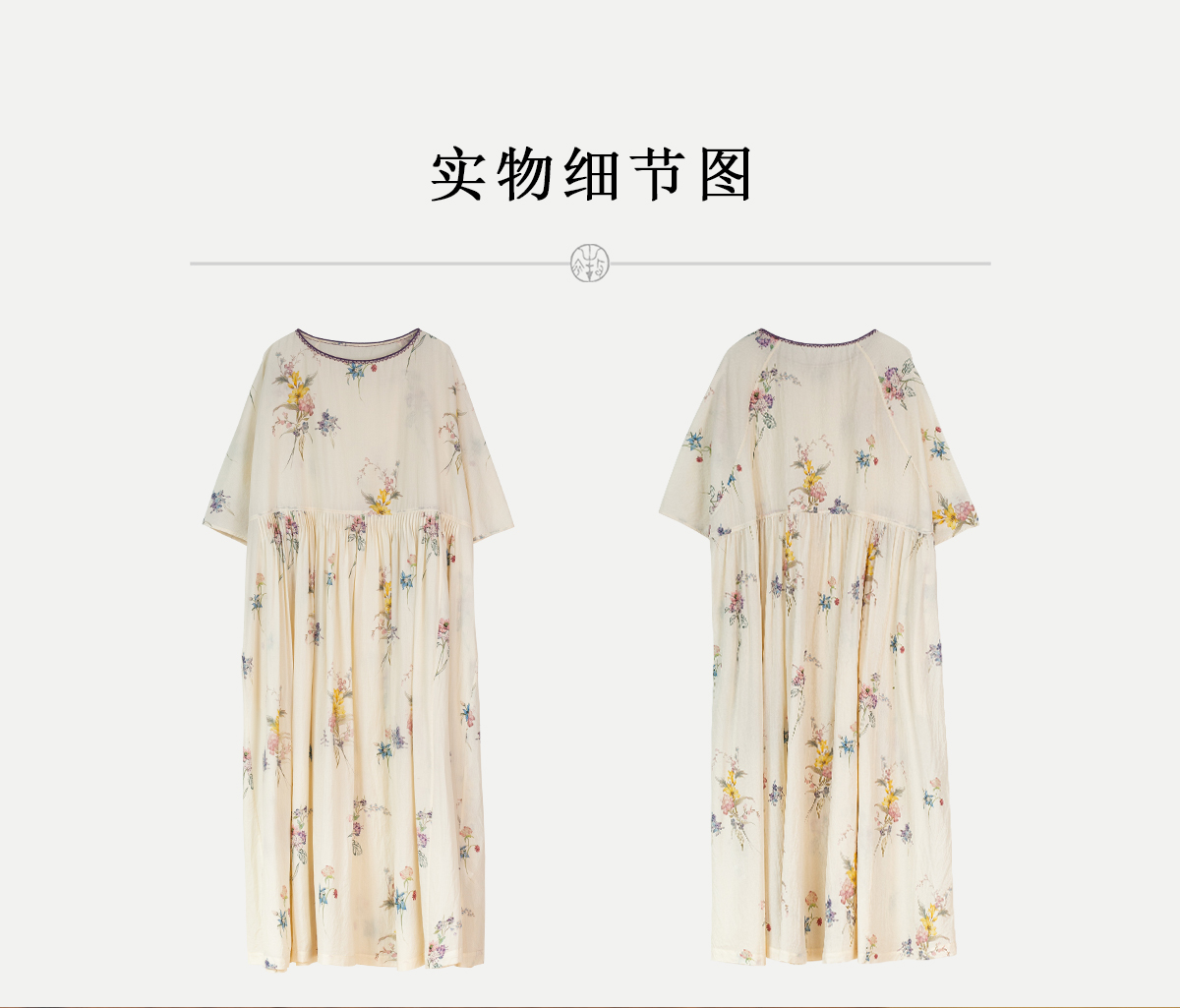 艺术家联名款 牧衣游原创印花进口匹马棉连衣裙国画文艺长裙 疏花