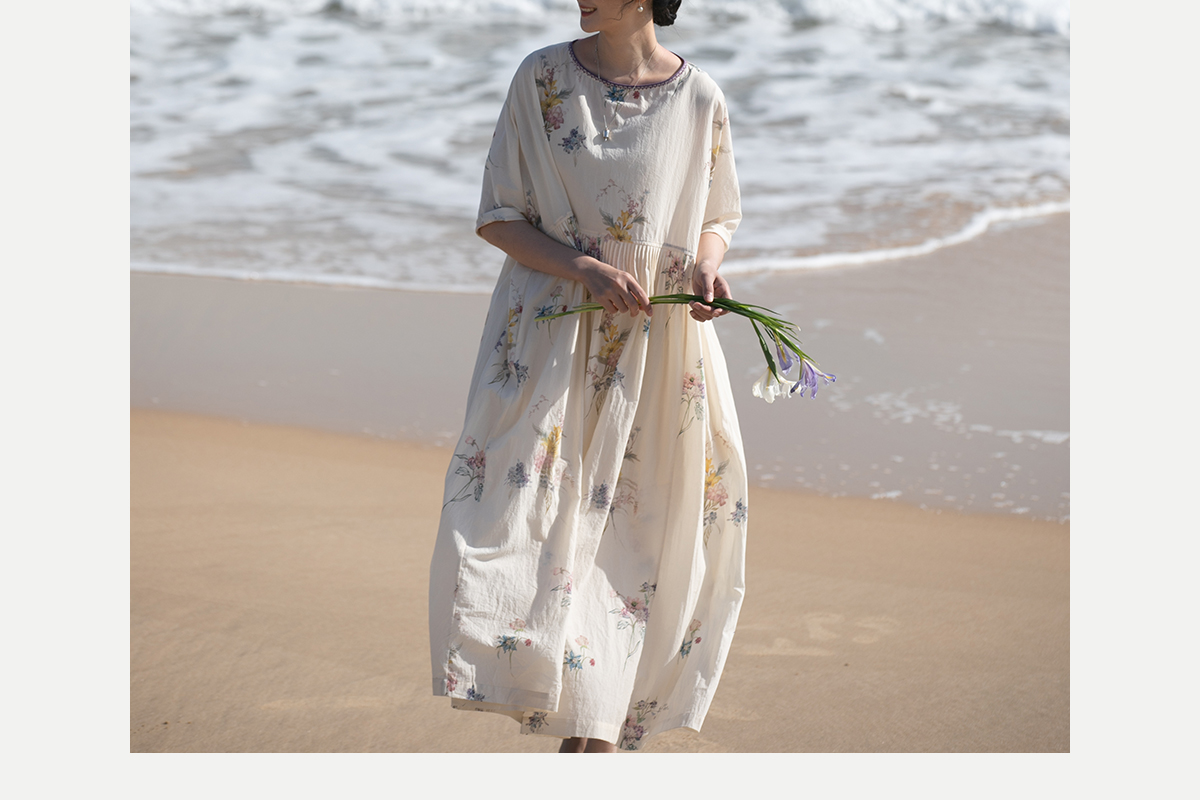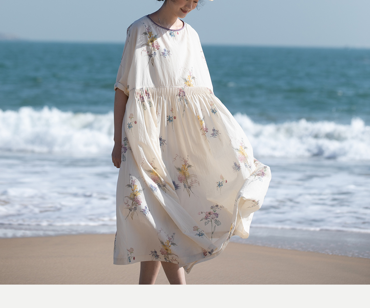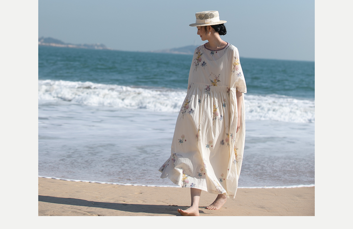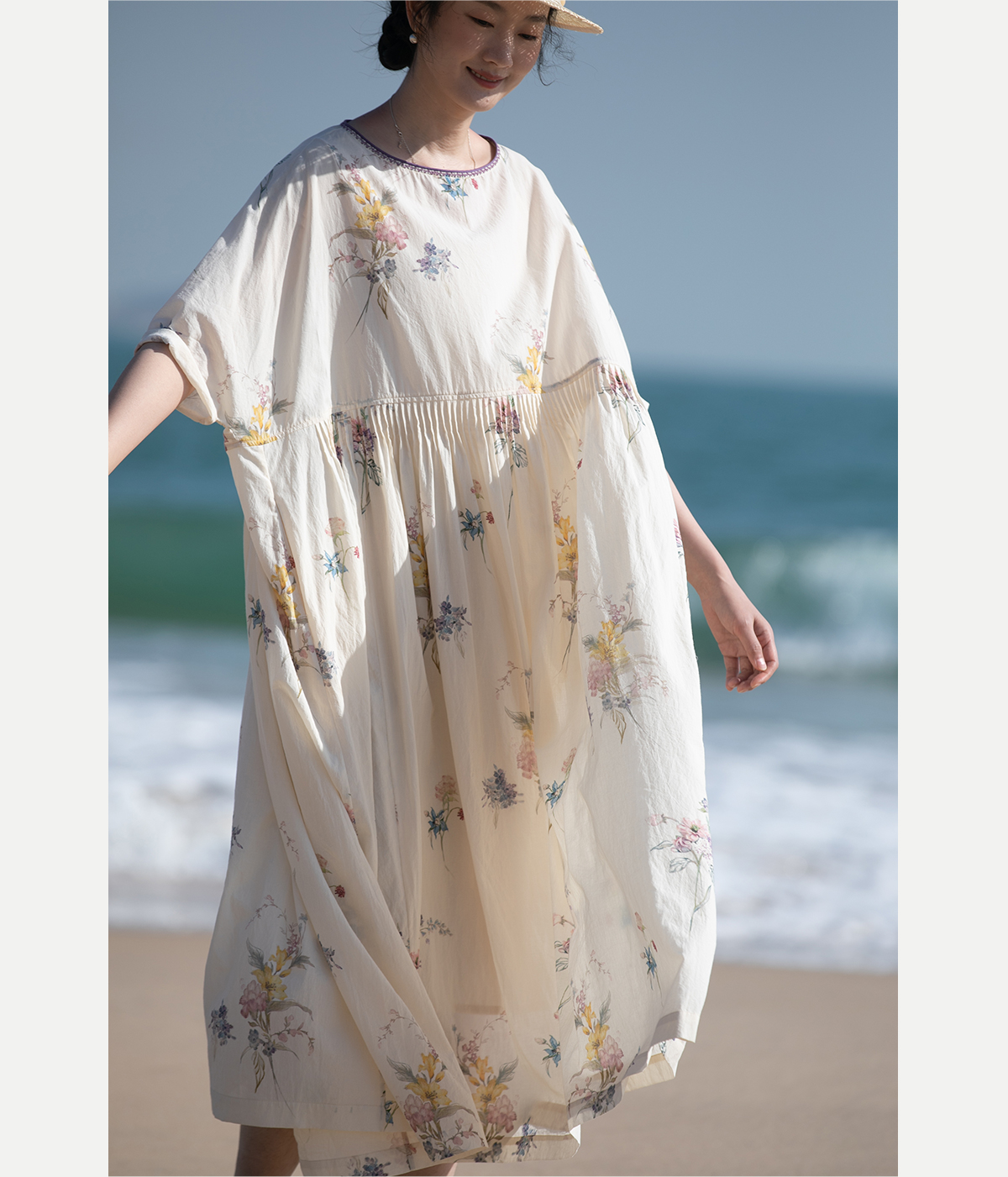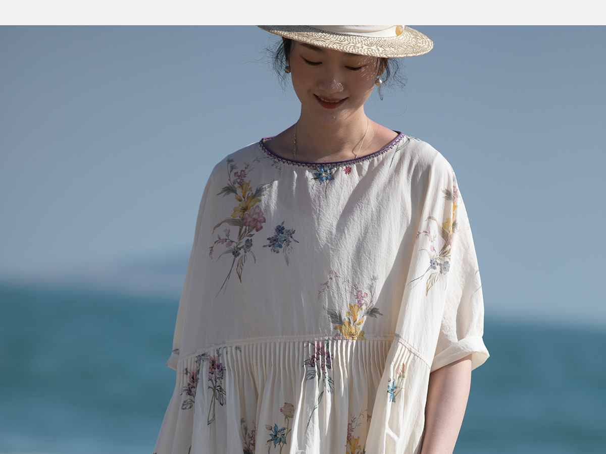 艺术家联名款 牧衣游原创印花进口匹马棉连衣裙国画文艺长裙 疏花