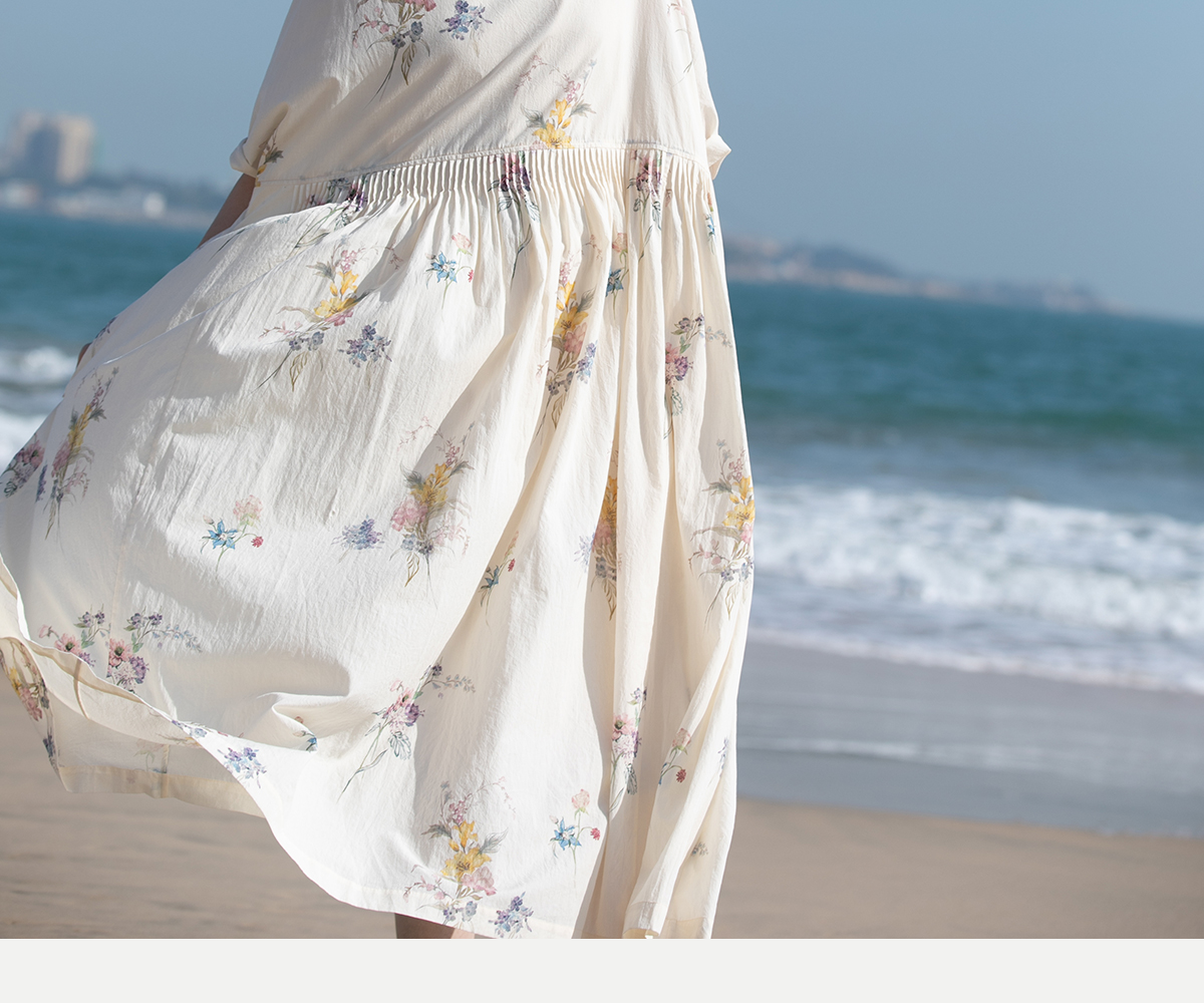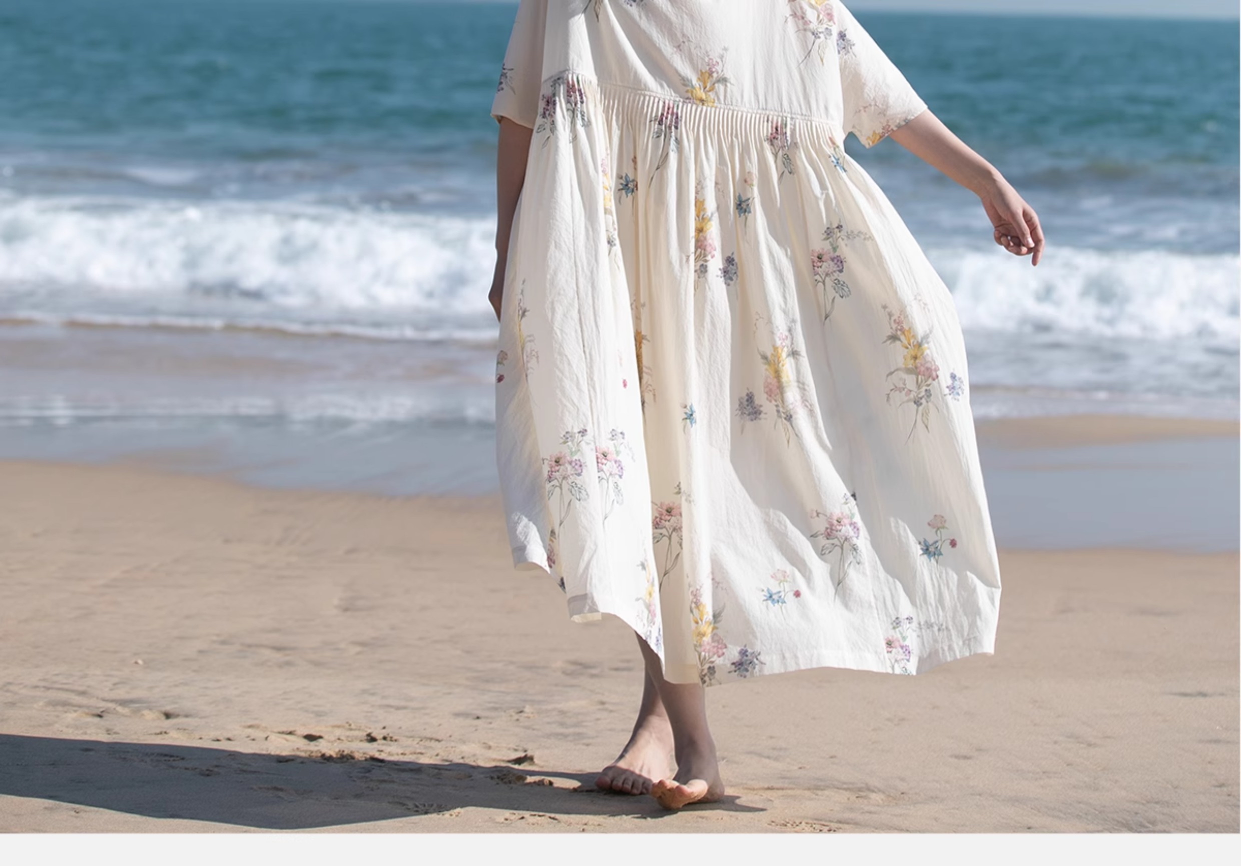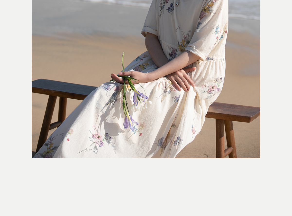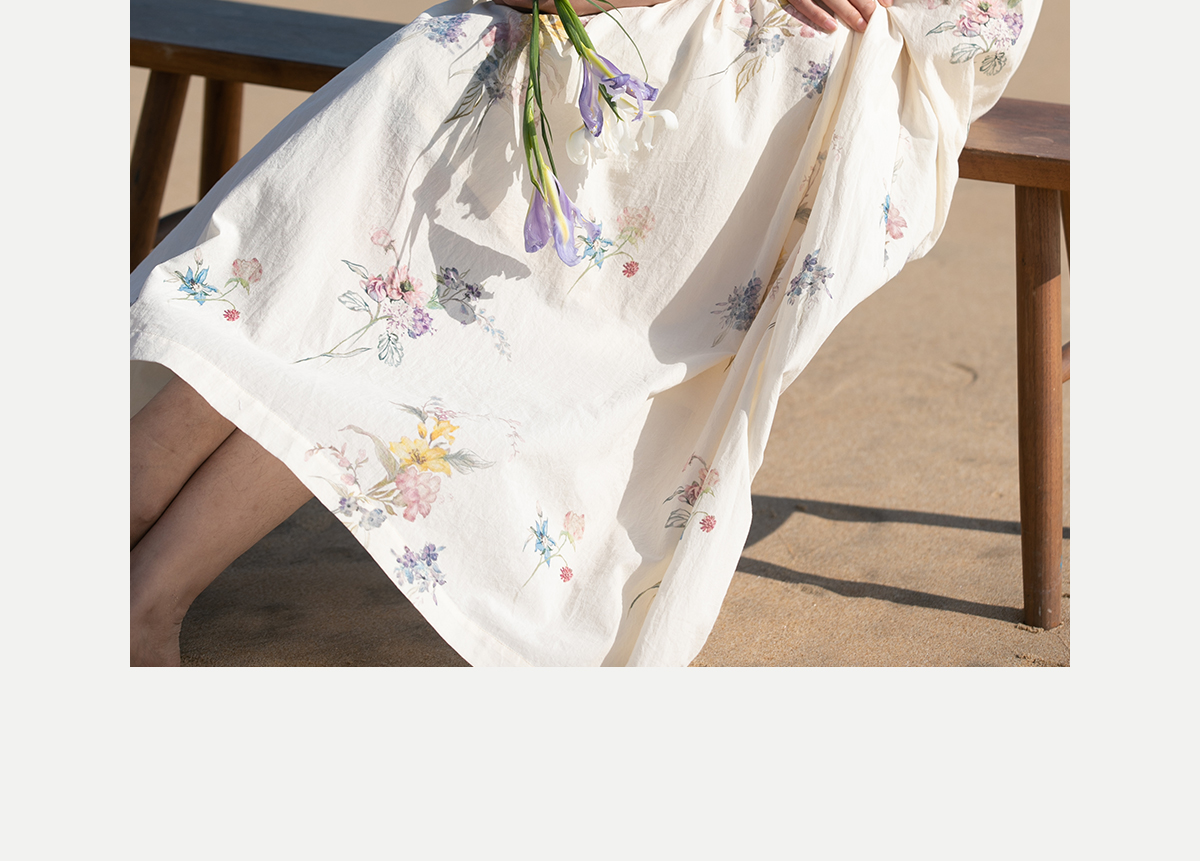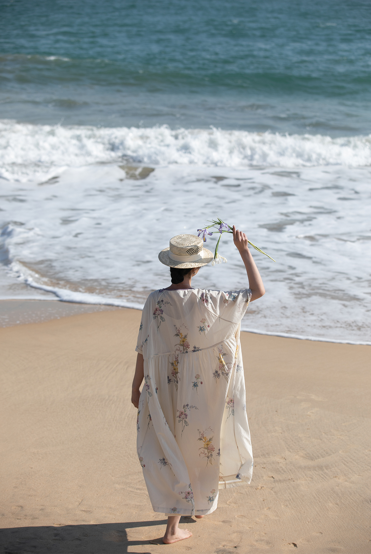 艺术家联名款 牧衣游原创印花进口匹马棉连衣裙国画文艺长裙 疏花