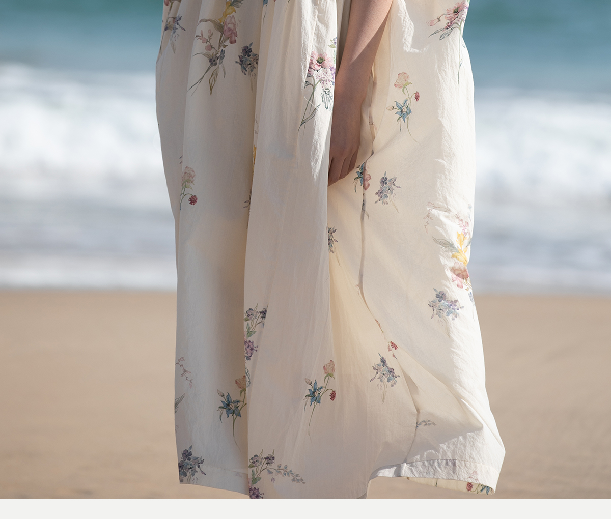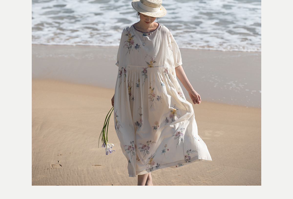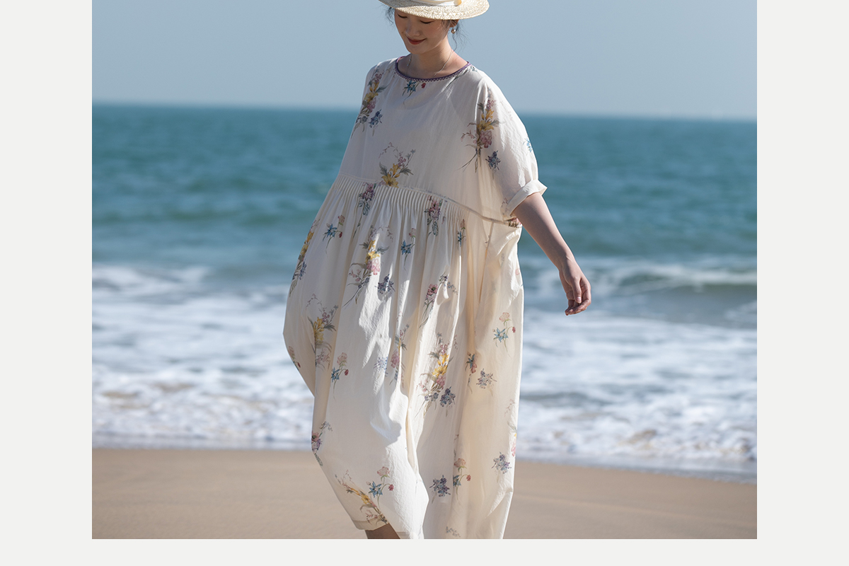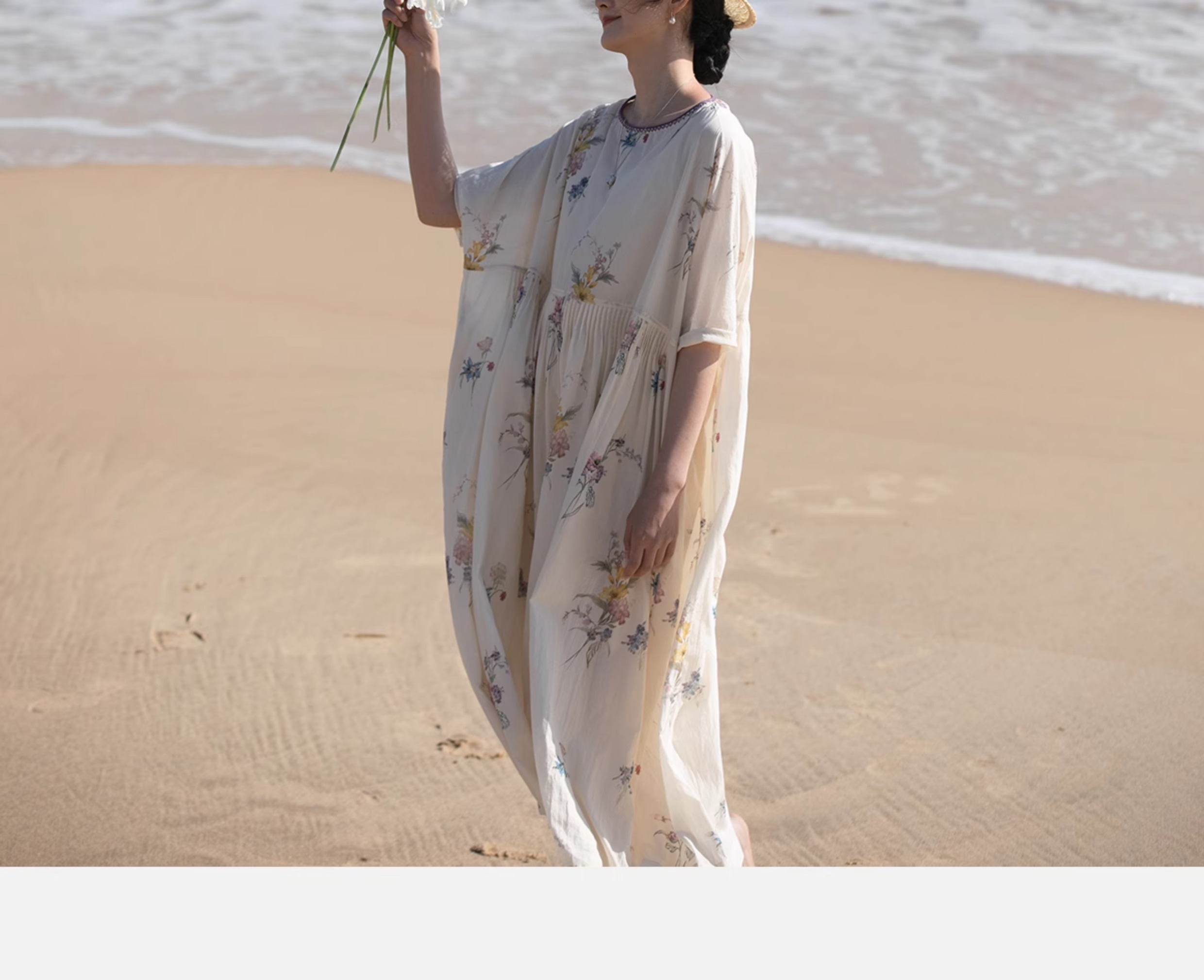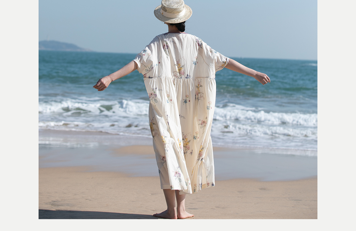 艺术家联名款 牧衣游原创印花进口匹马棉连衣裙国画文艺长裙 疏花