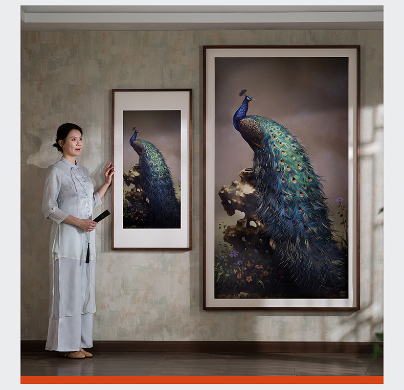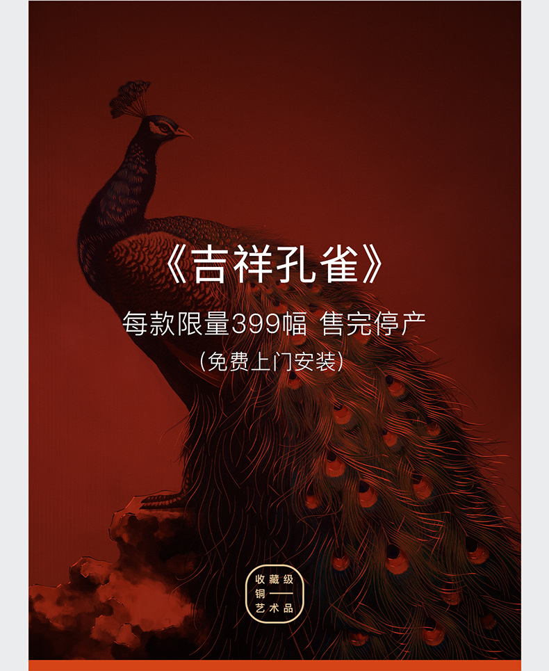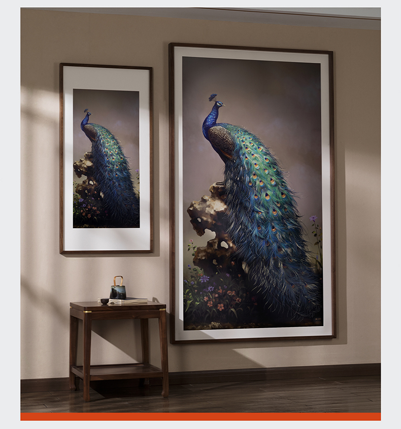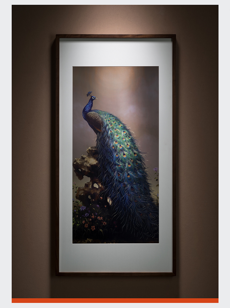 太铜 铜雕画《吉祥孔雀》客厅玄关沙发背景墙装饰画