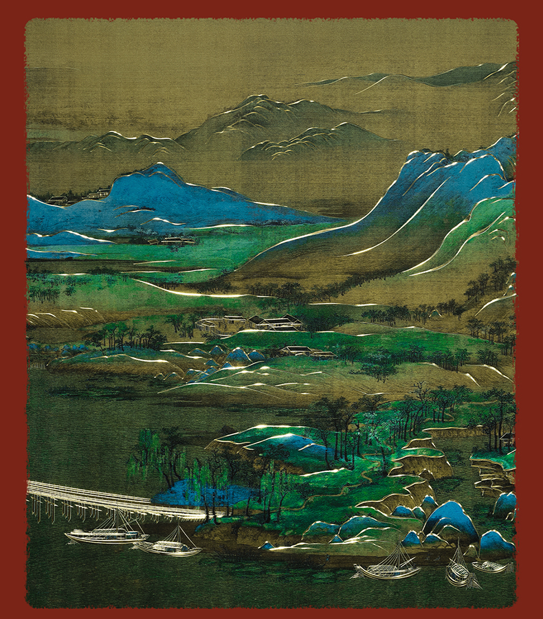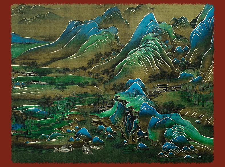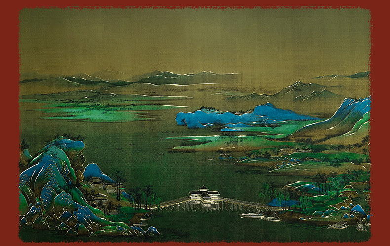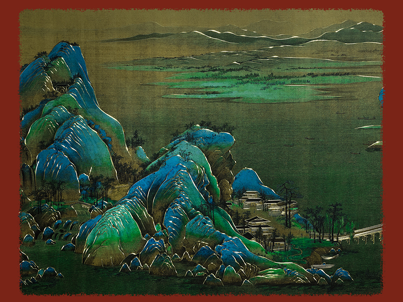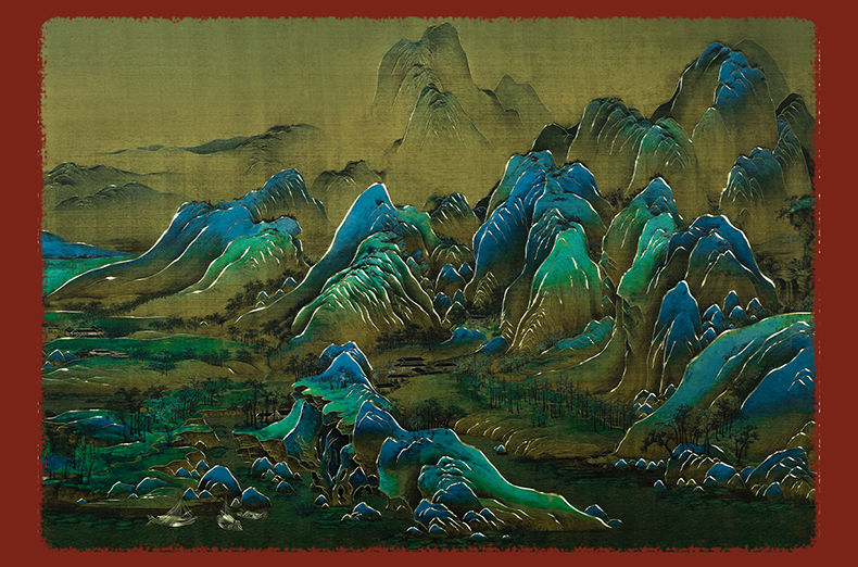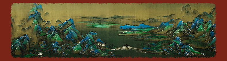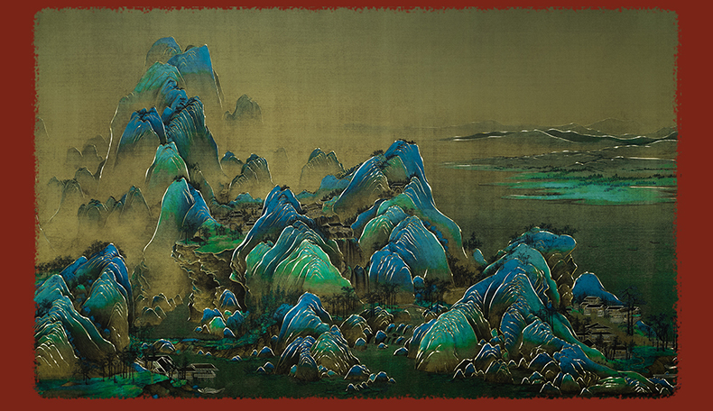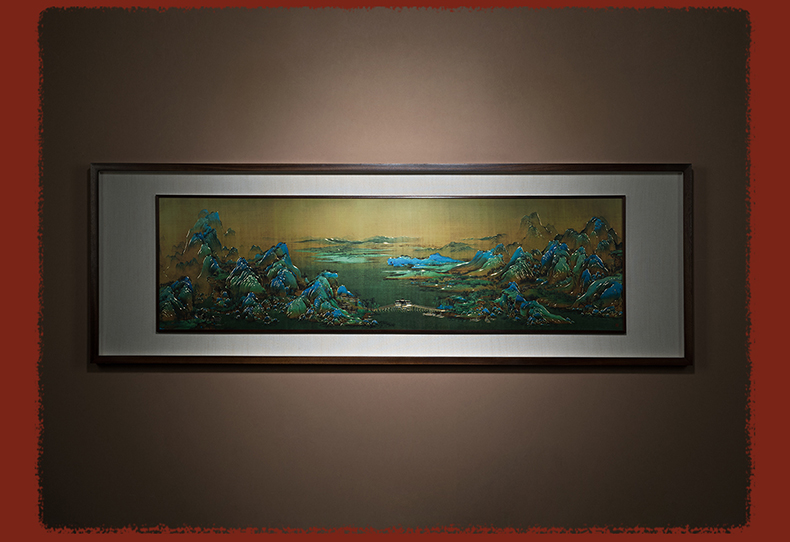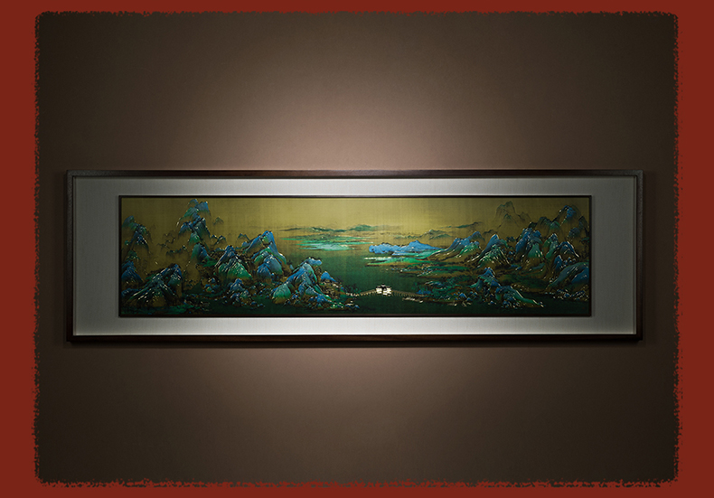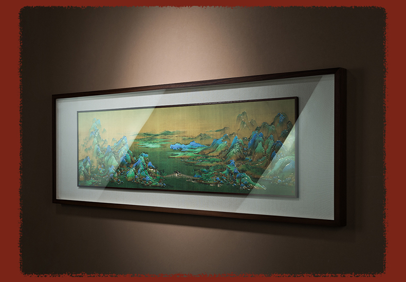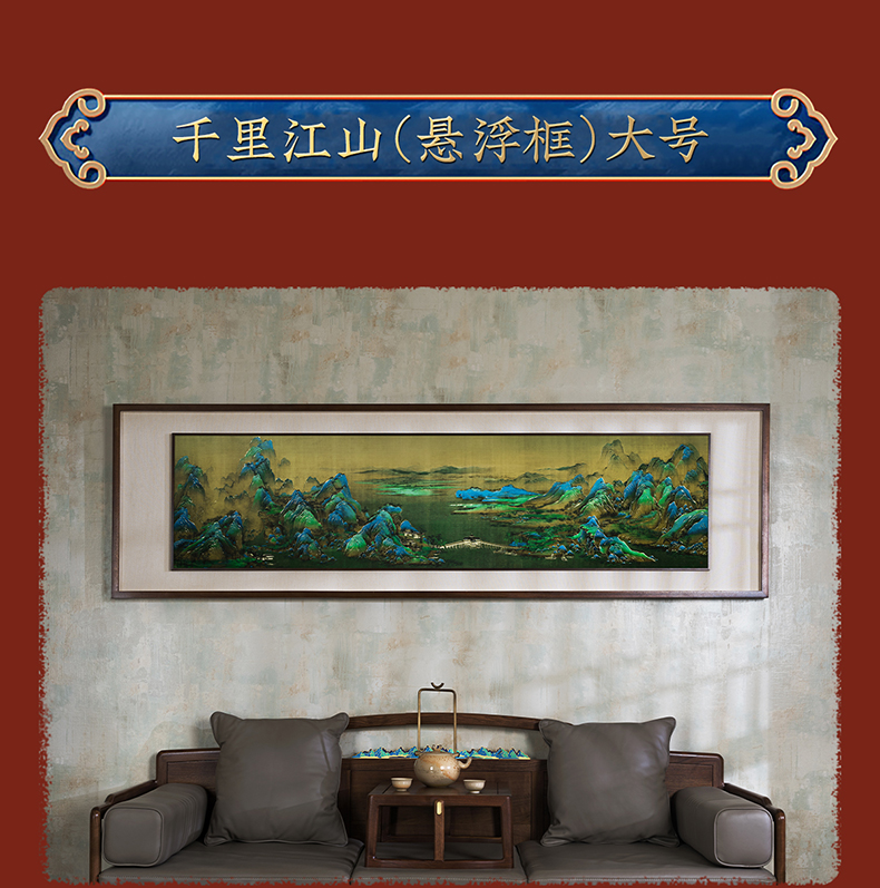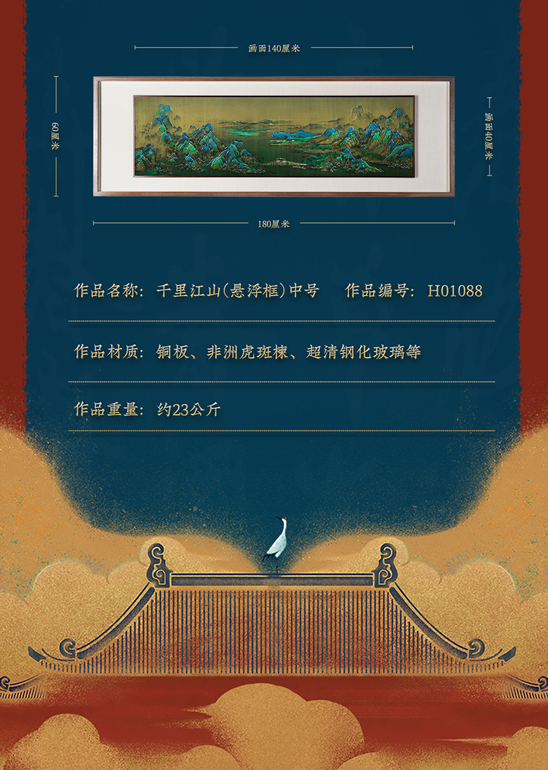 铜师傅 手工錾刻 铜雕画《千里江山(悬浮框)》玄关中式装饰挂画