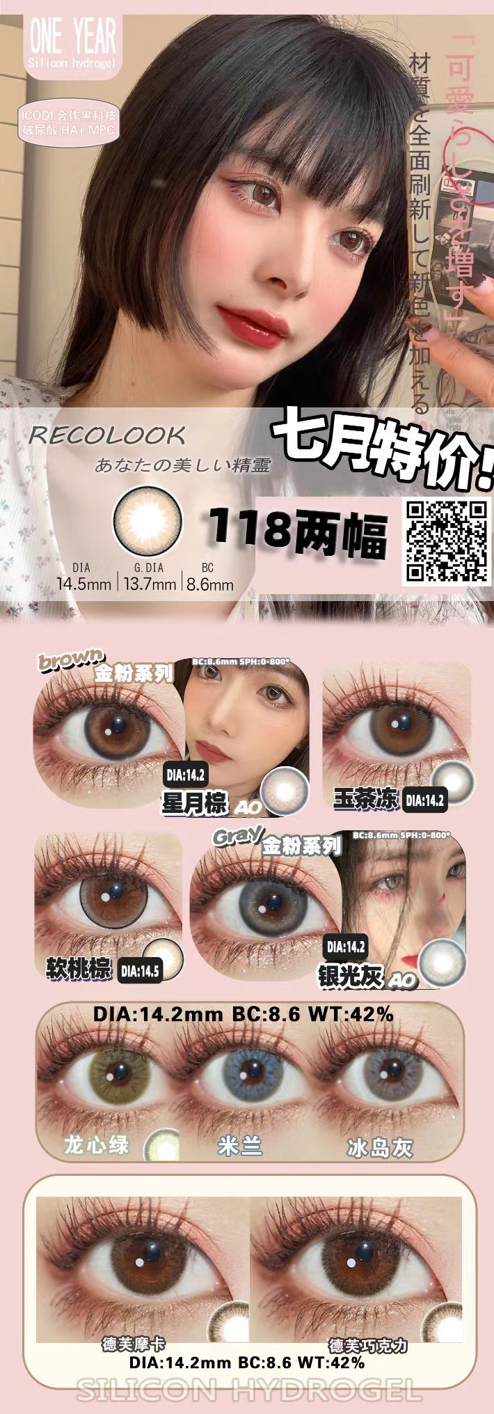 【常规-年抛活动】Recolook-14.2mm-14.5mm【年抛 度数0-800度 无525/575】七月特价