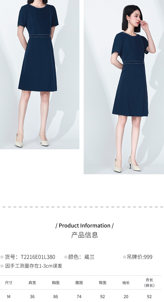 翠贝卡时尚短袖连衣裙T2216E01L380