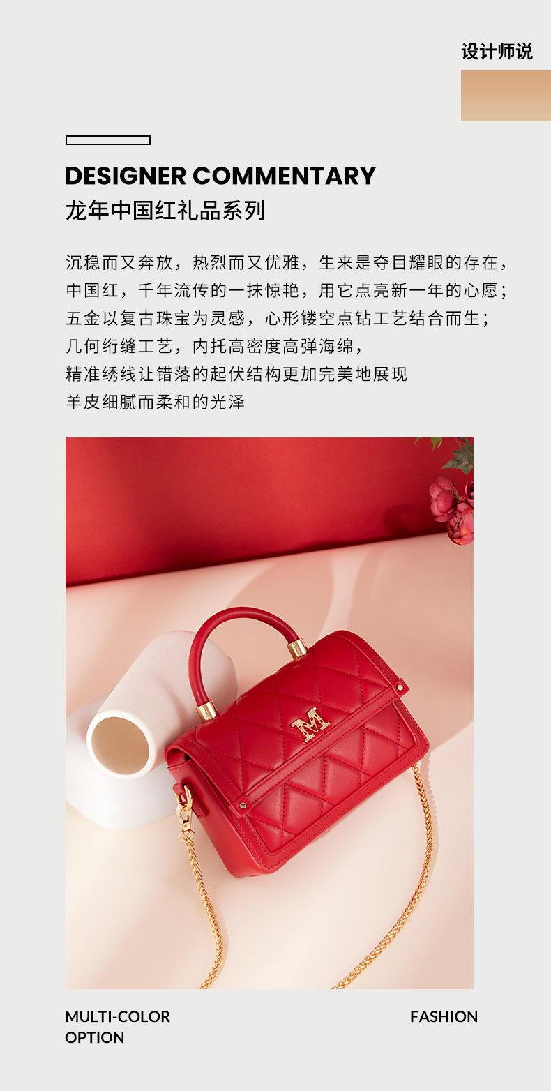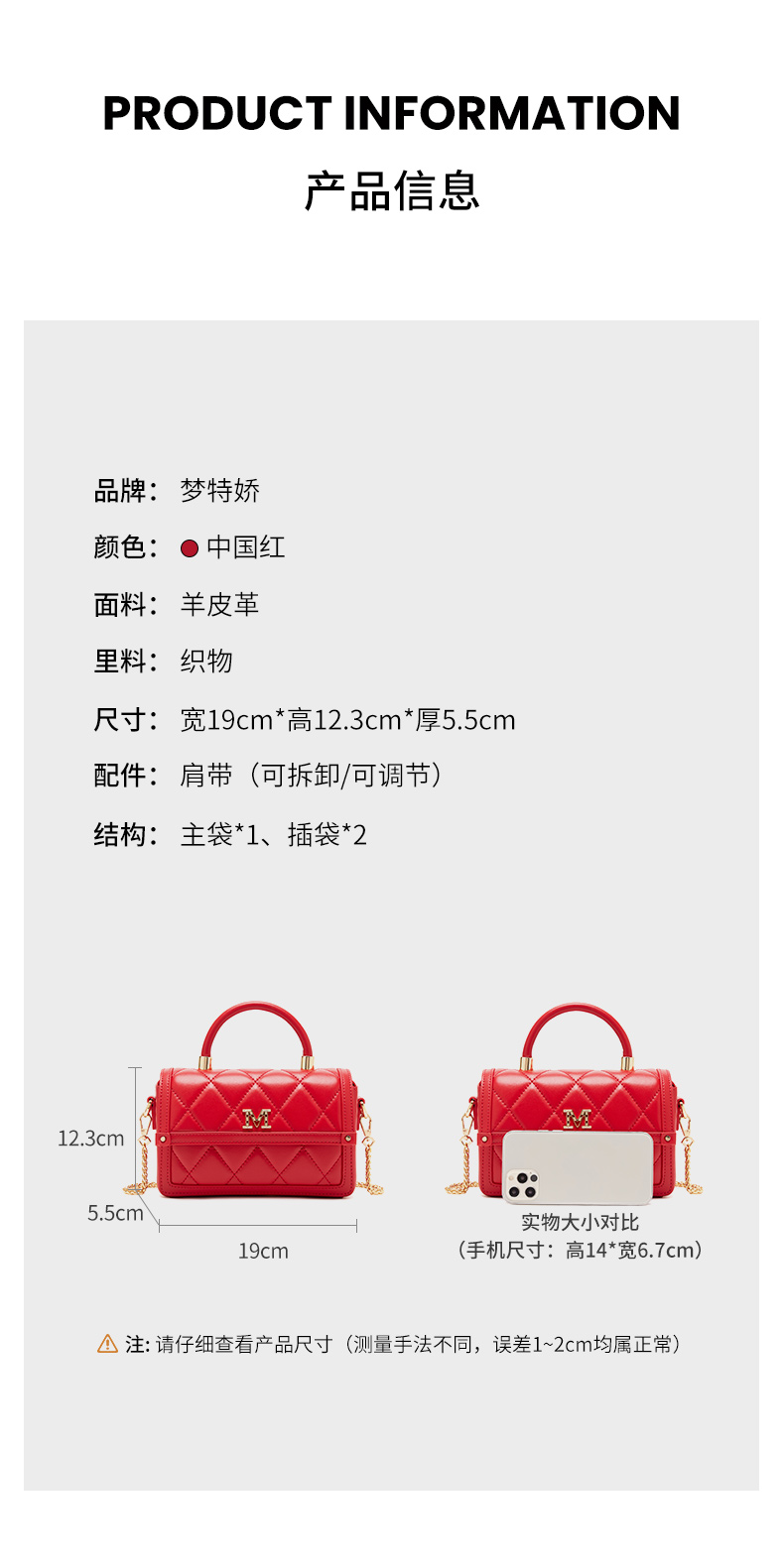 【蛇年中国红礼品系列】梦特娇新款小香风法式婚包斜挎包