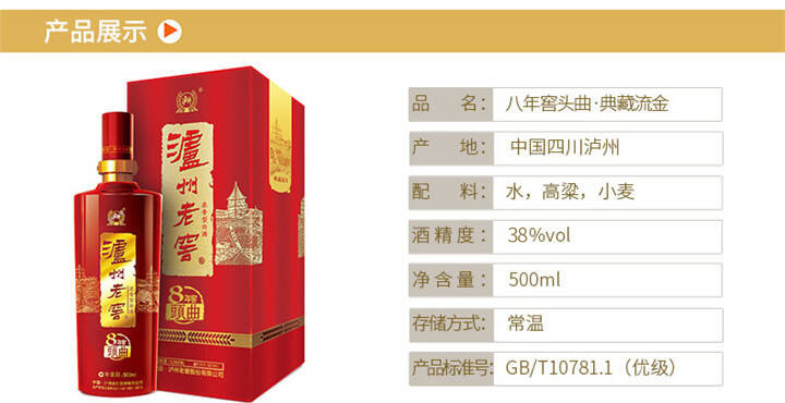 [泸州老窖酒名堂]八年窖头曲酒典藏流金 38度500ml