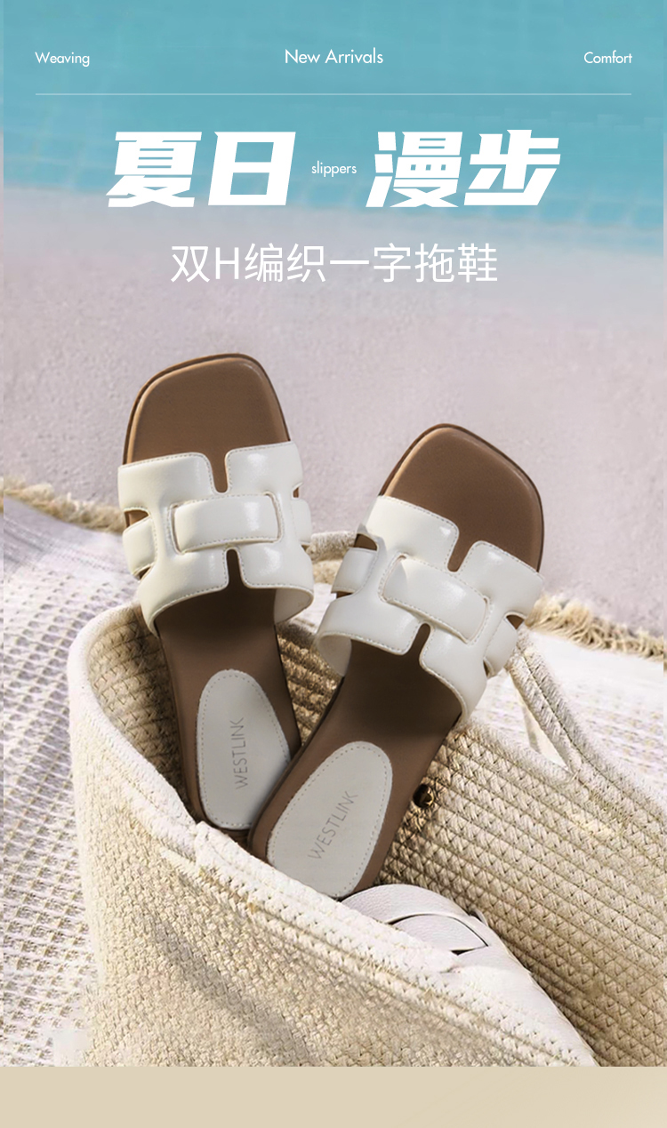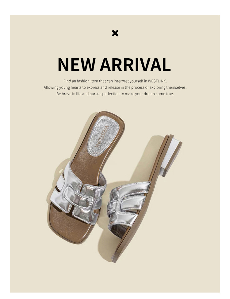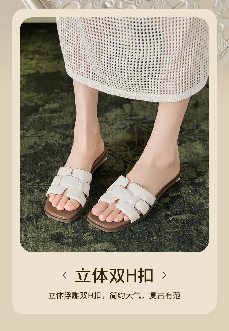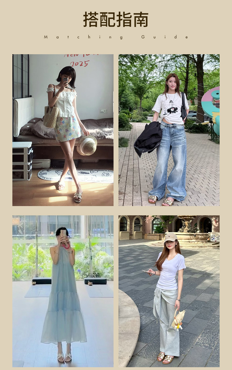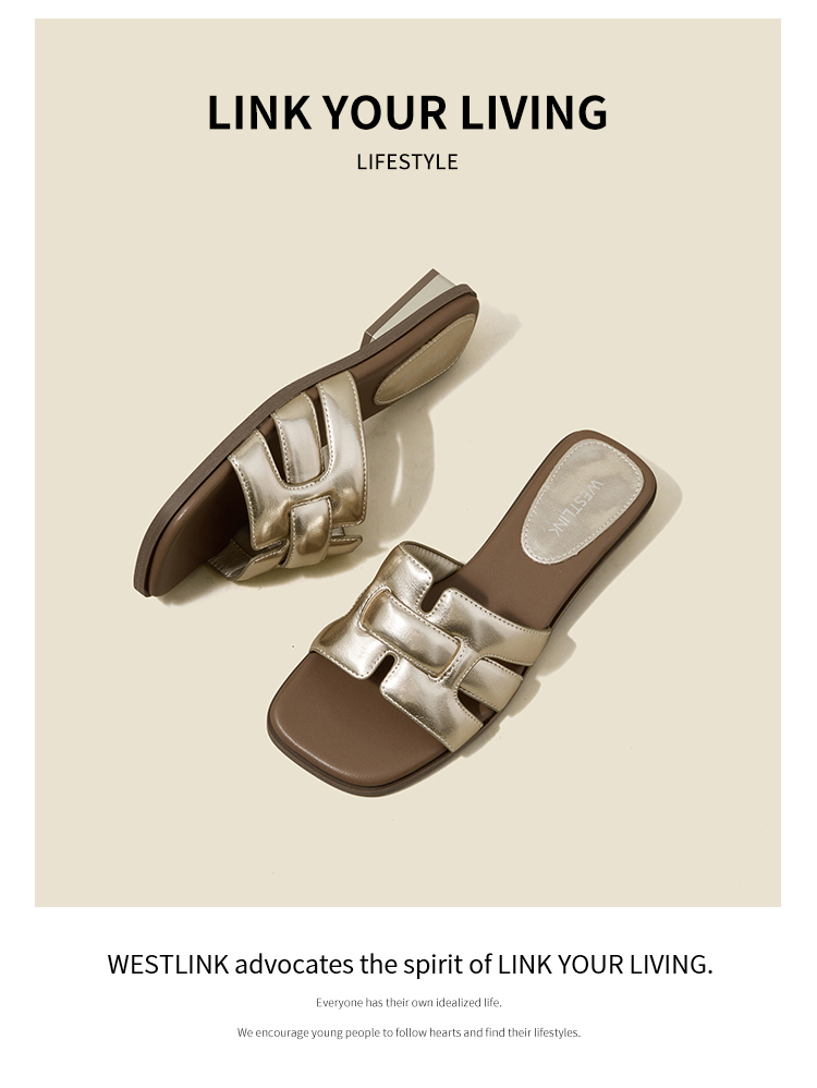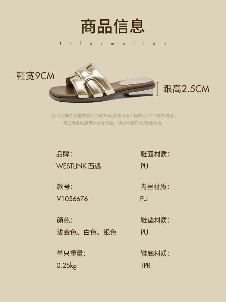 西遇凉拖鞋女夏外穿新款复古法式编织金色平底配裙子一字拖鞋V1056676