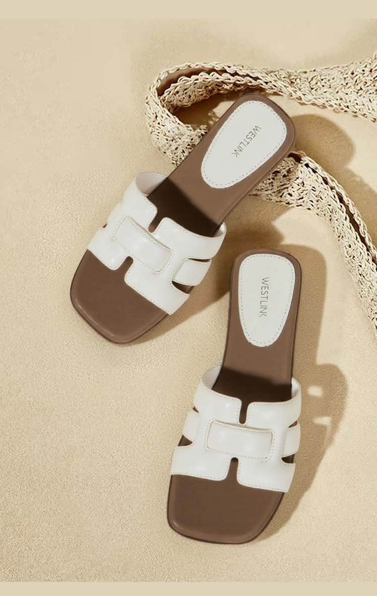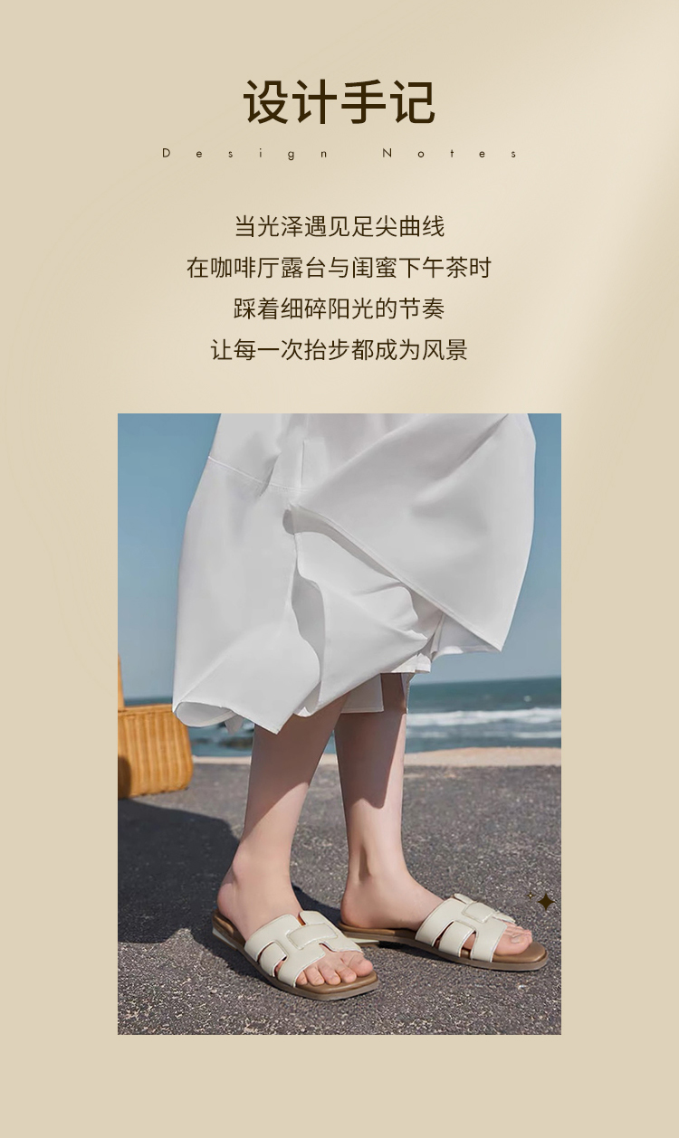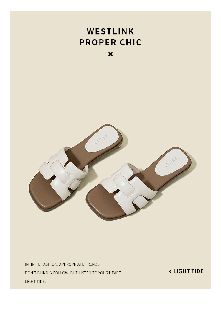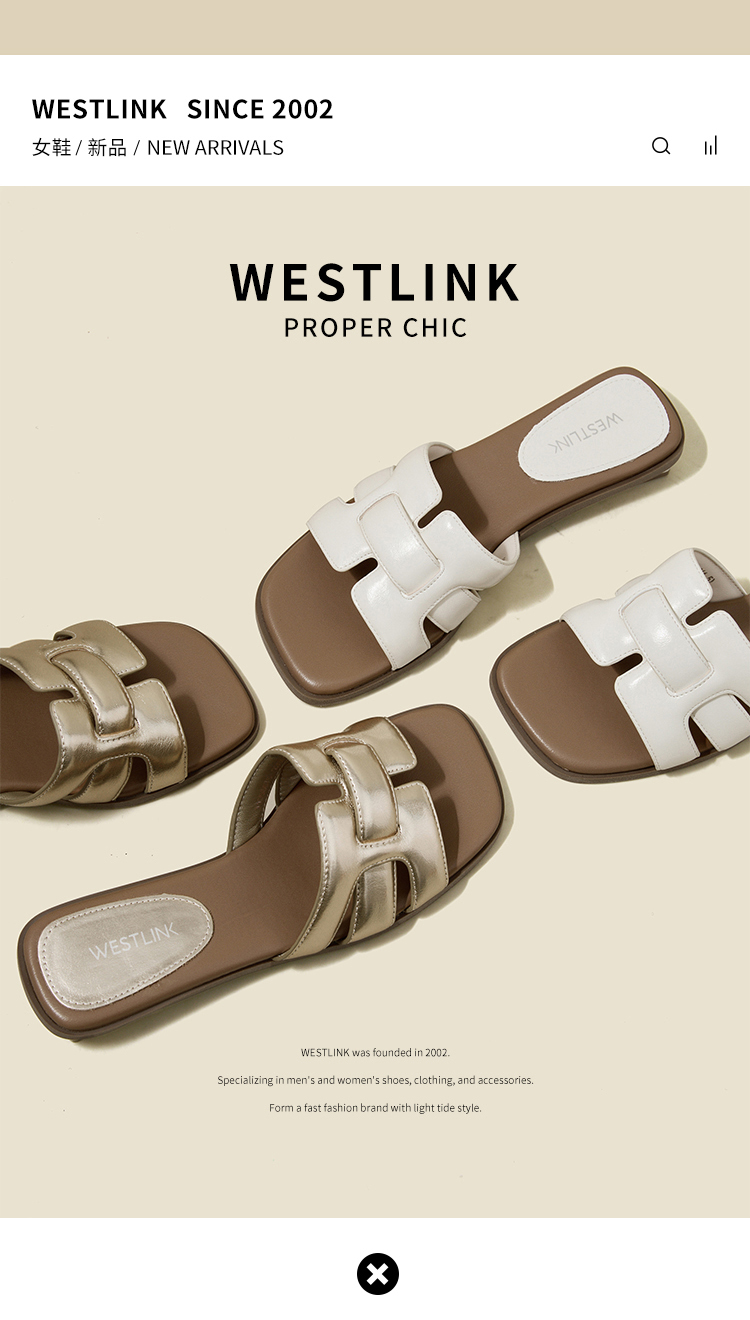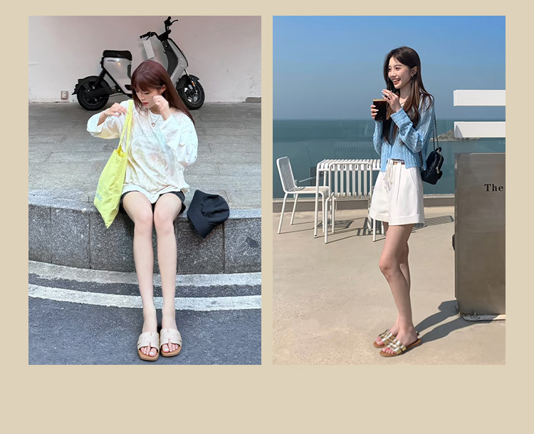 西遇凉拖鞋女夏外穿新款复古法式编织金色平底配裙子一字拖鞋V1056676